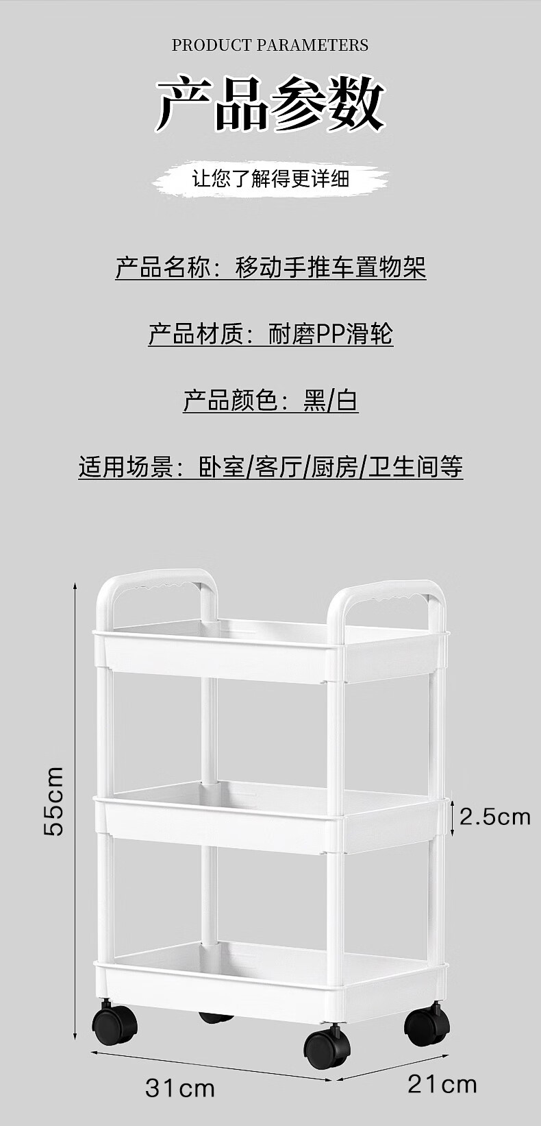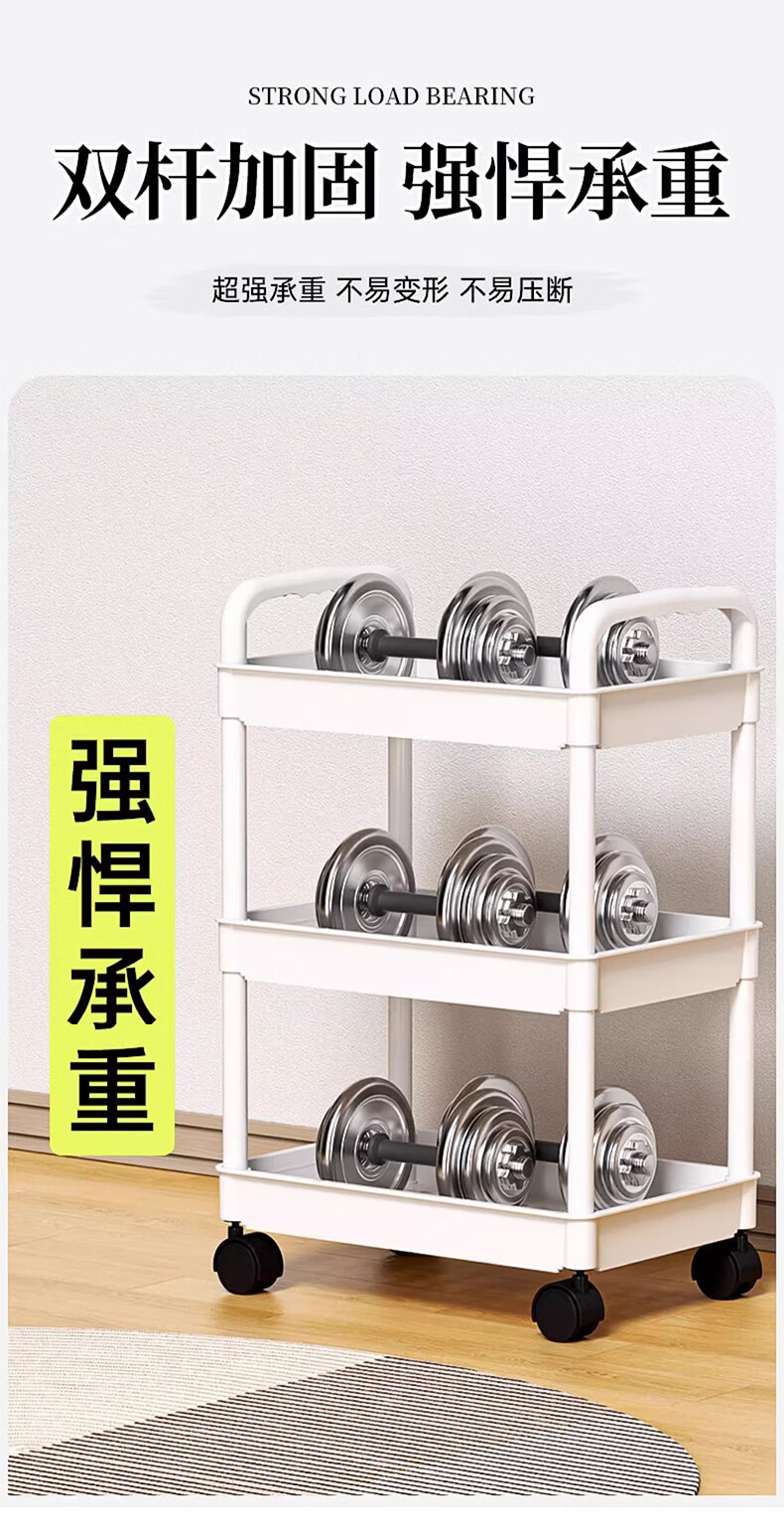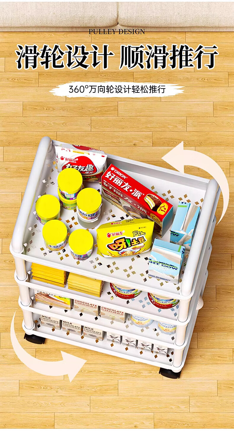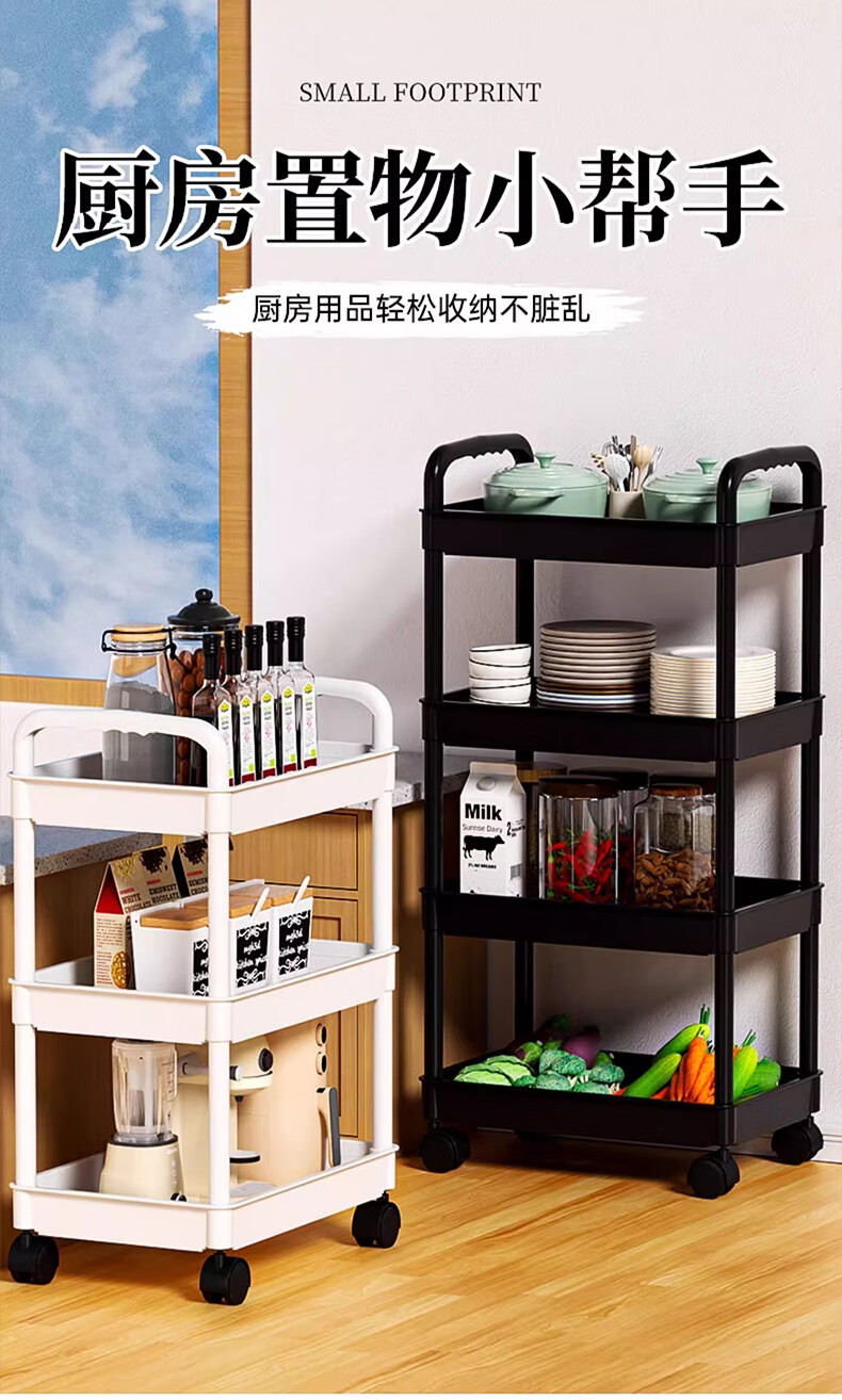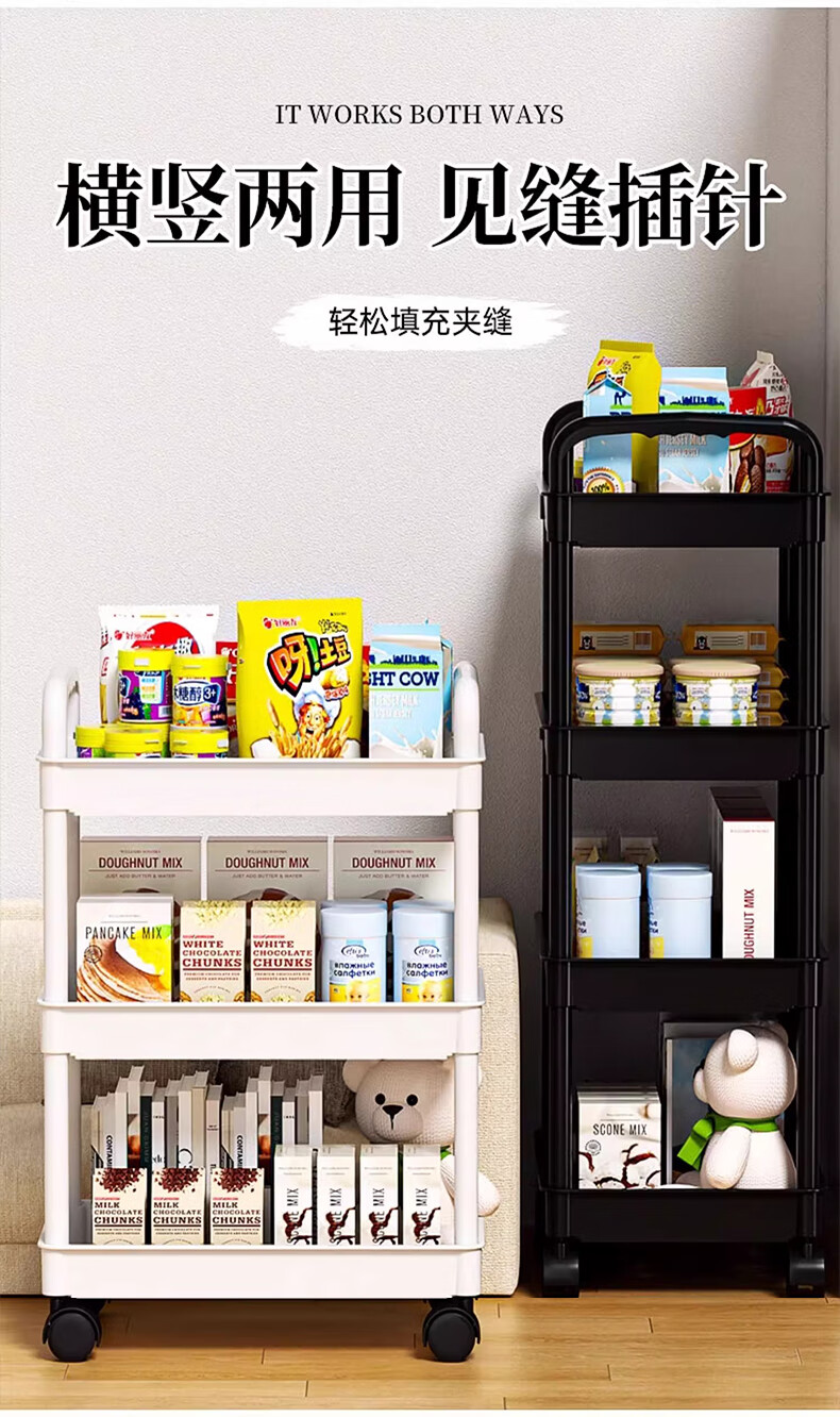 【精选百货】小推车置物架收纳用品多层落地厨房置物架客厅零食可 小推车白色三层