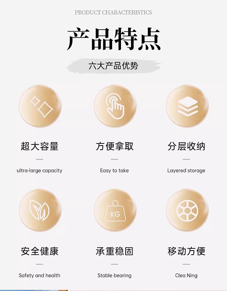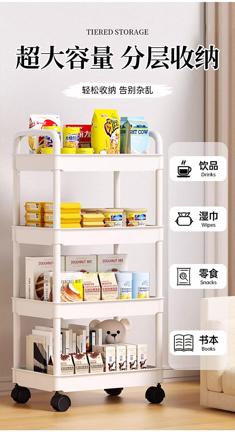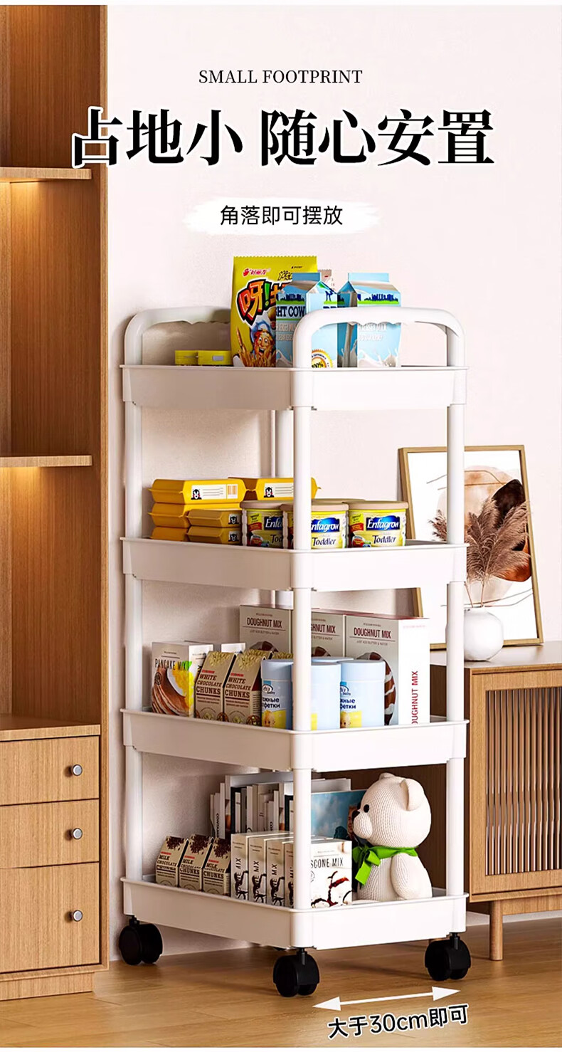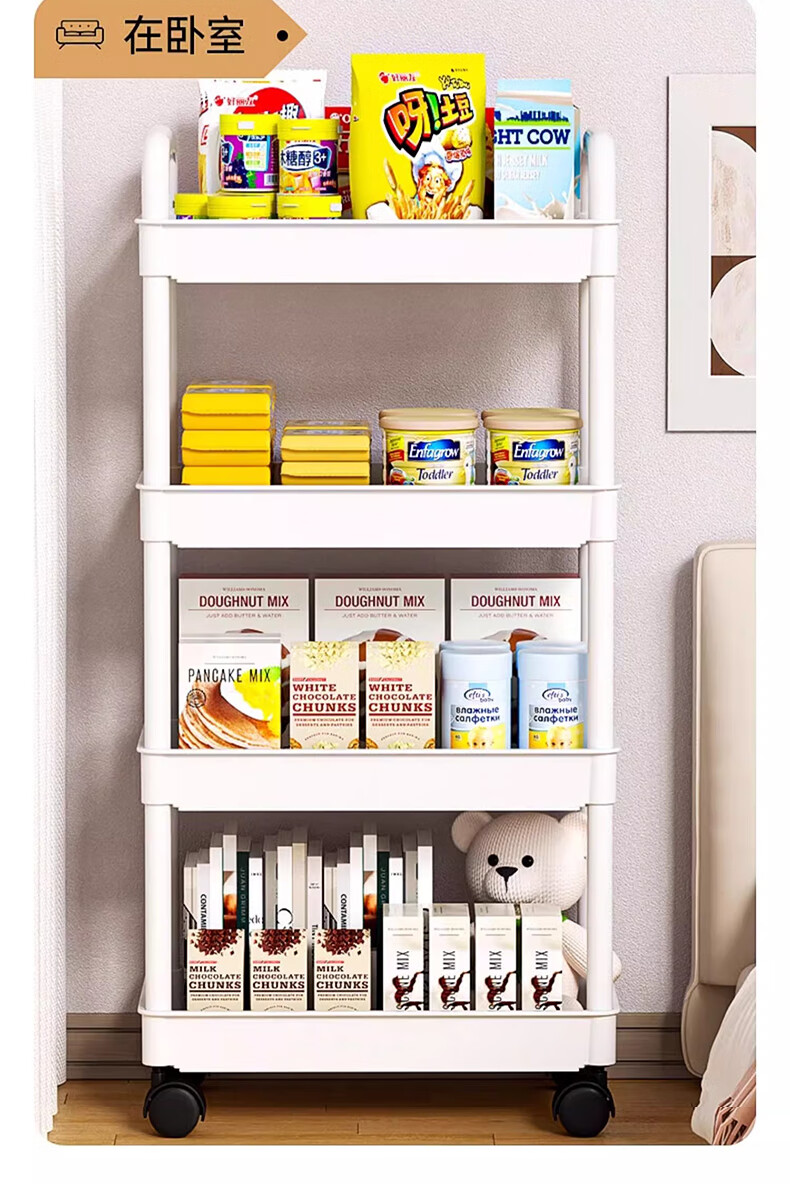 【严选好物】落地小推车置物架玩具零食收纳卫生间厨房储物架 白色五层