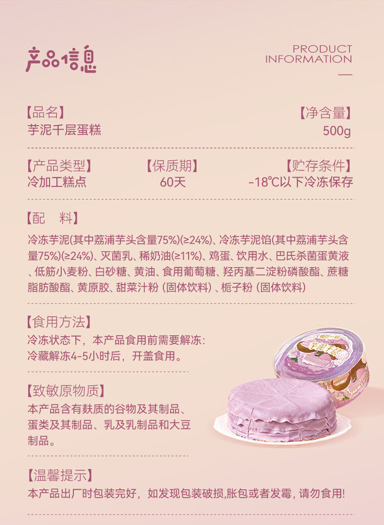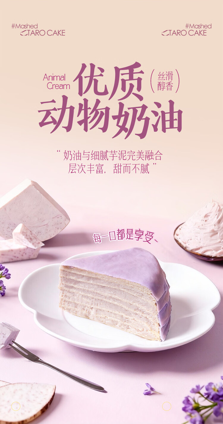 榴芒一刻 芋泥千层蛋糕动物奶油生日蛋糕甜品下午茶聚会糕点500g 【荔浦芋头】芋泥千层500g
