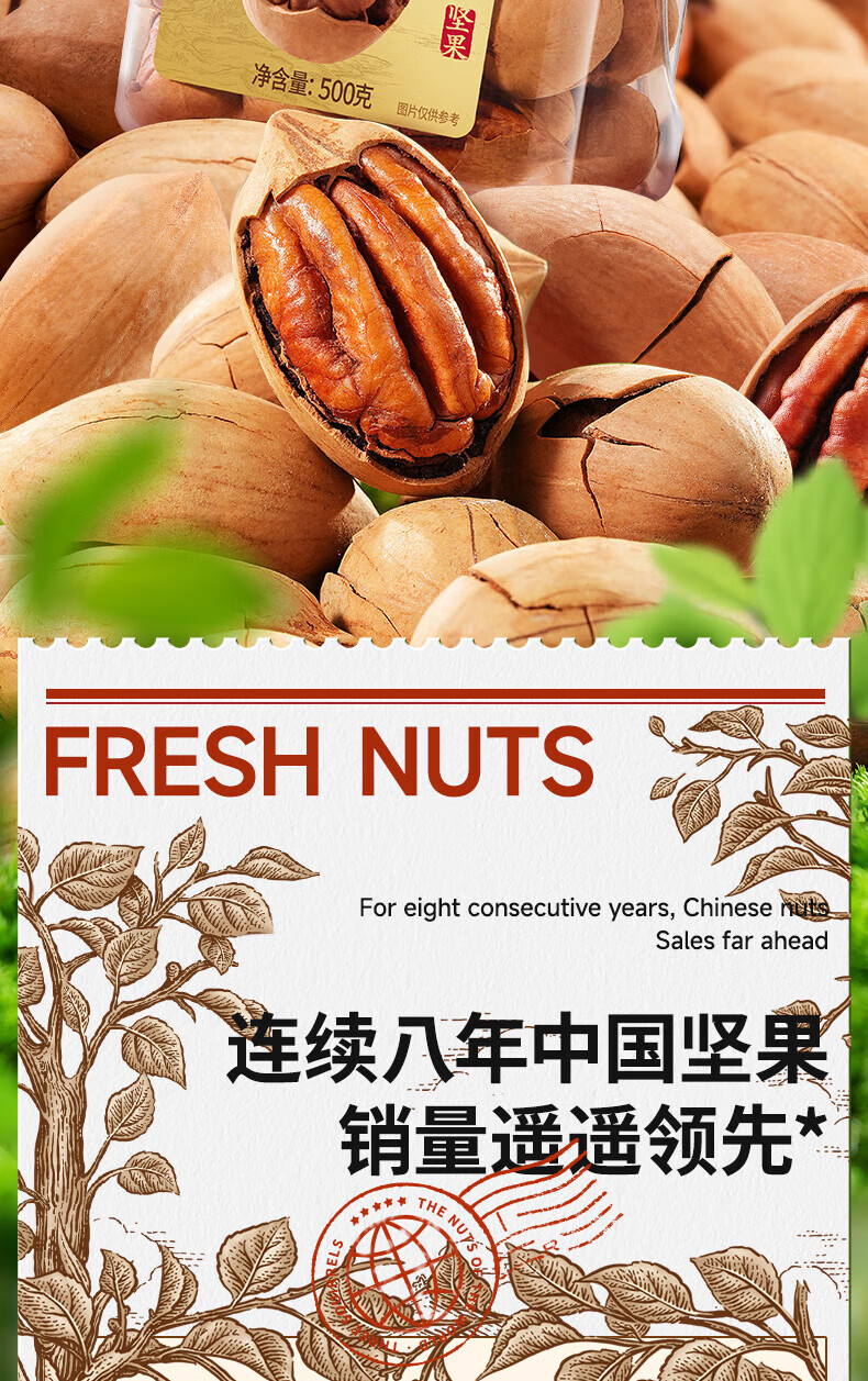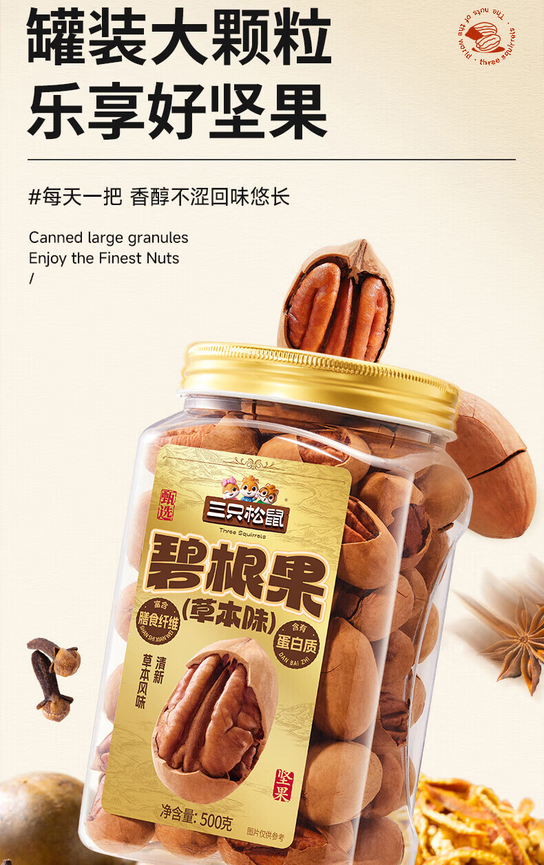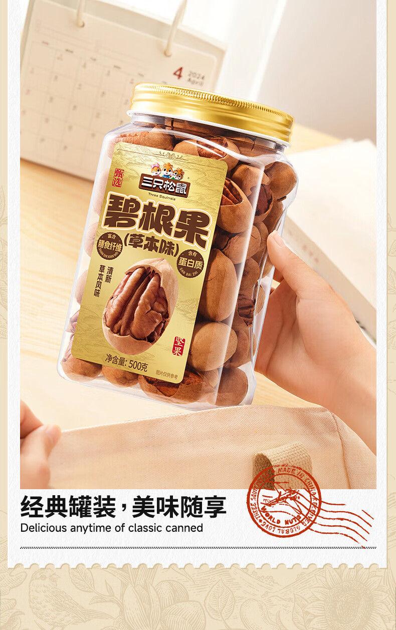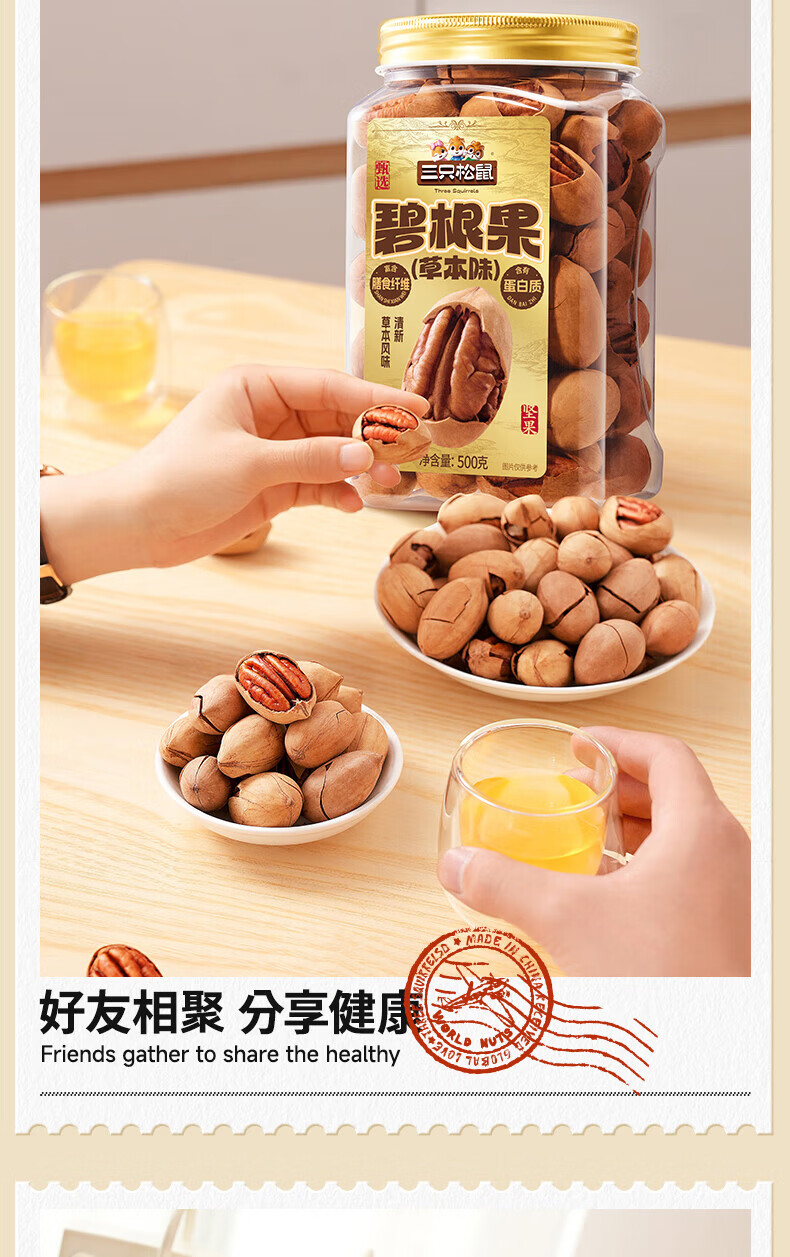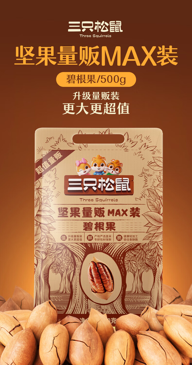 三只松鼠量贩碧根果长寿果特大颗粒健康坚果零食特产休闲食品节日送礼 【送礼优选】箱装碧根果仁500g