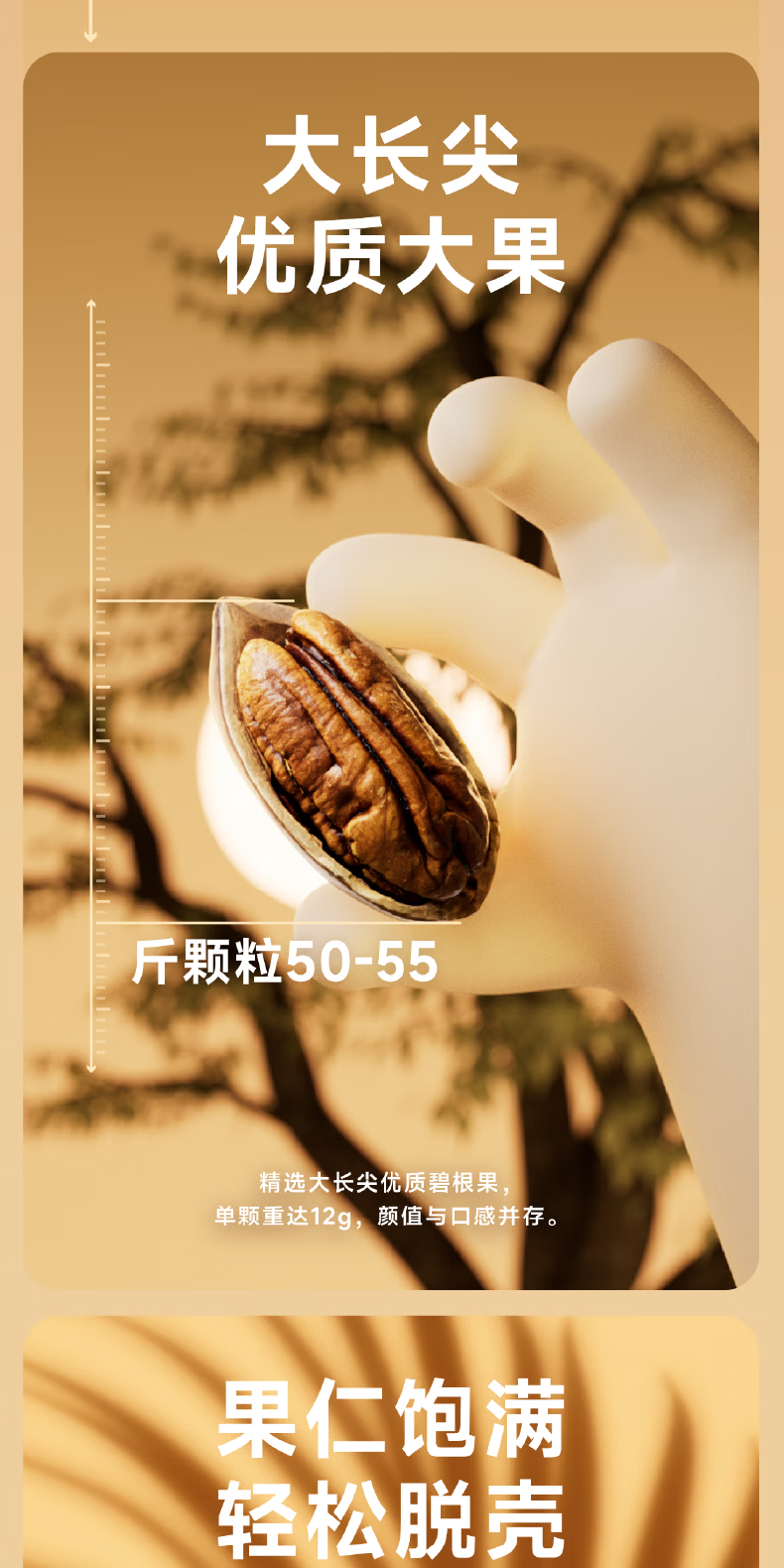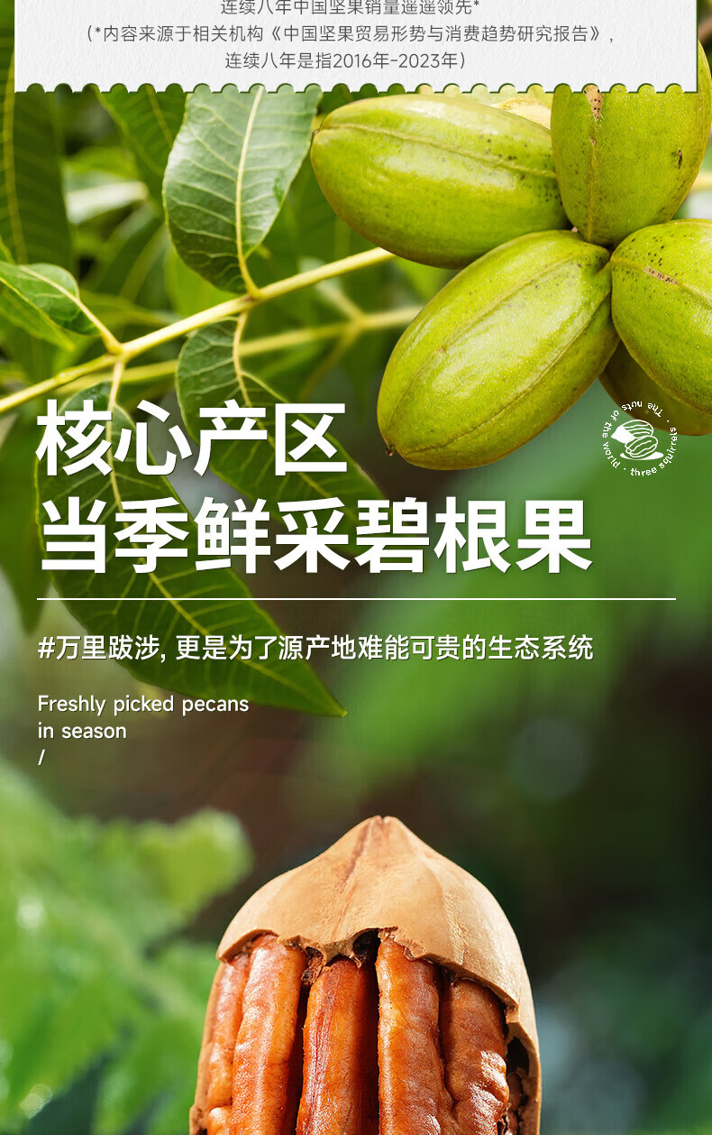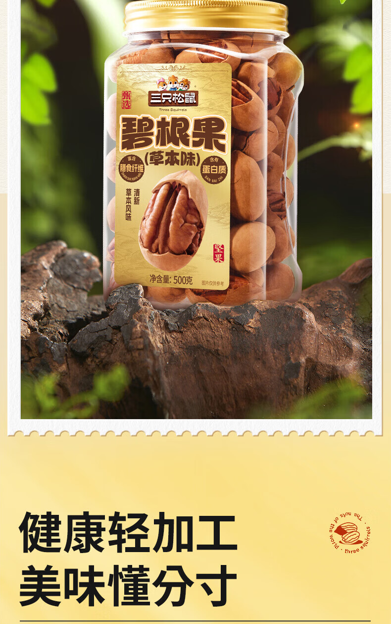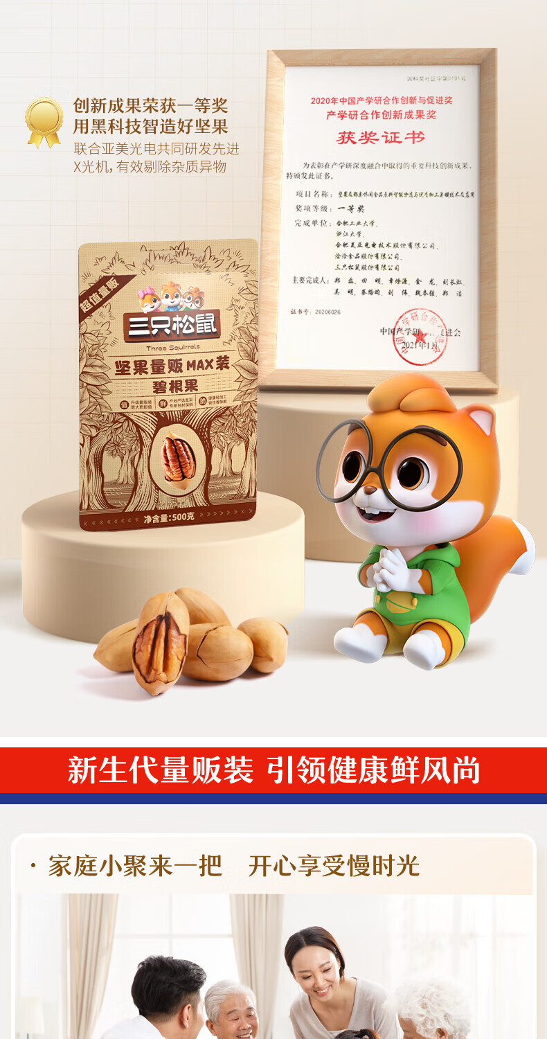 三只松鼠量贩碧根果长寿果特大颗粒健康坚果零食特产休闲食品节日送礼 【送礼优选】箱装碧根果仁500g