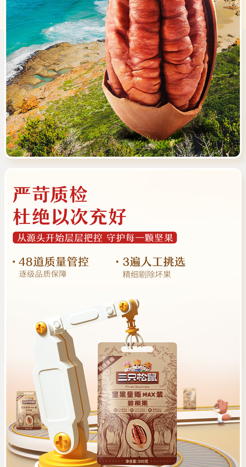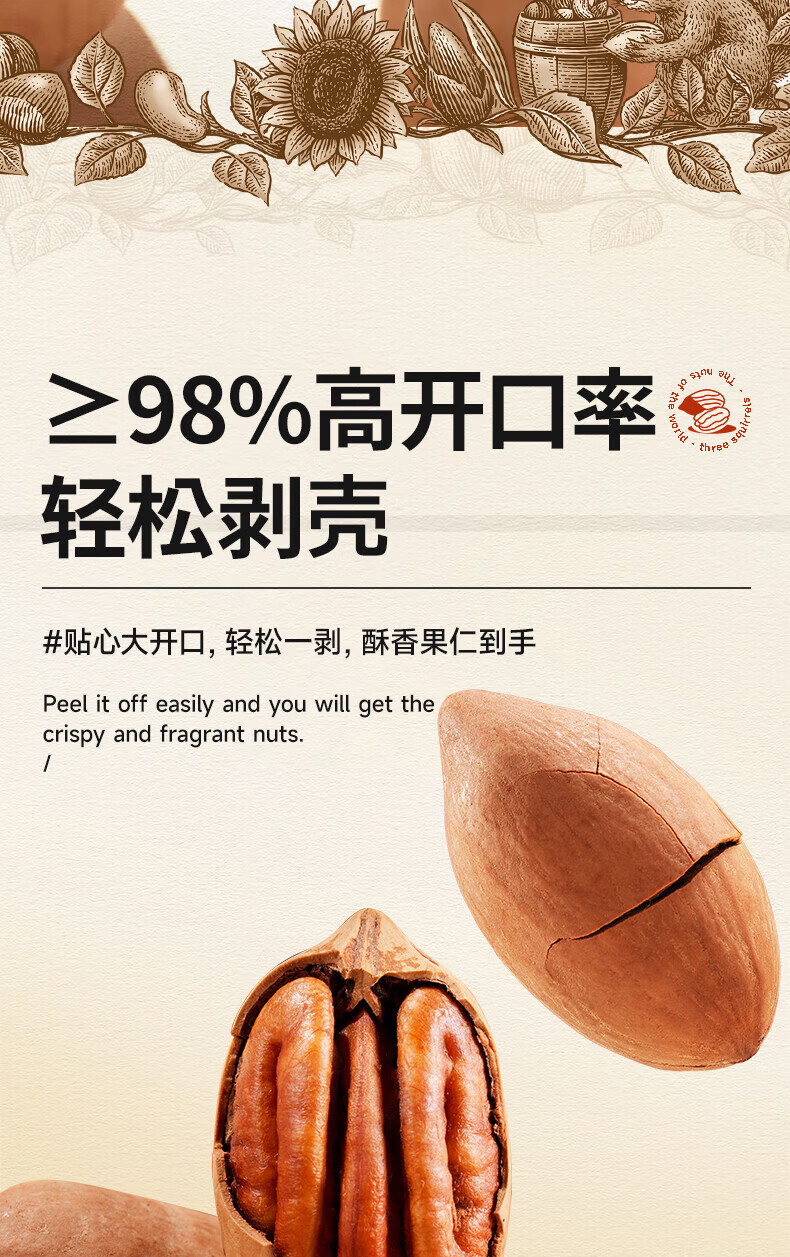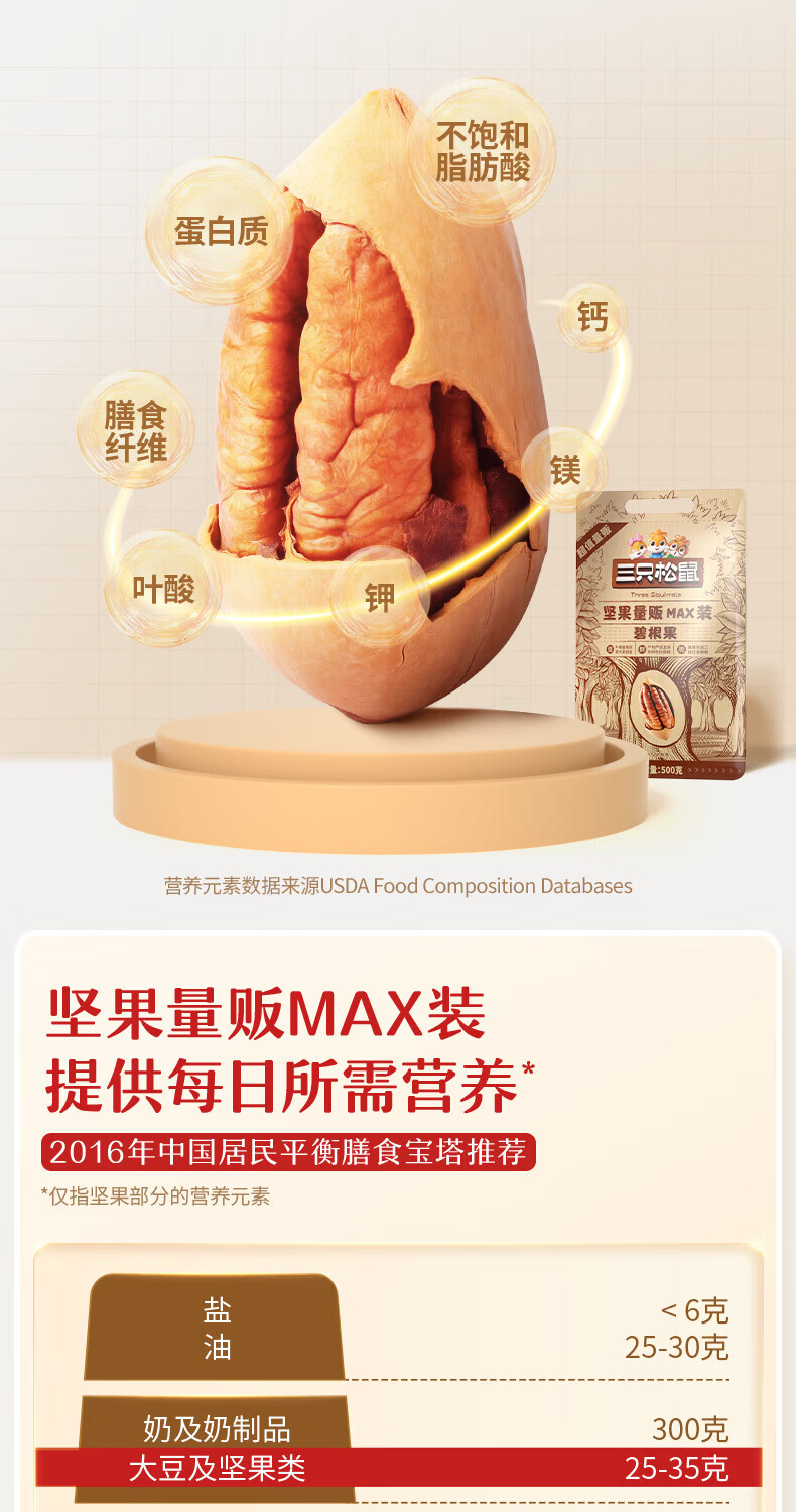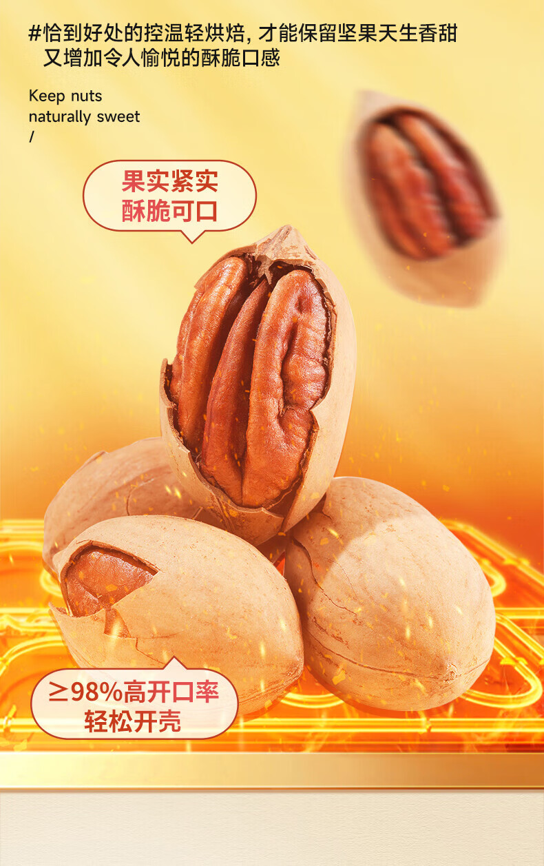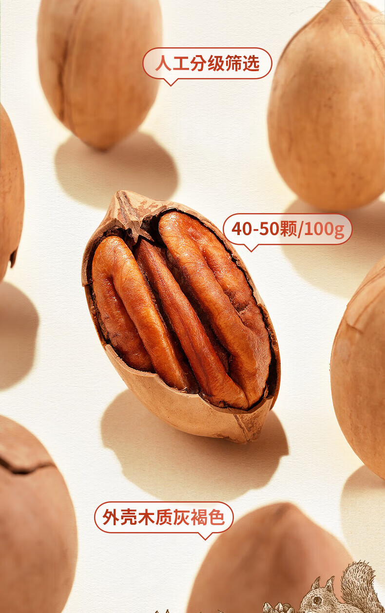 三只松鼠量贩碧根果长寿果特大颗粒健康坚果零食特产休闲食品节日送礼 【送礼优选】箱装碧根果仁500g