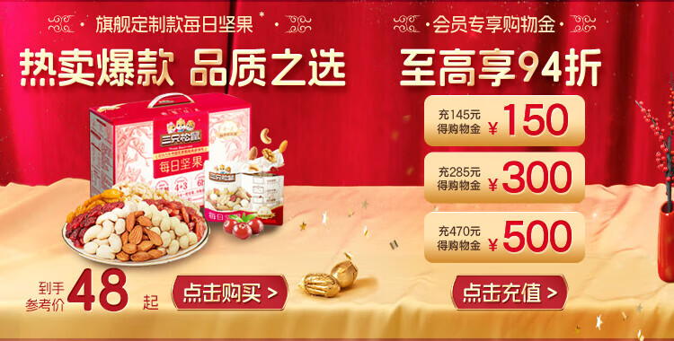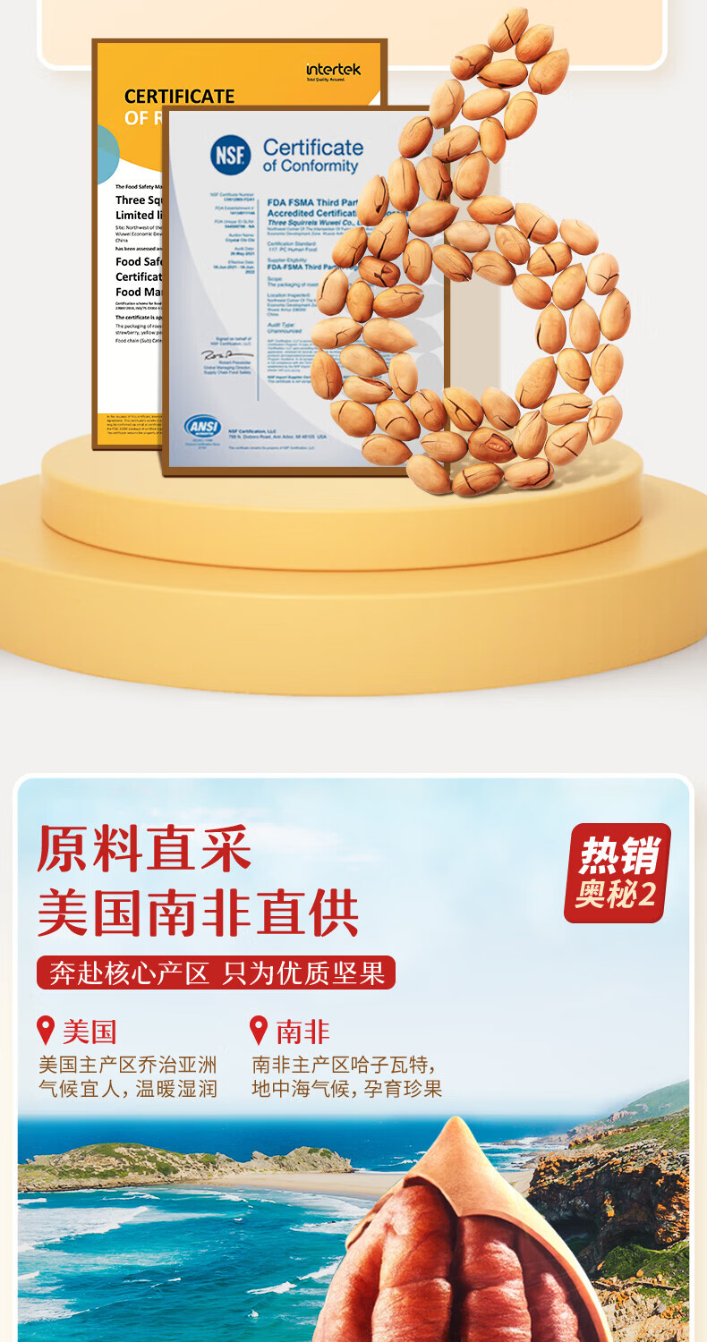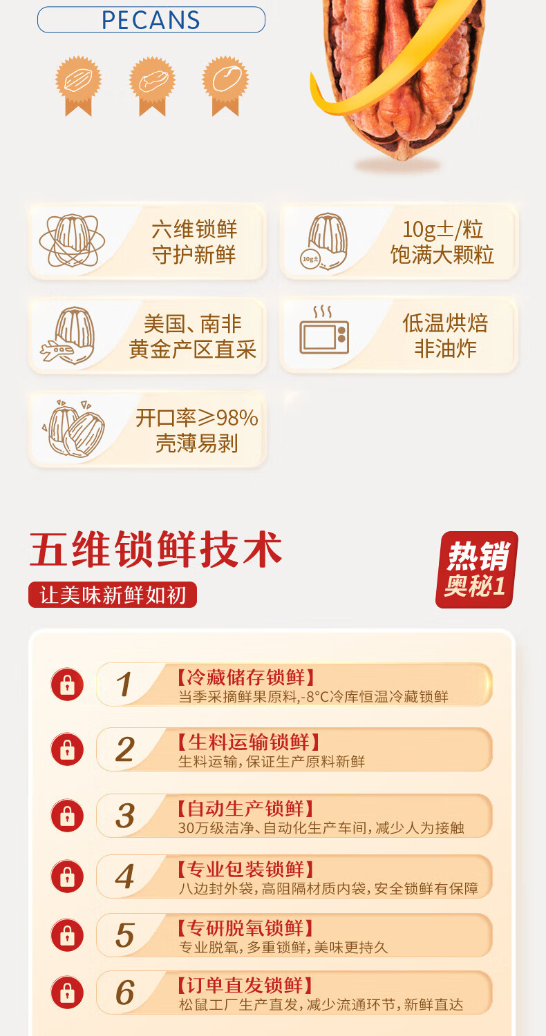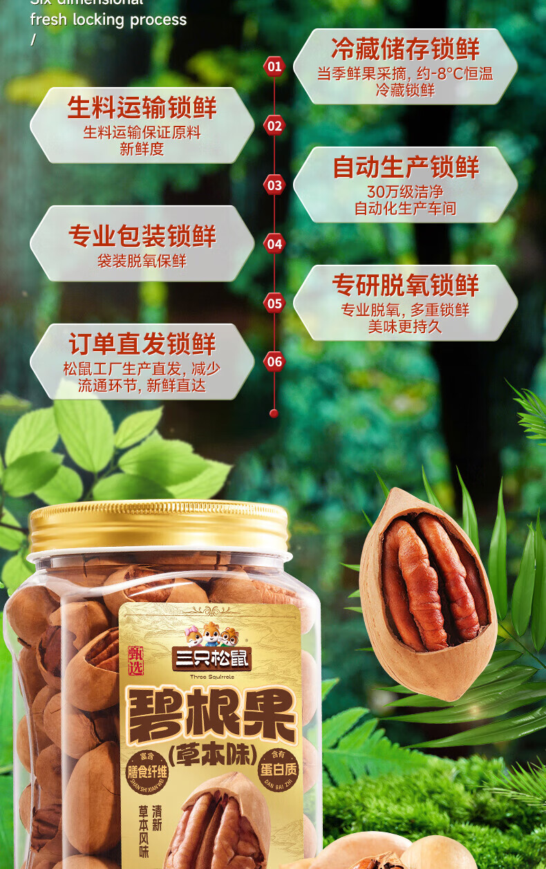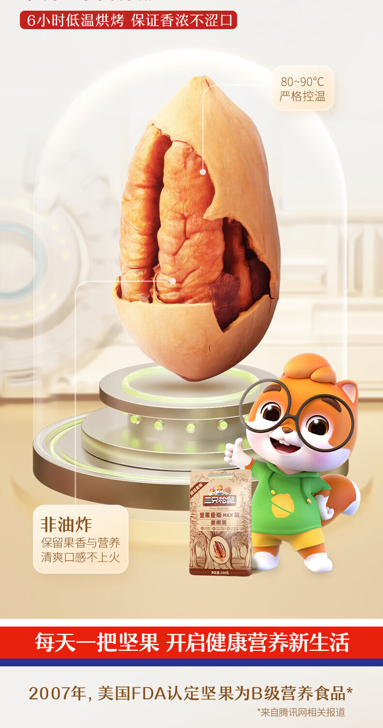 三只松鼠量贩碧根果长寿果特大颗粒健康坚果零食特产休闲食品节日送礼 【送礼优选】箱装碧根果仁500g