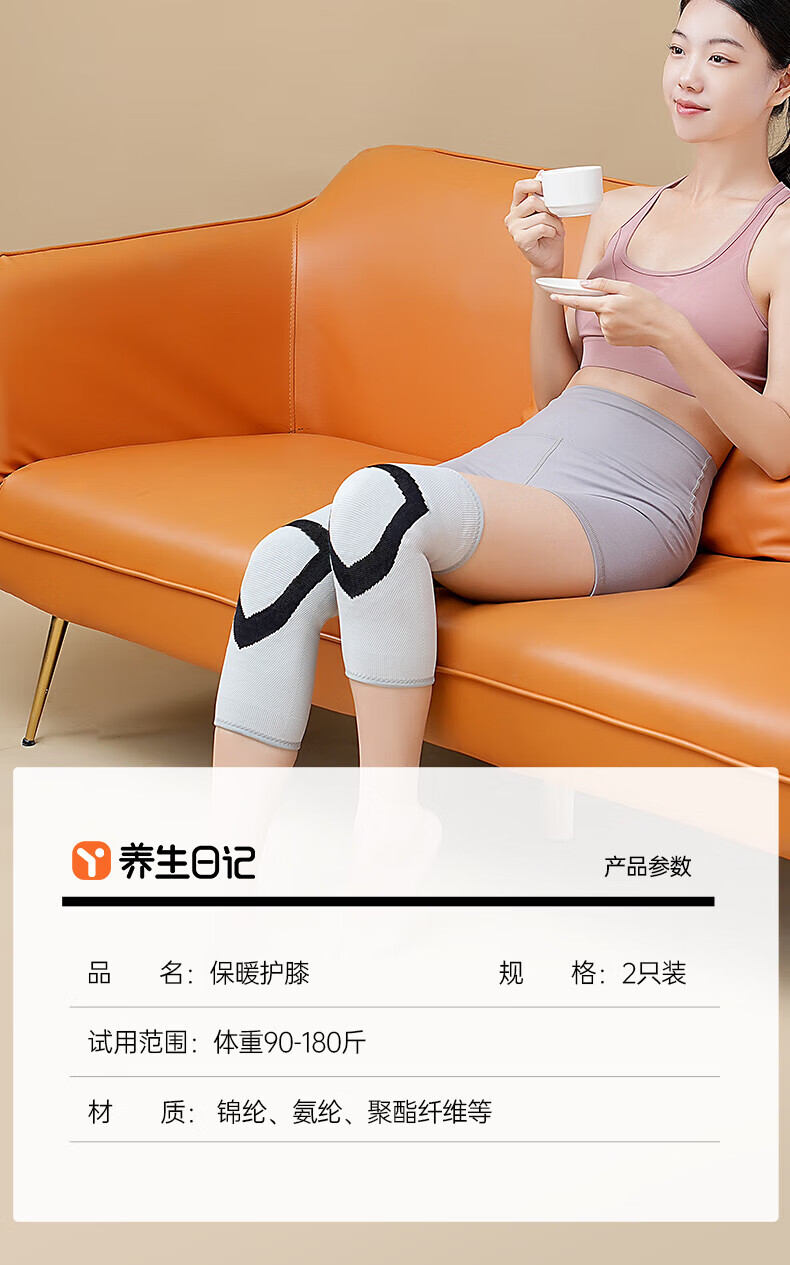 养生日记护膝保暖关节炎夏季防寒艾草老寒腿疼保护膝盖半月板保暖男女中 均码(两只装) 石墨烯艾草-四面高弹款