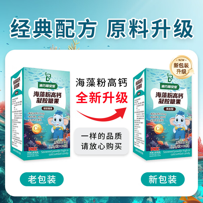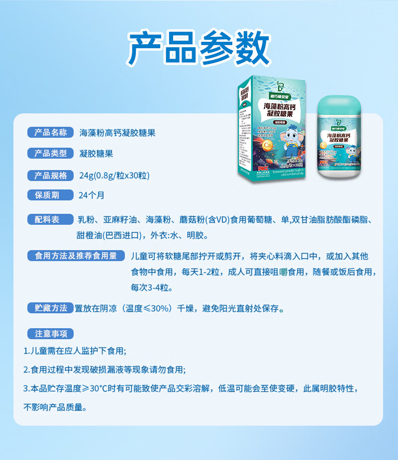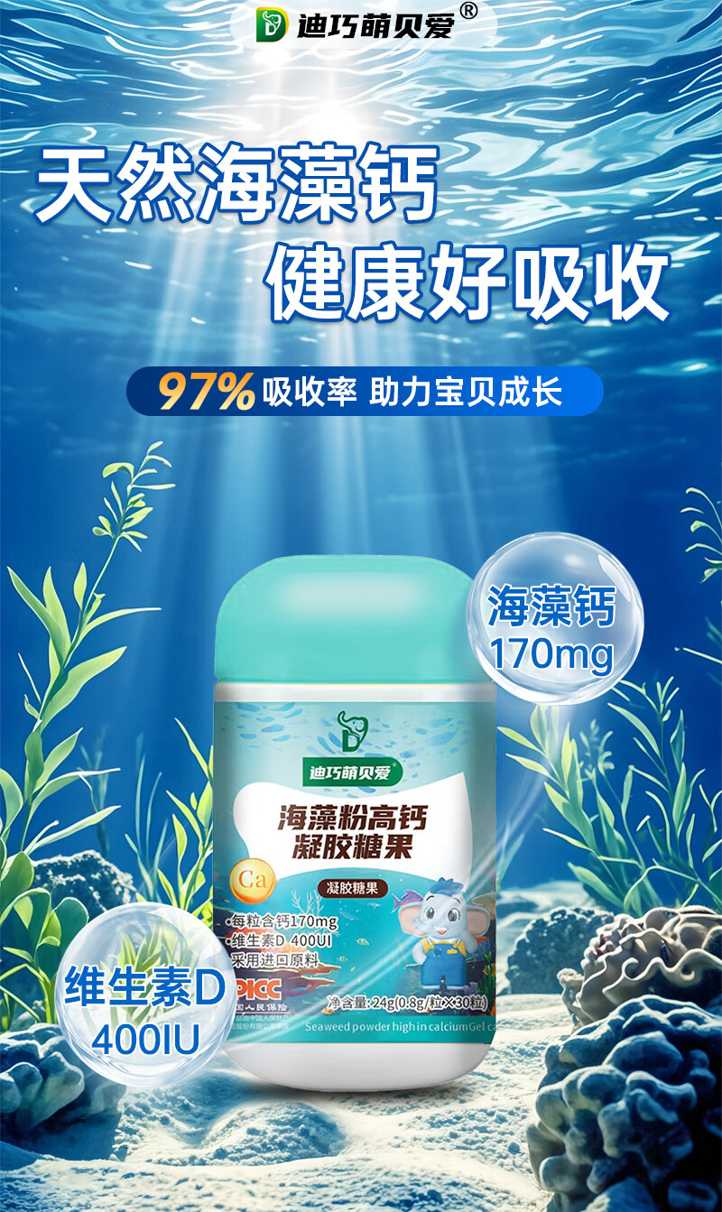 迪巧萌贝爱海藻钙婴幼儿液体钙缺钙婴儿0-1岁补钙儿童3-6岁婴儿补钙片胶囊 【抓住猛涨期】 30粒*8盒 迪巧海藻钙