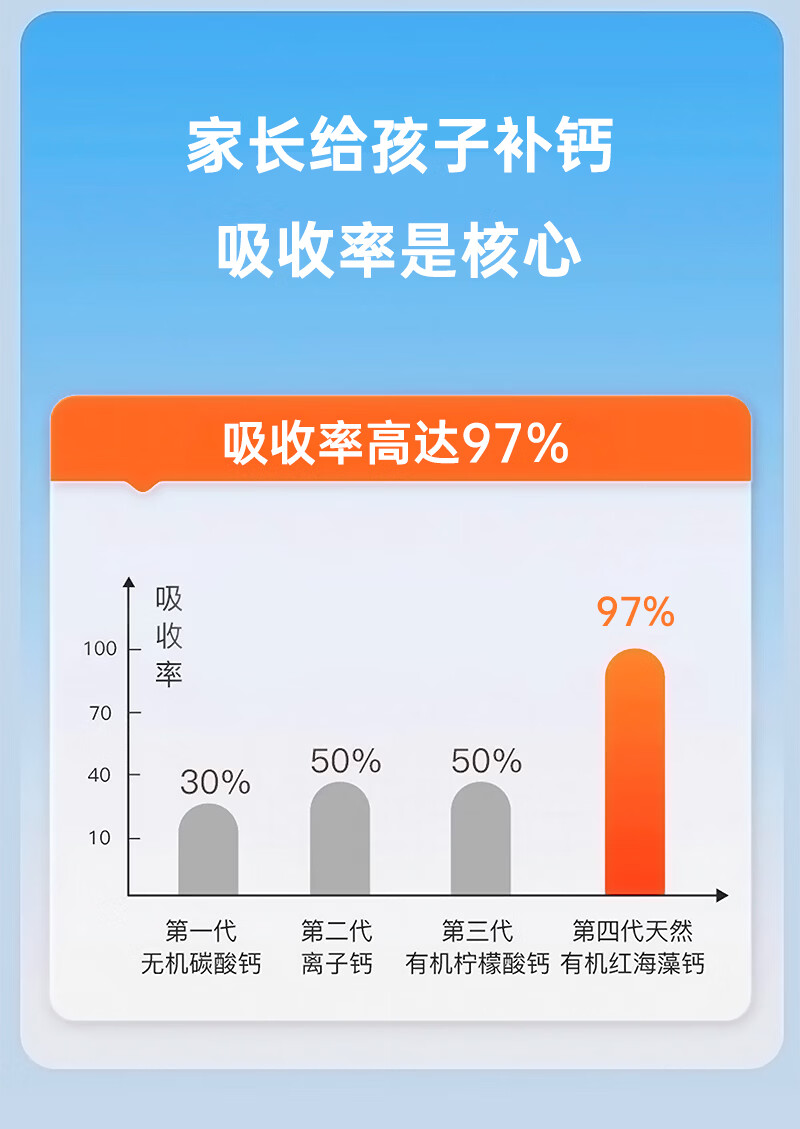 迪巧益加骨胶原Y-氨基丁酸补钙铁锌AD儿童青少年多维片成长高补缺钙片铁锌 牛奶味- 60片*3盒