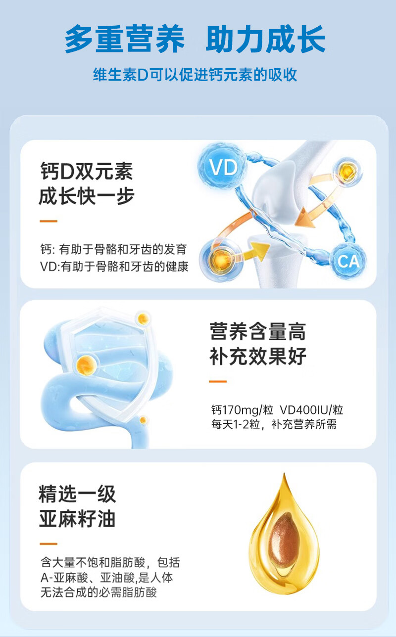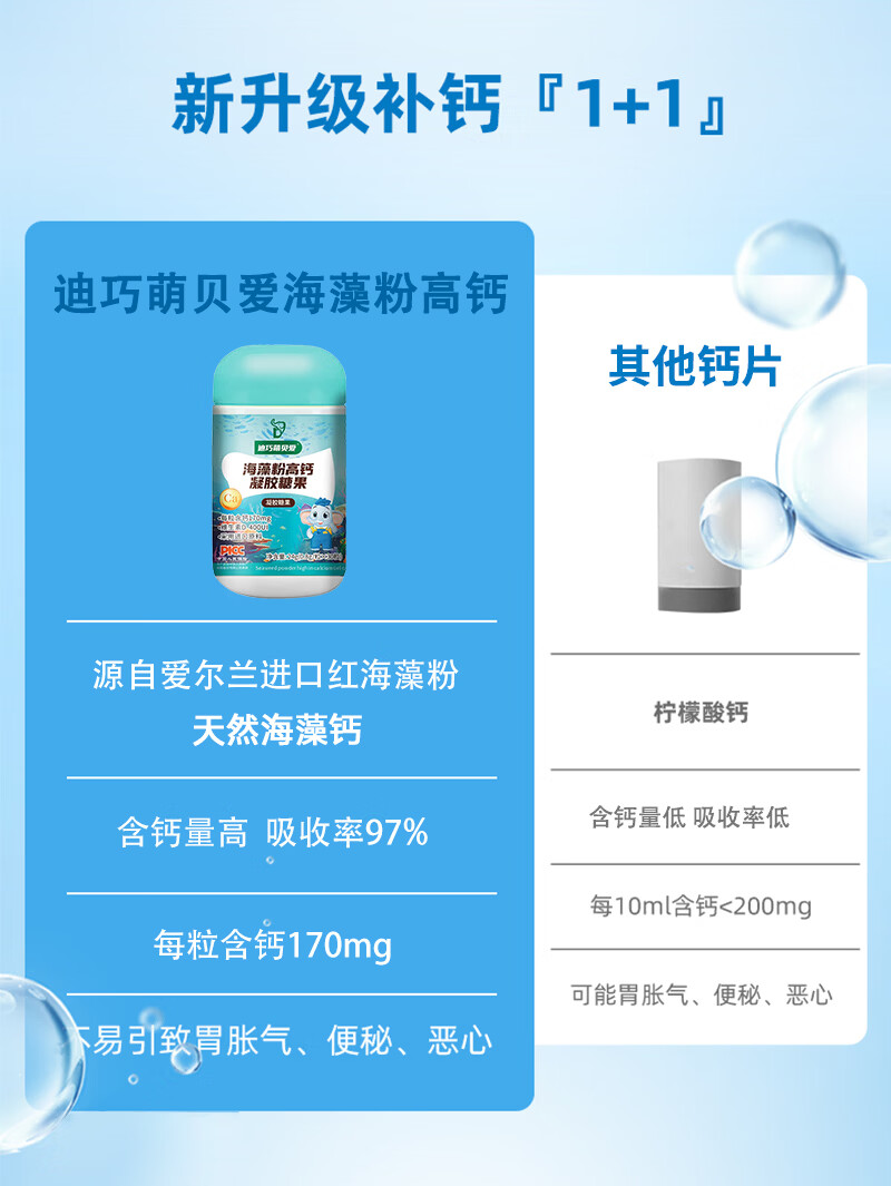 迪巧益加小金粒钙铁镁锌四合一婴幼儿童0-3岁液体海藻补缺钙铁锌维D酵母锌 钙铁镁锌同补【京东发货】 30粒*3盒