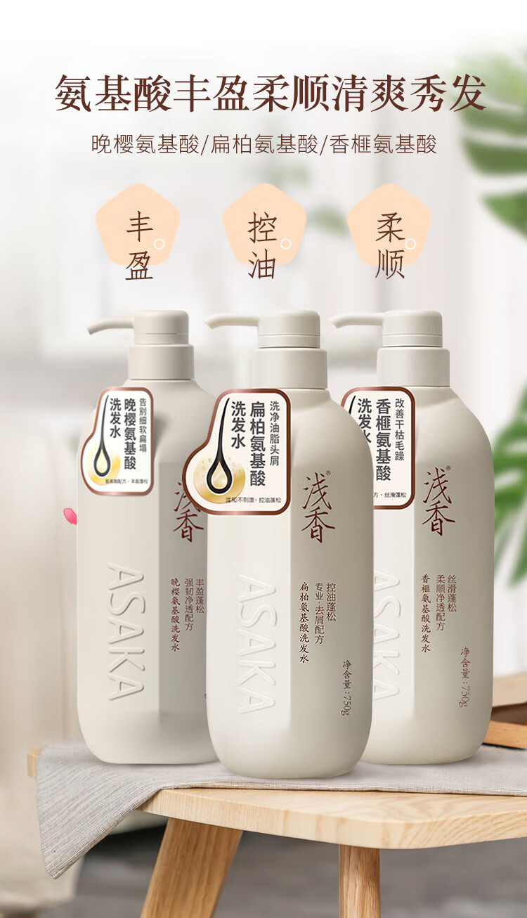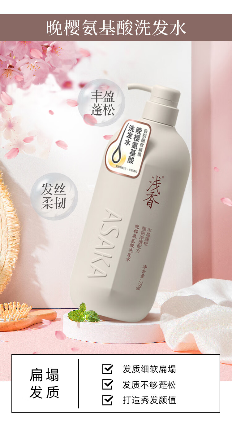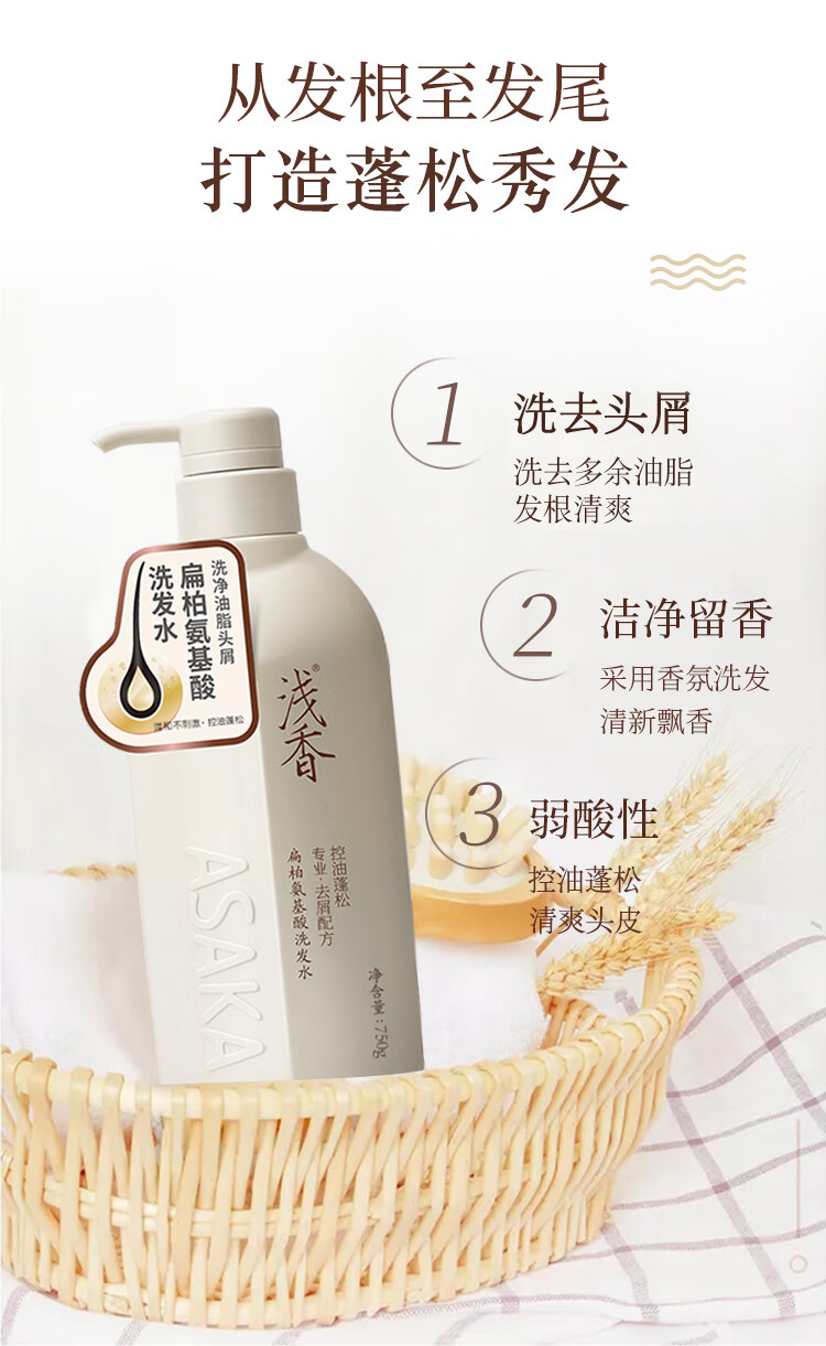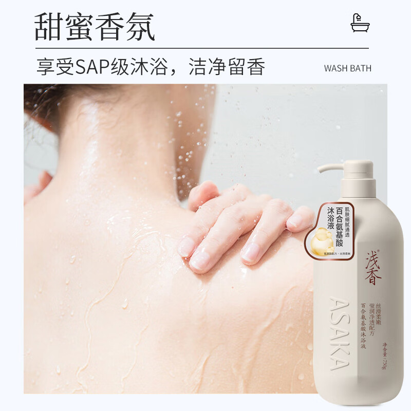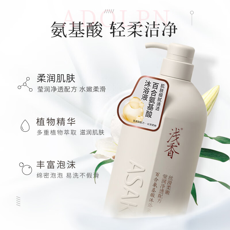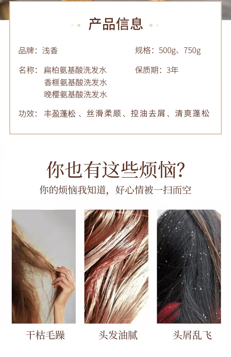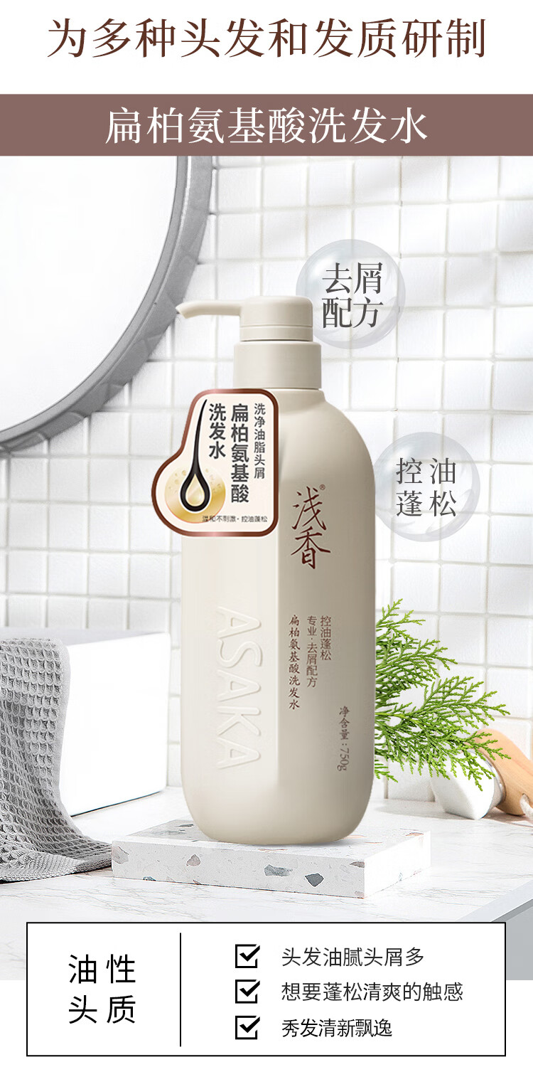 浅香氨基酸控油去屑清爽洗发水蓬松温和留香百合爽肤柔滑沐浴组合男女 洗发750g*2瓶(备注功效或随机发)