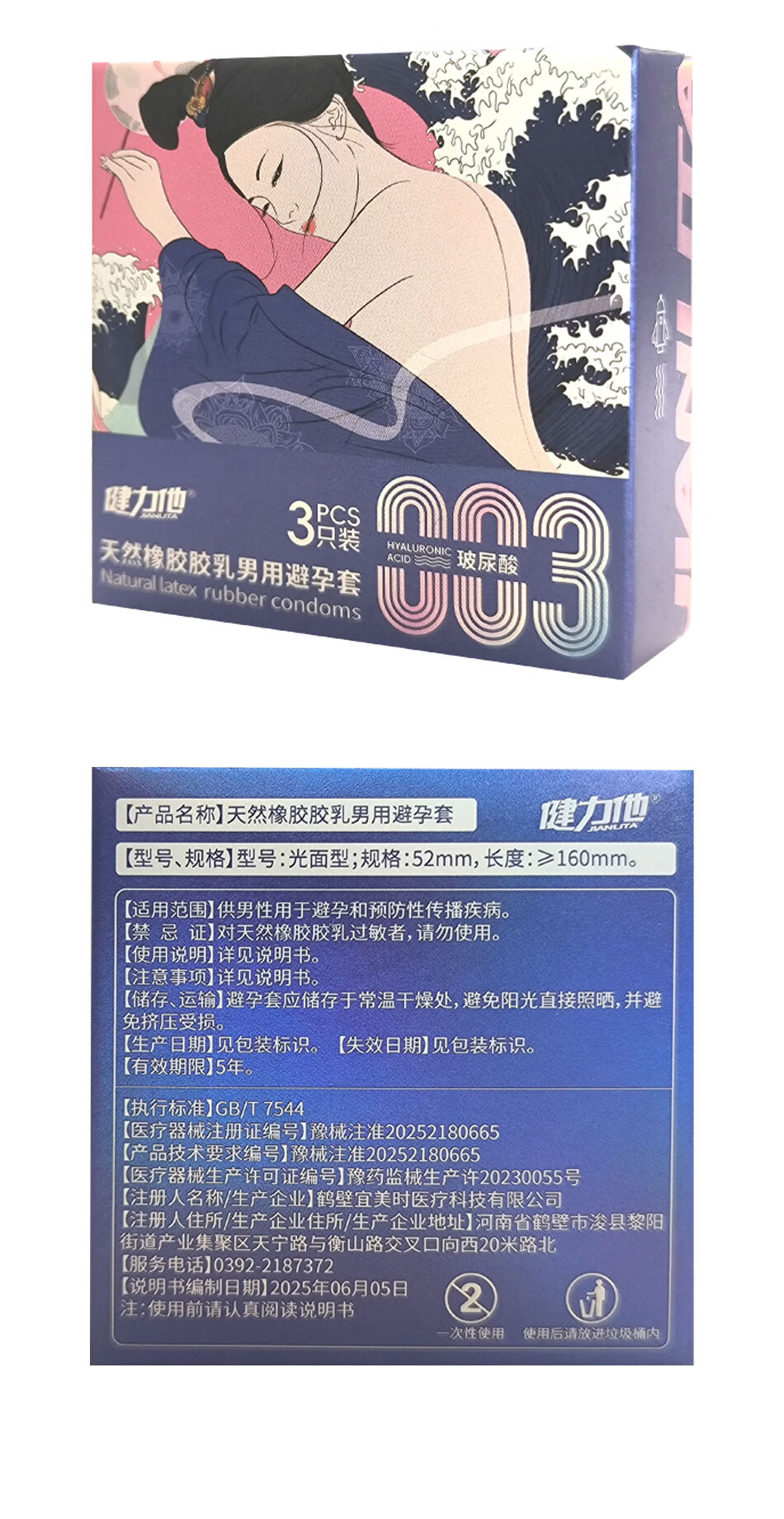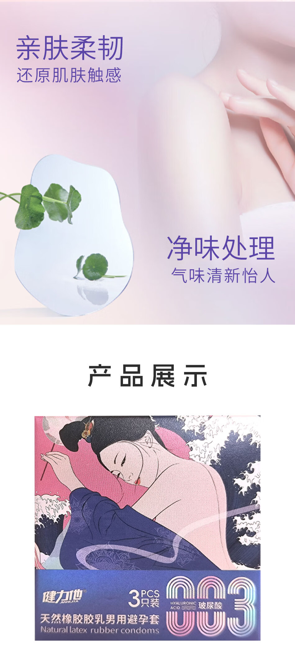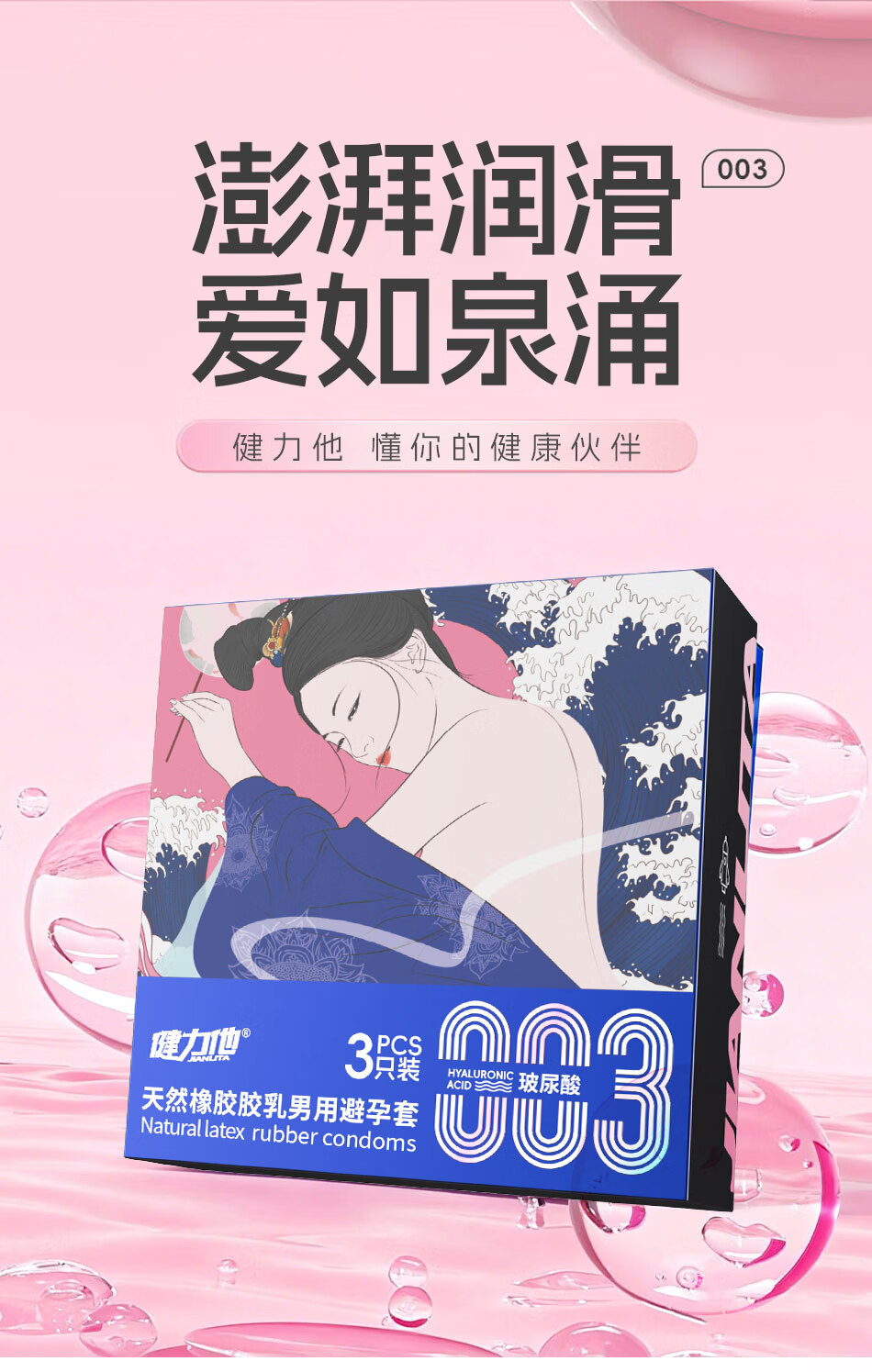 健力他003玻尿薄酸避孕套安全套套裸入男女用成人情趣用品 八盒装(24只囤货装)