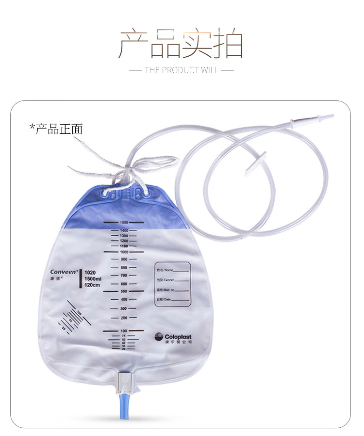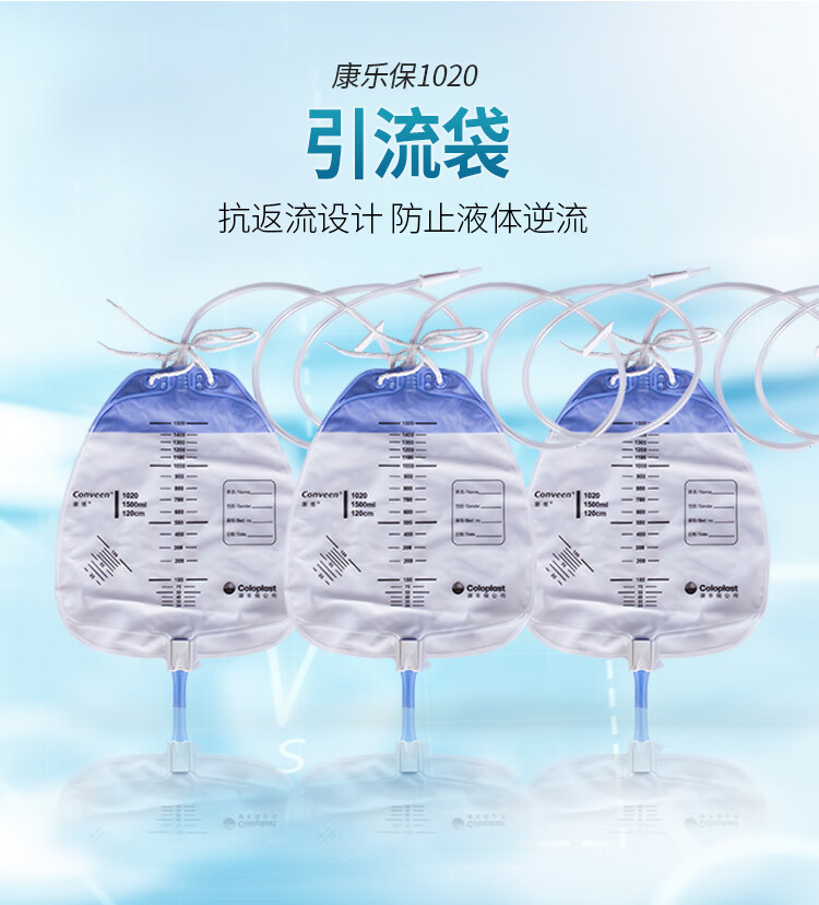 康乐保康维引流袋尿袋1020/1030抗反流一次性使用尿袋 康维1020引流袋1500ml管120cm【10个