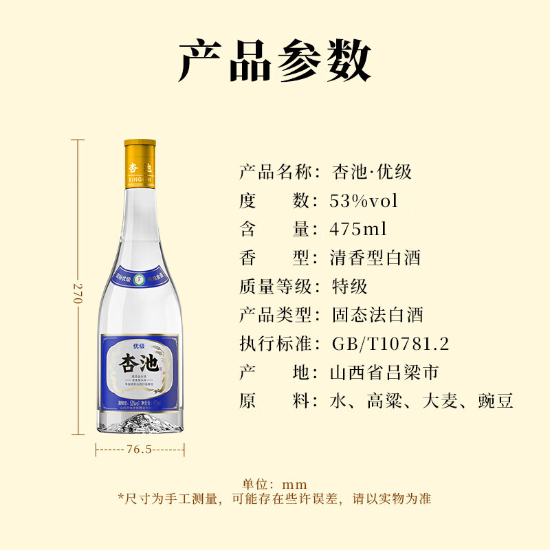 杏池老窖特级清香型白酒 特级/优级 口粮酒 53%vol 248mL 1瓶 【小酒品鉴装特级】