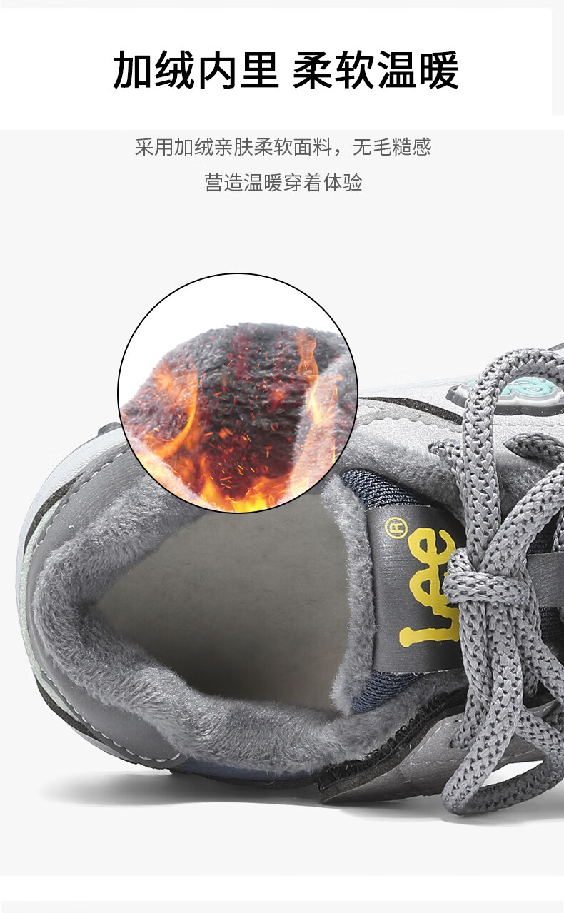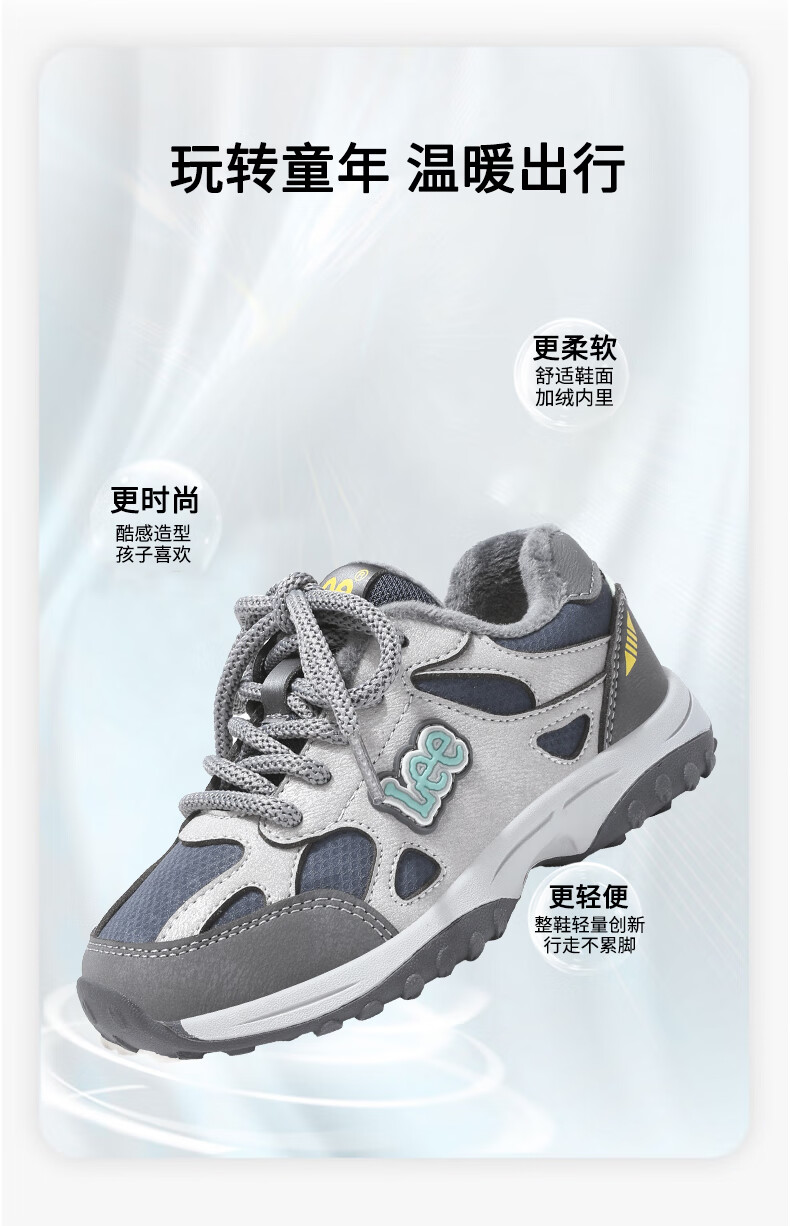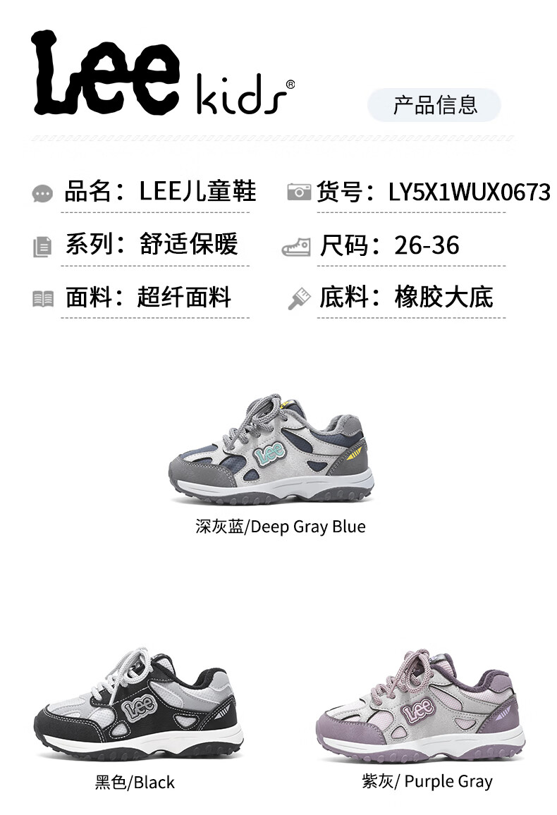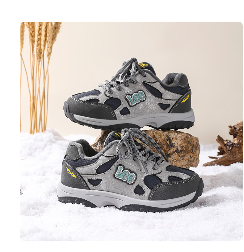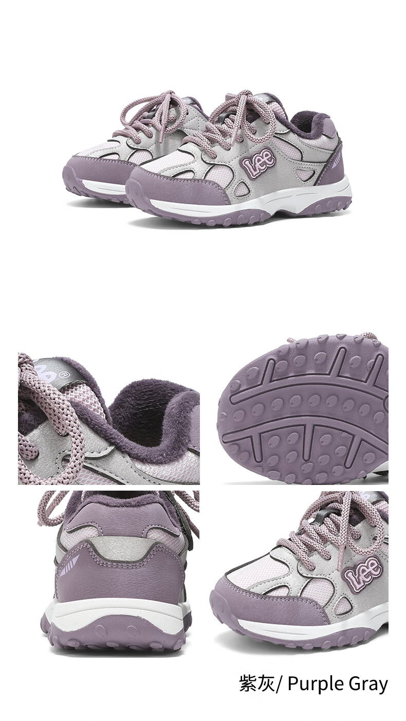 LEE KIDS童鞋2025秋冬季加绒儿童运动鞋女童防滑跑步鞋男大童耐磨休闲鞋 紫灰【加绒】 36 【内长23.2cm适合脚长22.2-22.7cm】