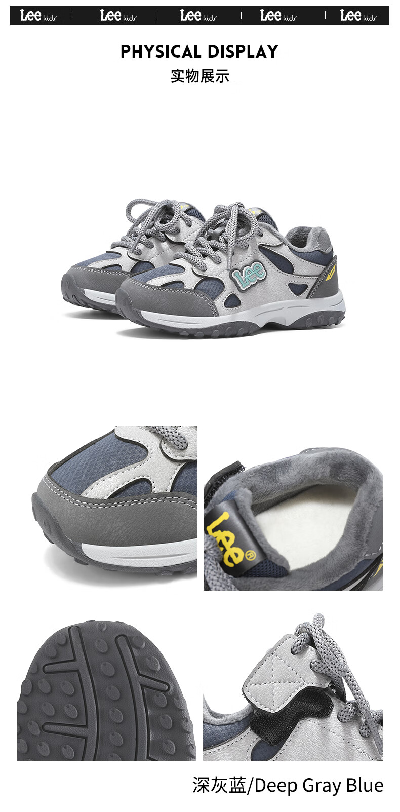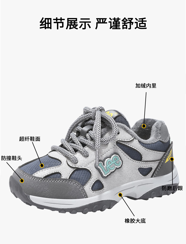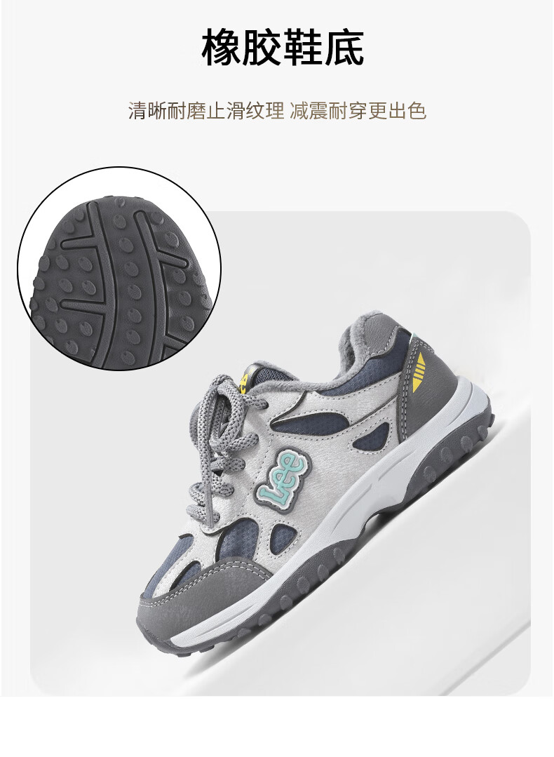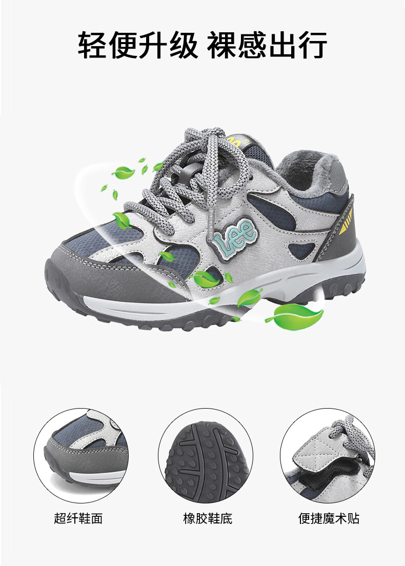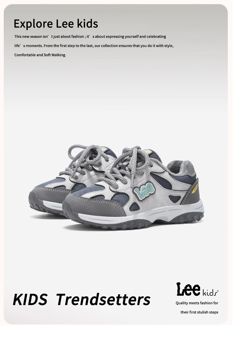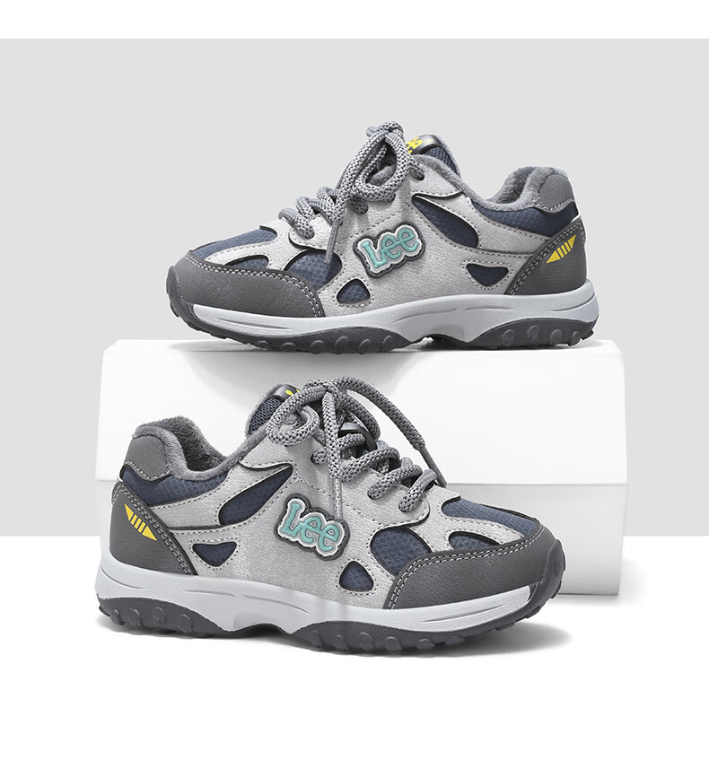 LEE KIDS童鞋2025秋冬季加绒儿童运动鞋女童防滑跑步鞋男大童耐磨休闲鞋 紫灰【加绒】 36 【内长23.2cm适合脚长22.2-22.7cm】