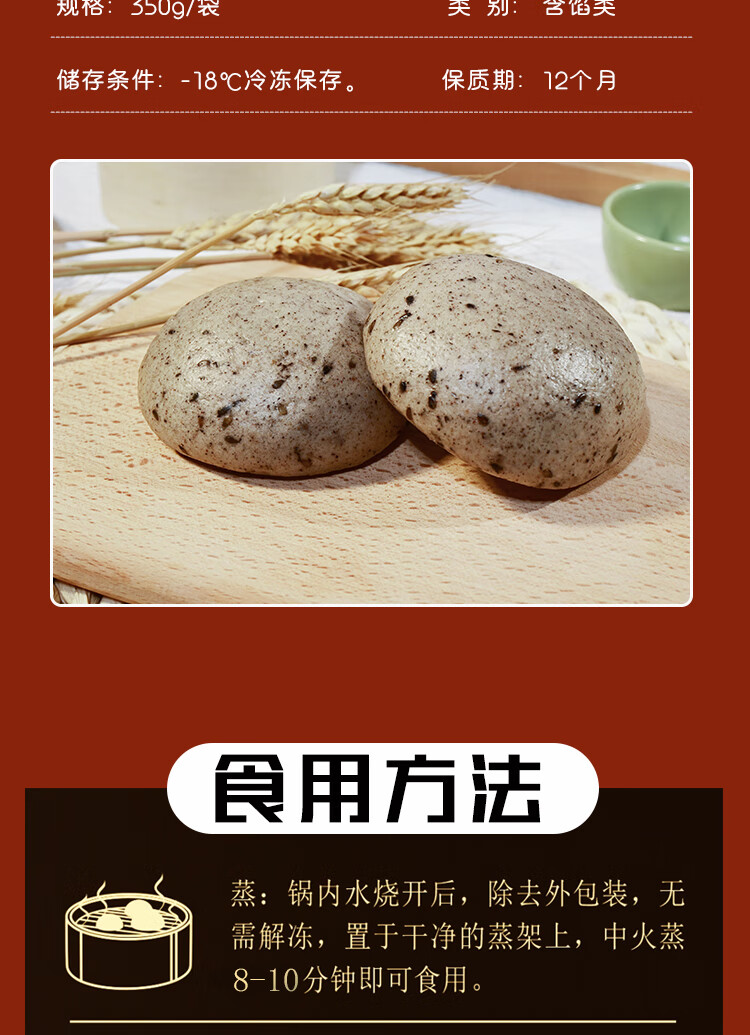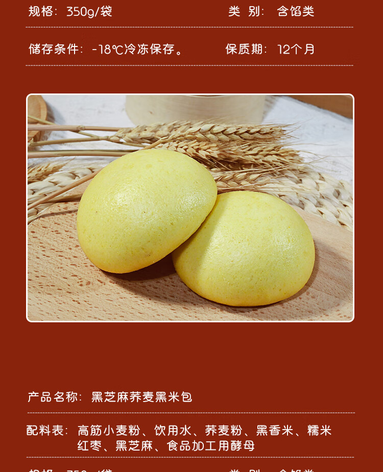 山东手工杂粮桂圆大枣孕妇速冻早餐半成品无糖粗粮荞麦面点馒头 [不加糖]黑芝麻荞麦黑米包/1050g*3袋装