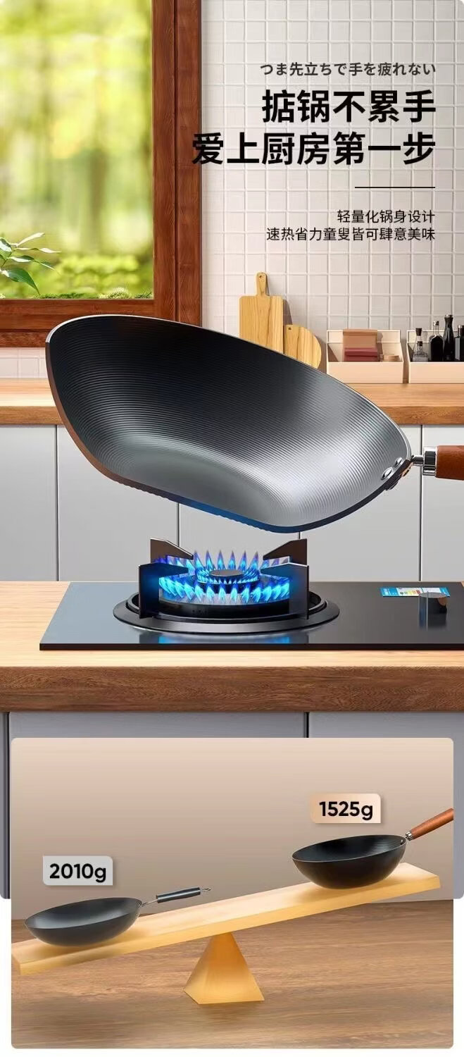 阎铁匠章丘炒锅铁锅家用炒菜锅锻打老式物理不粘锅无涂层木把锤印已开锅 锤印木把款32CM 32cm