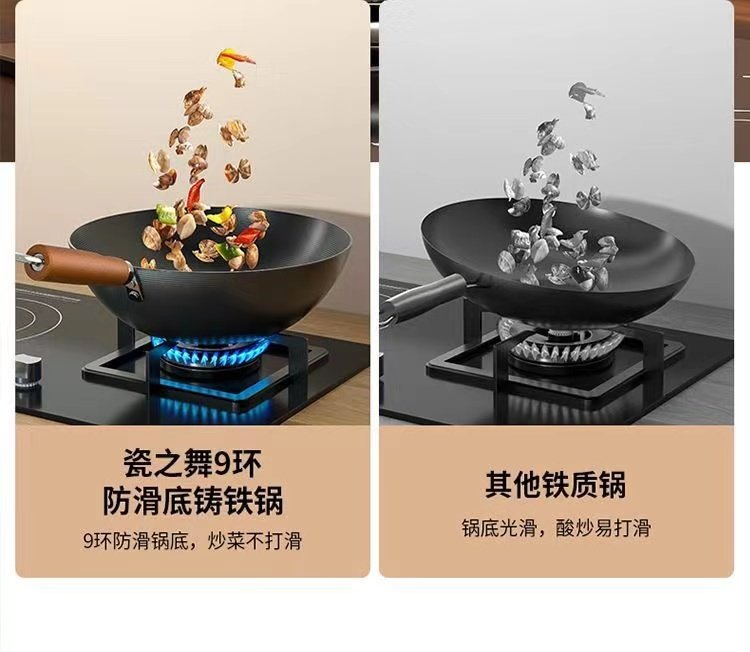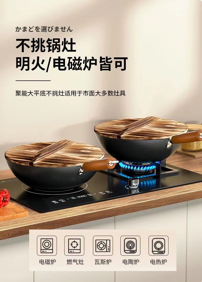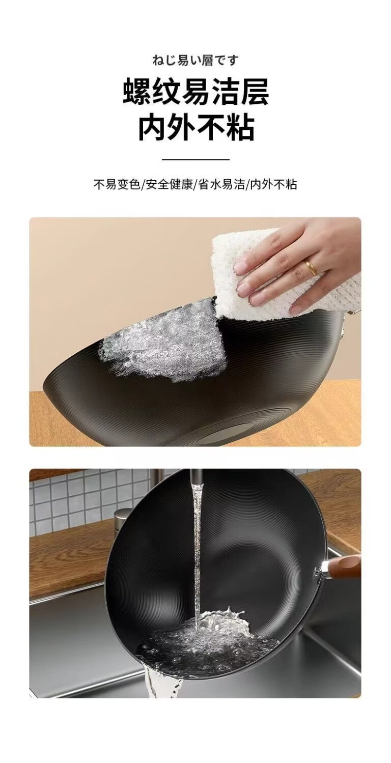 胖东来同款老式极铁锅炒锅家用不沾锅平底迷你炒锅瓦斯灶电磁炉专 【螺纹易洁-内外不粘】-单锅 24cm