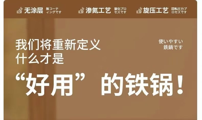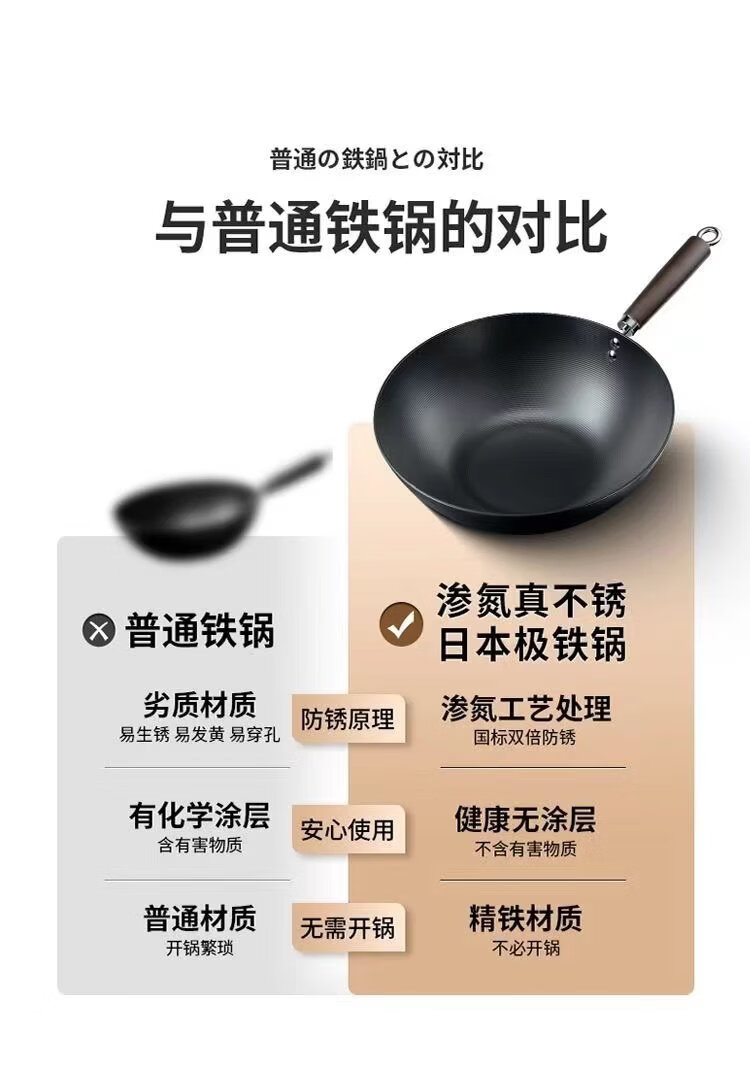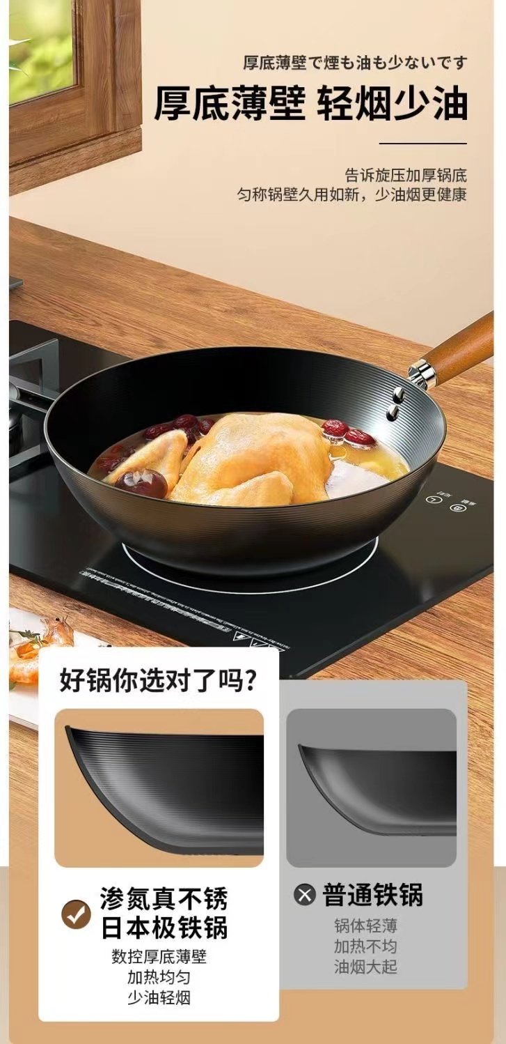 EWIWE 真不锈窒化渗氮铁锅不易生锈炒锅老式家用无涂层燃气灶炒菜锅 深层窒化真不锈 炉具通用型 32cm