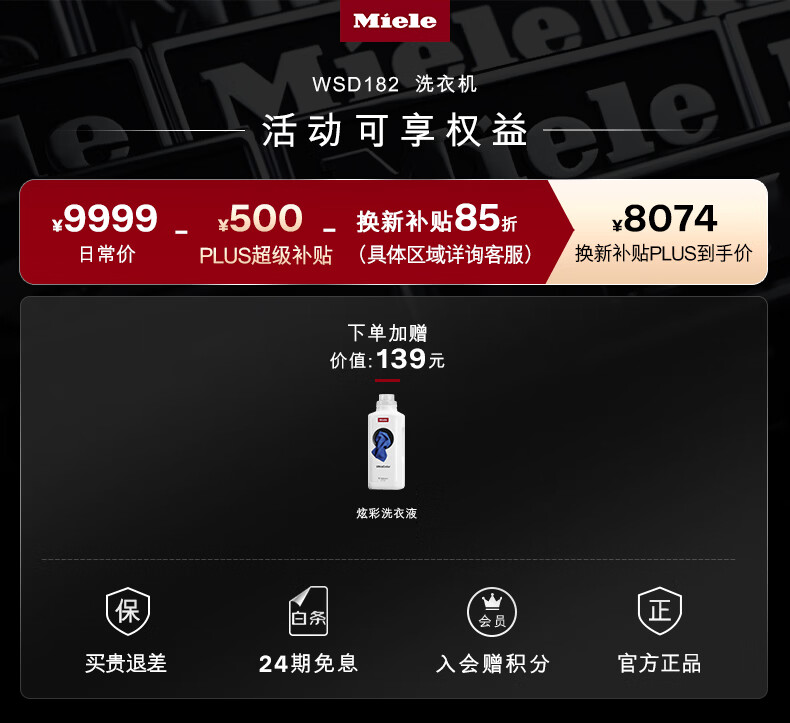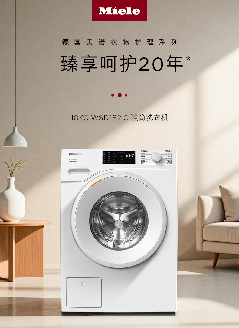 美诺(Miele)【新品】洗衣机欧洲原装进口蜂巢滚筒家用全自动除菌大容量10公斤WSD182 C