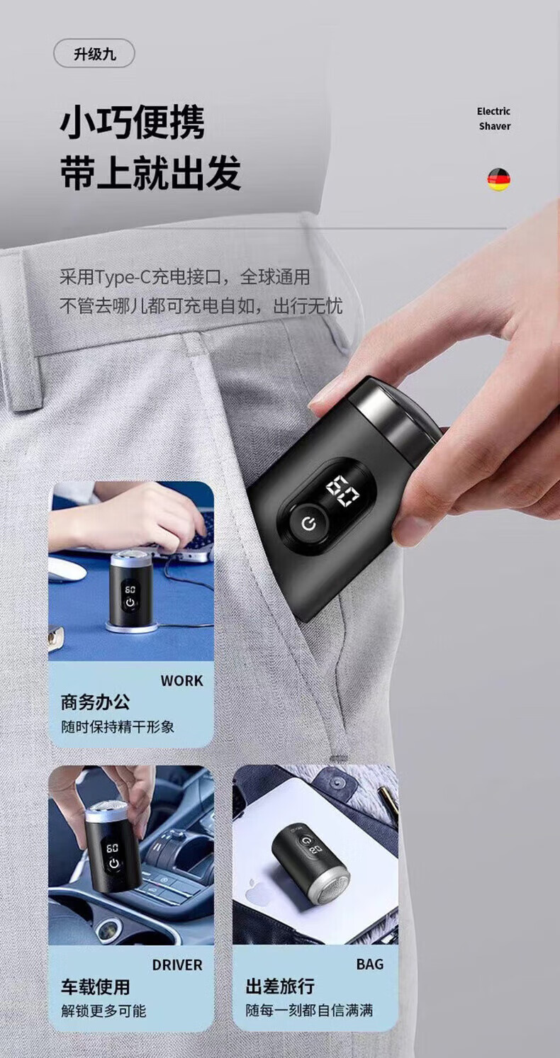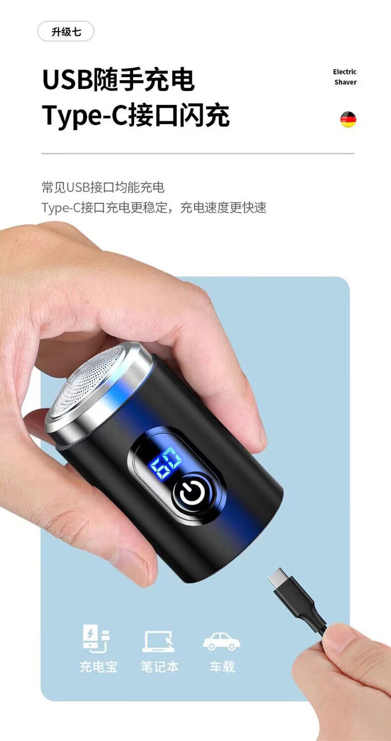 哆夕多呀电动剃须刀德国原装的品质电动刮胡刀迷你小型德国小钢炮便捷式剃胡刀七夕情人节礼物 升级数显版 25年新款升级数显版