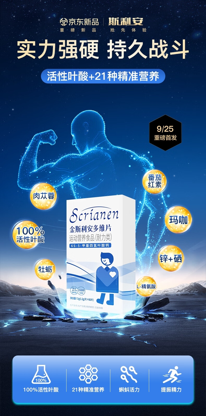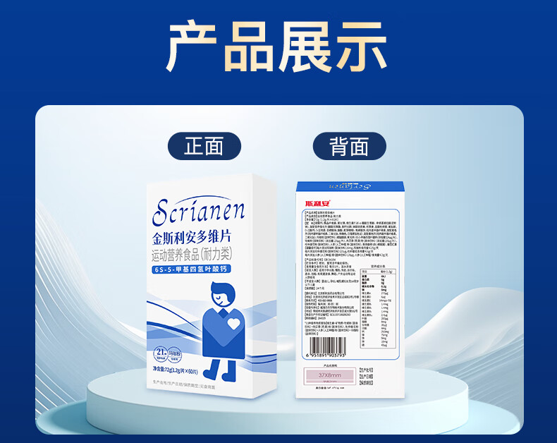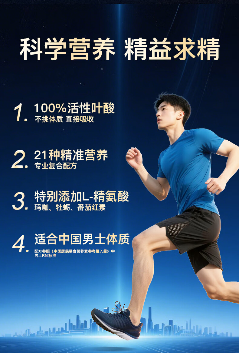 斯利安男士活性叶酸6S-5-甲基四氢叶酸钙运动营养0糖0碘 21种营养素60粒