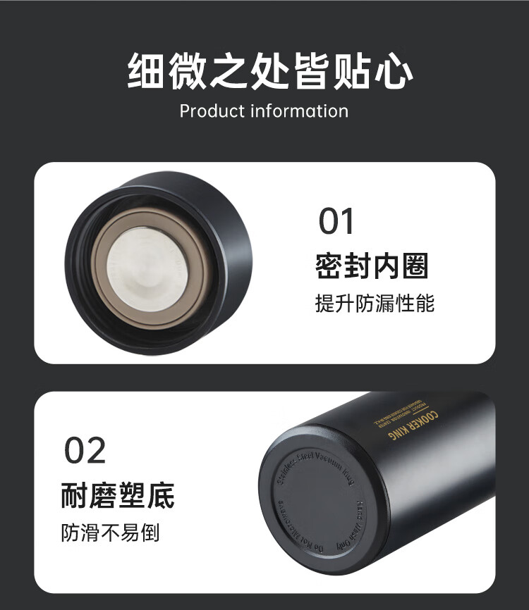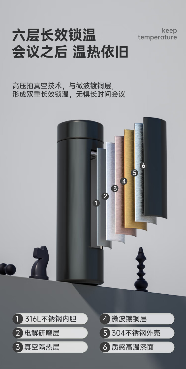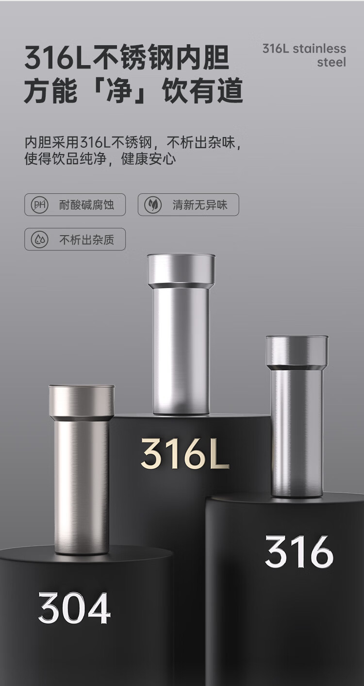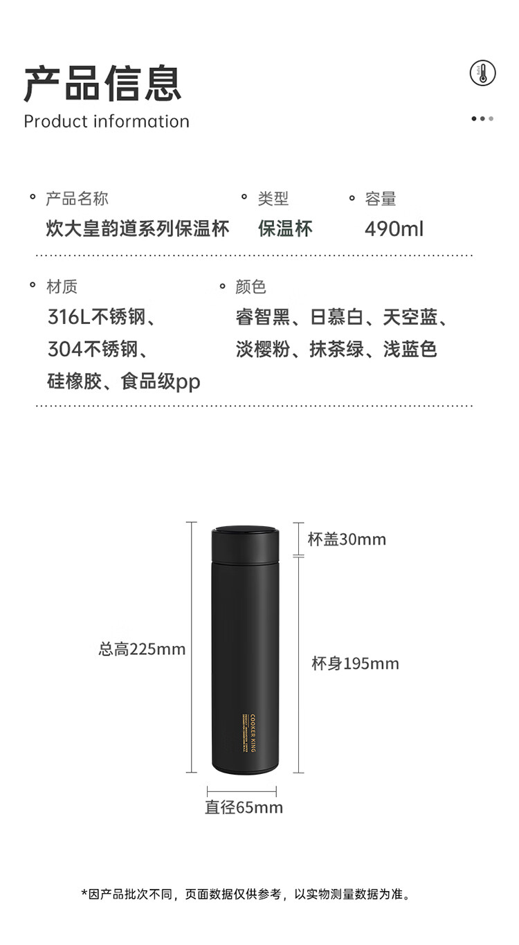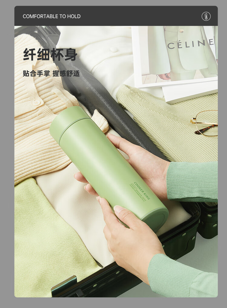 炊大皇保温杯316L医用级不锈钢茶水分离商务便携智能保温杯浅蓝色 490ml