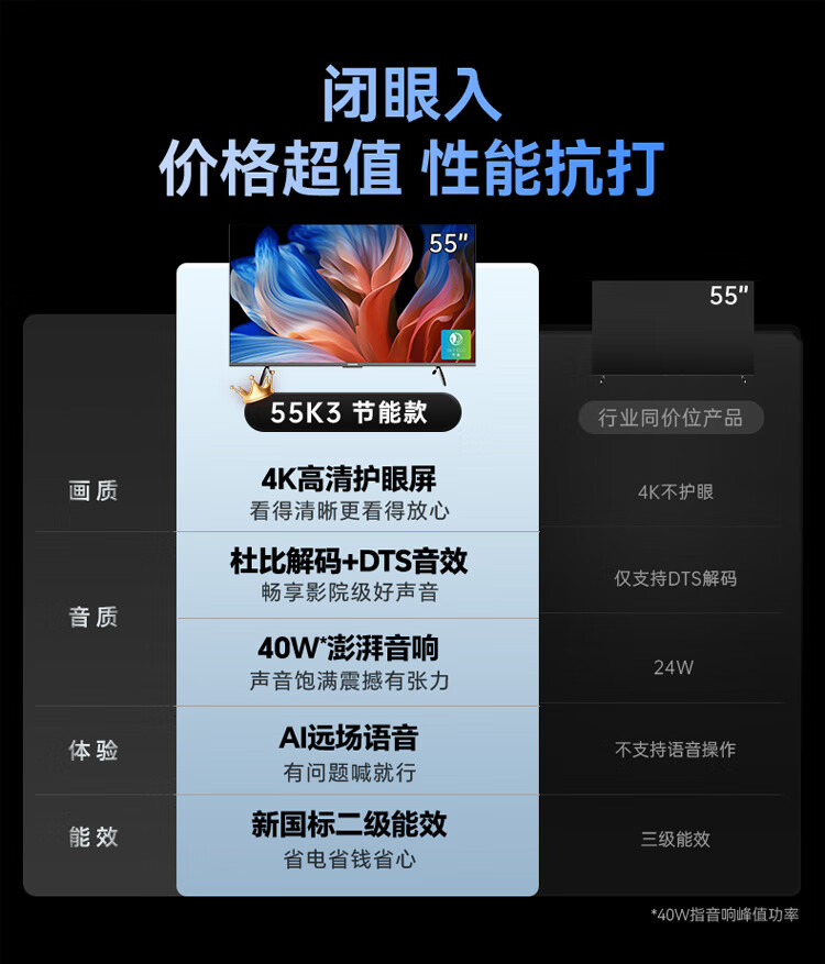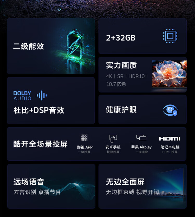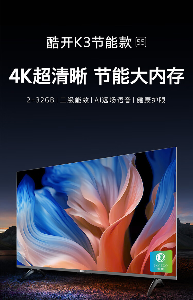 酷开创维55K3节能款 电视55英寸 智慧屏 2+32GB 远场语音tv 以旧换新补贴卧室智能平板电视机55P3DGT