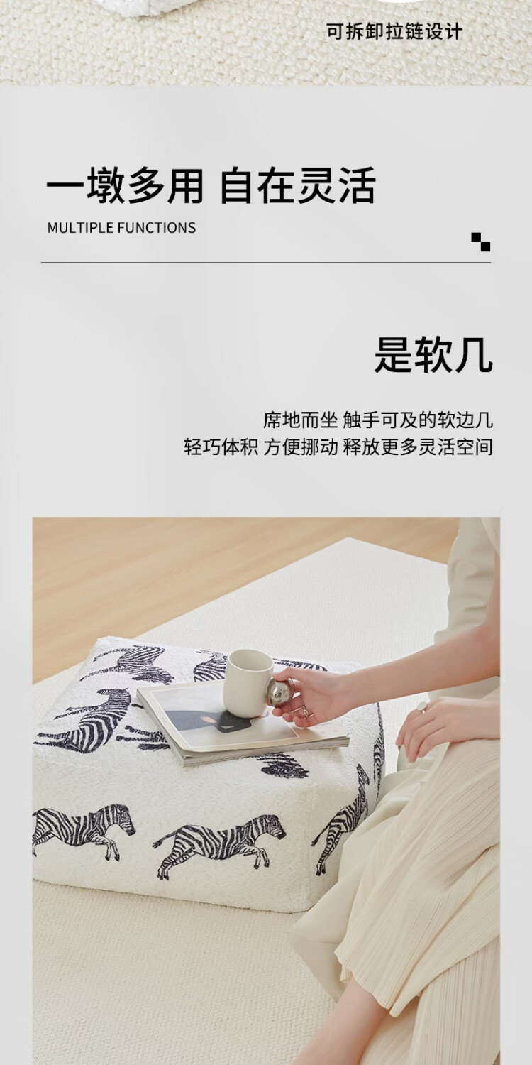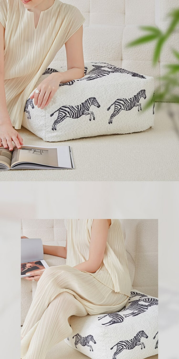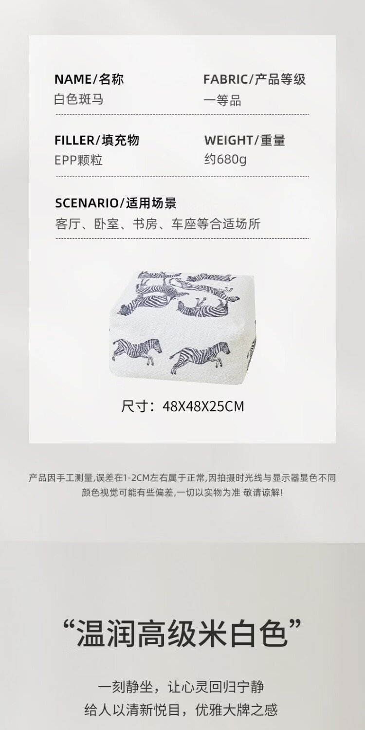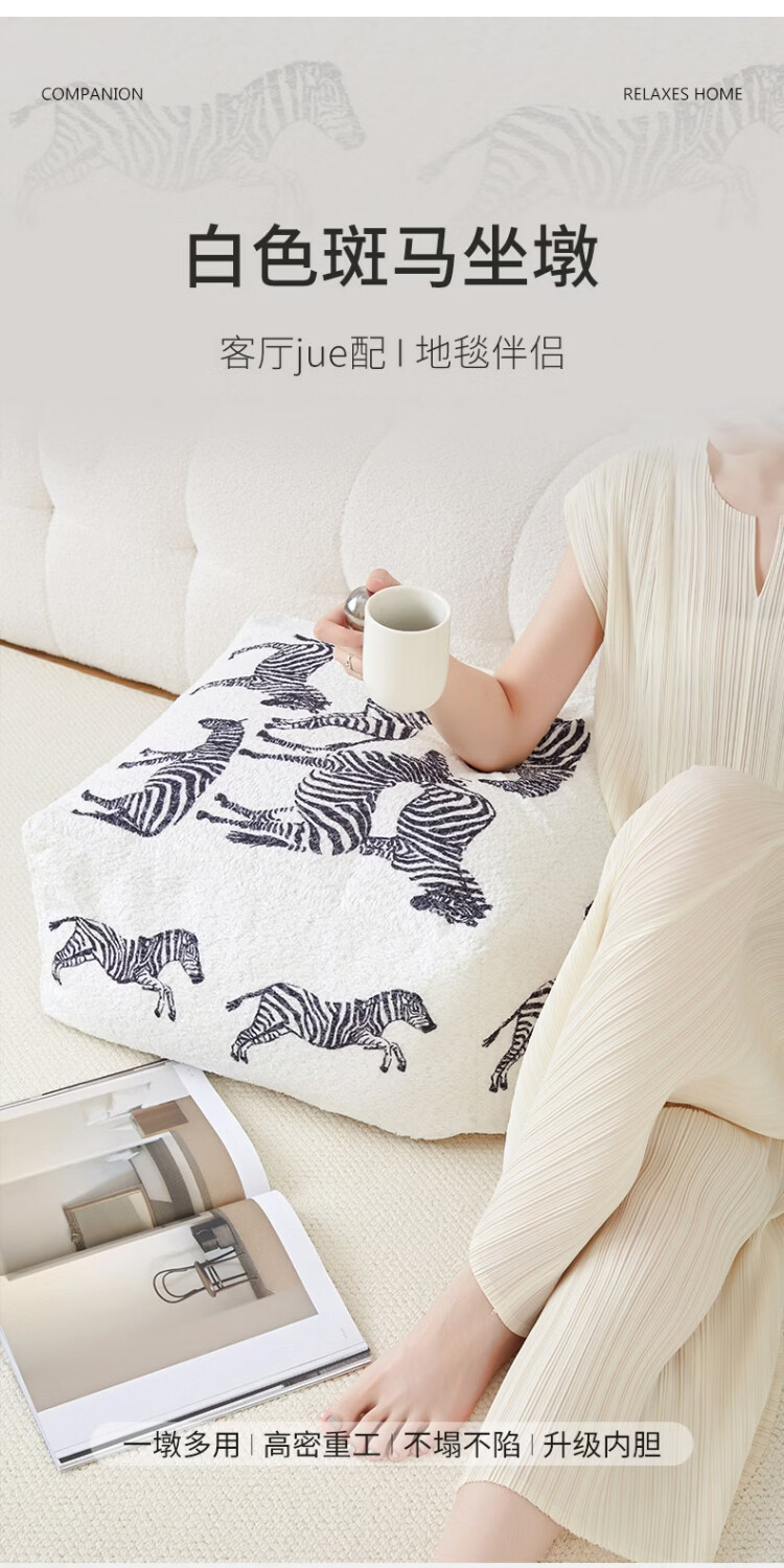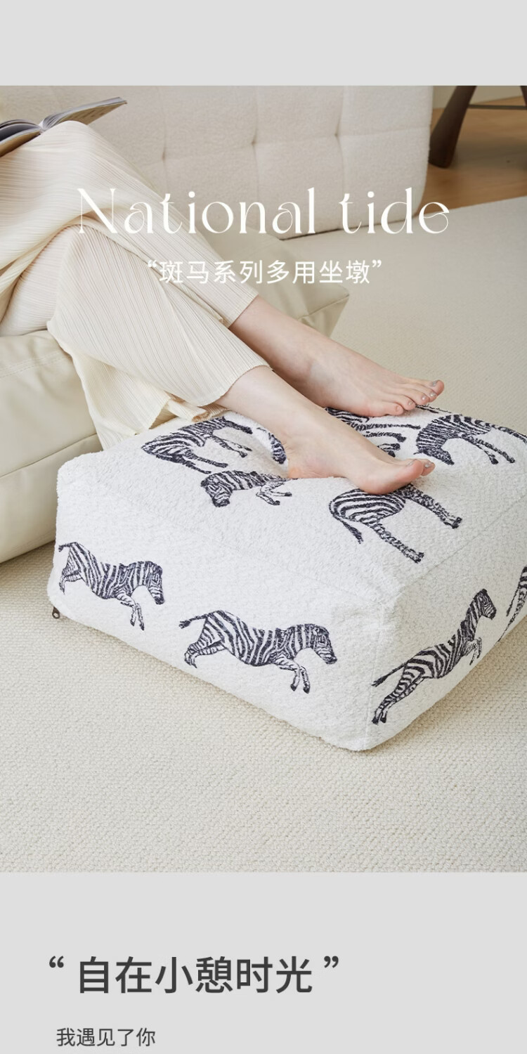 京华中古坐墩懒人沙发蒲团客厅地毯坐垫简约黑白斑马条纹脚踏可拆洗 白色斑马 48*48*25cm