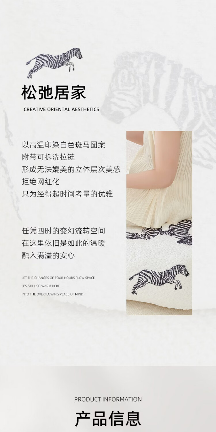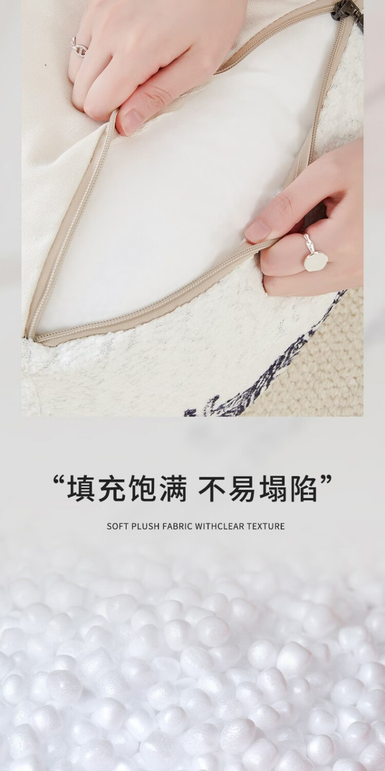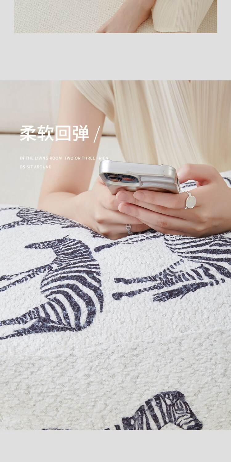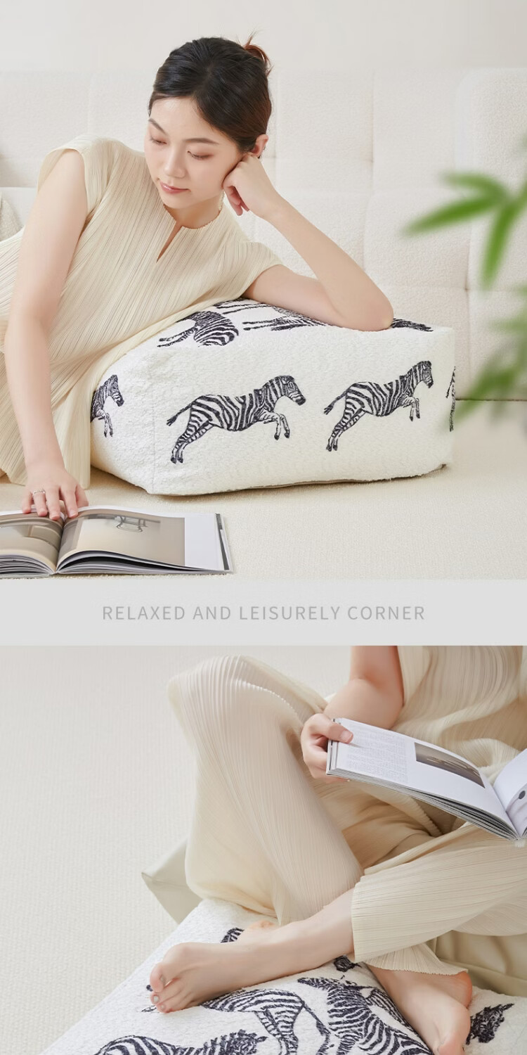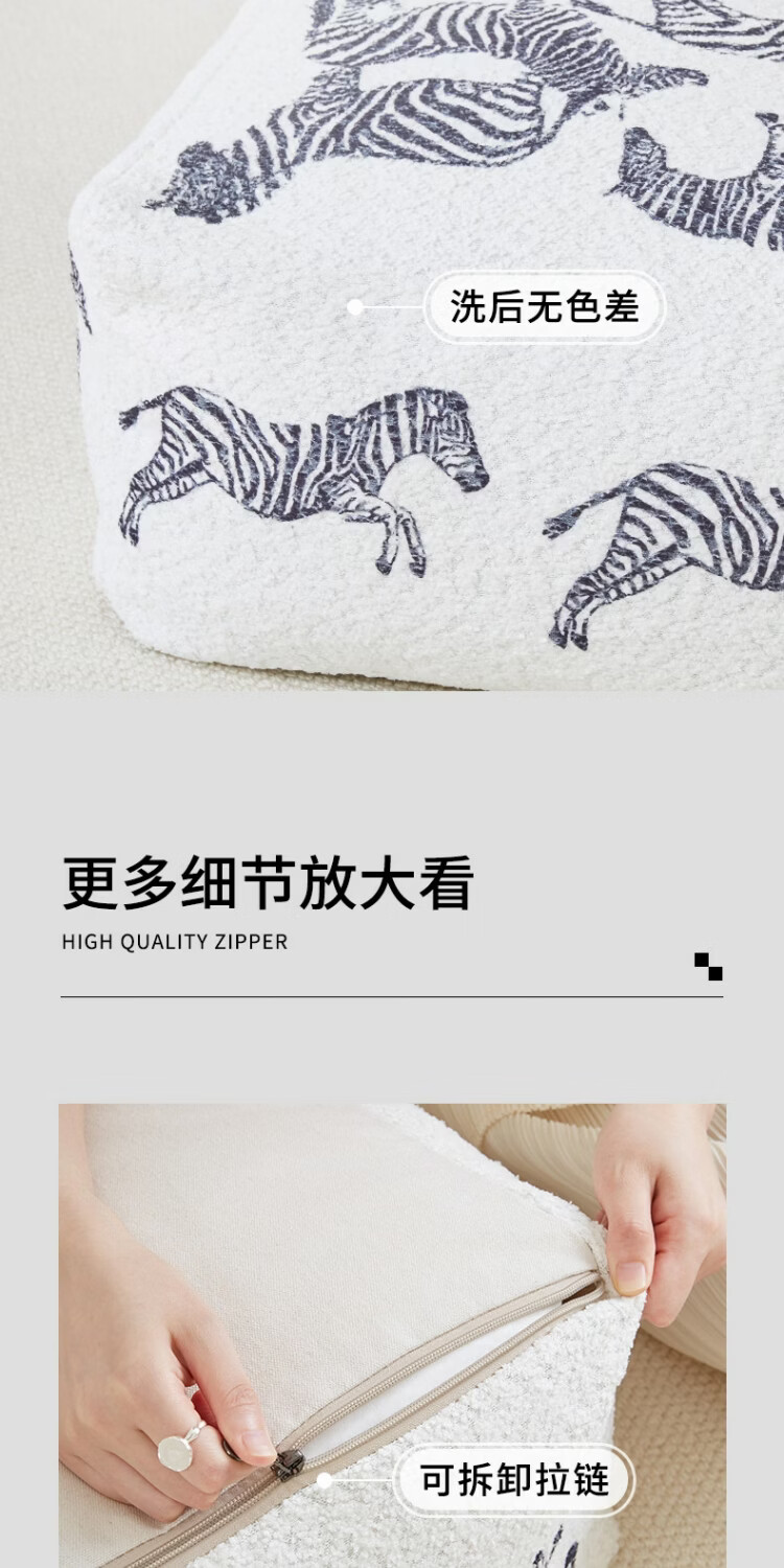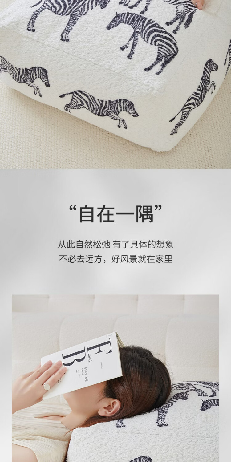 京华中古坐墩懒人沙发蒲团客厅地毯坐垫简约黑白斑马条纹脚踏可拆洗 白色斑马 48*48*25cm