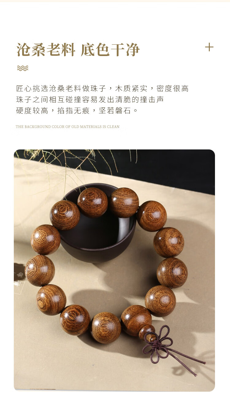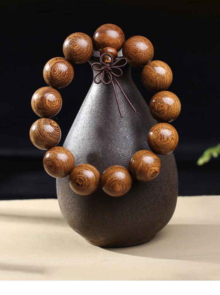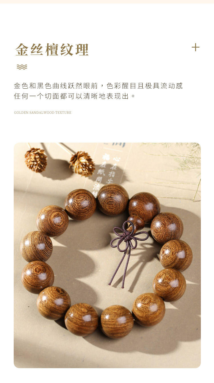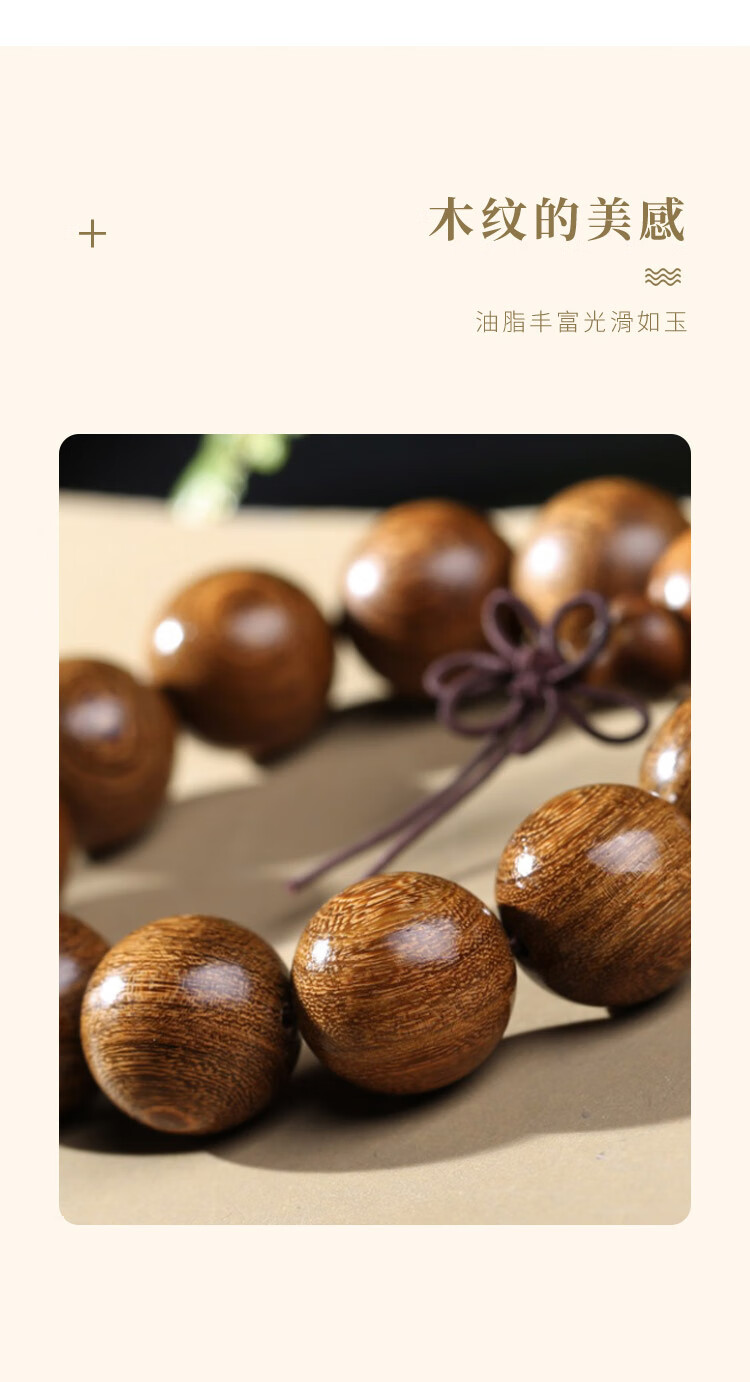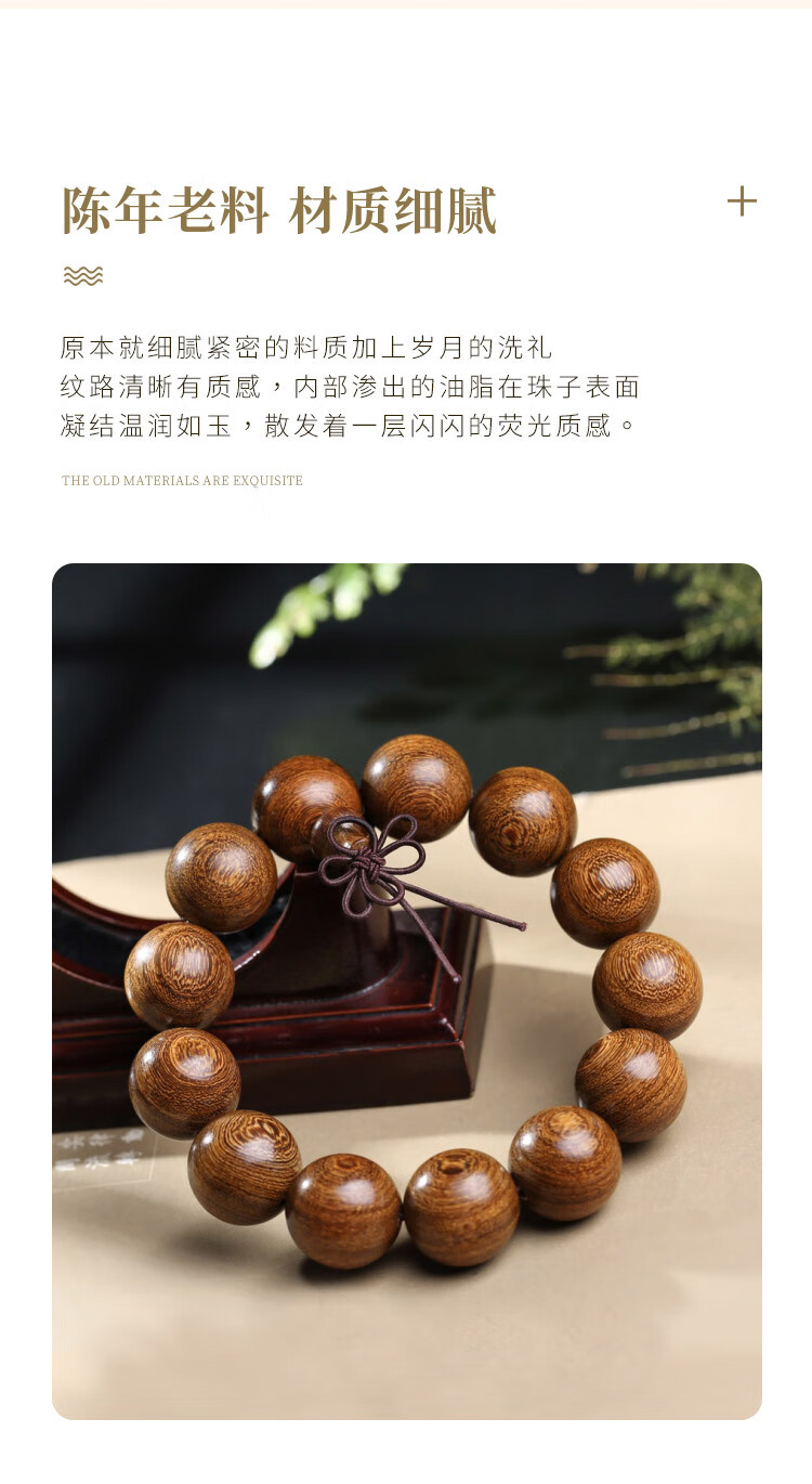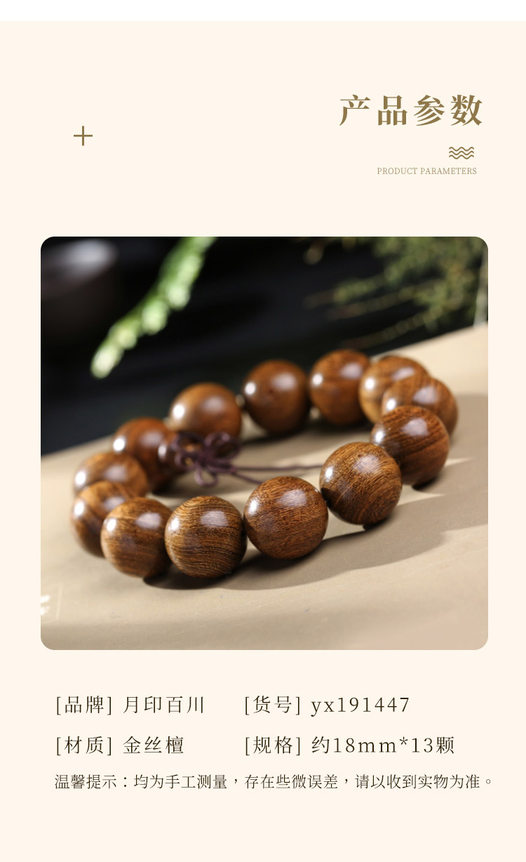 月印百川 【新年礼物】 老料金丝檀佛珠手串男士高密度檀香木珠手链约18mm