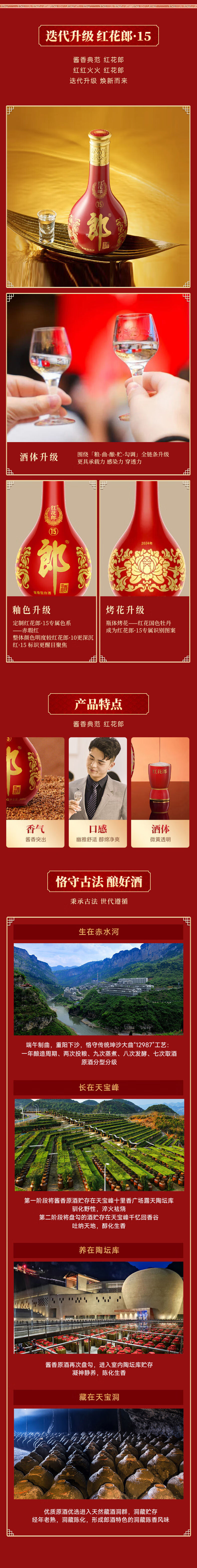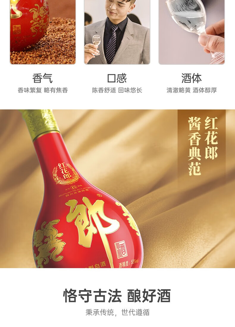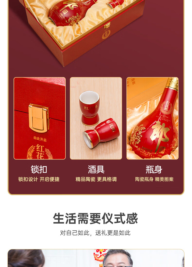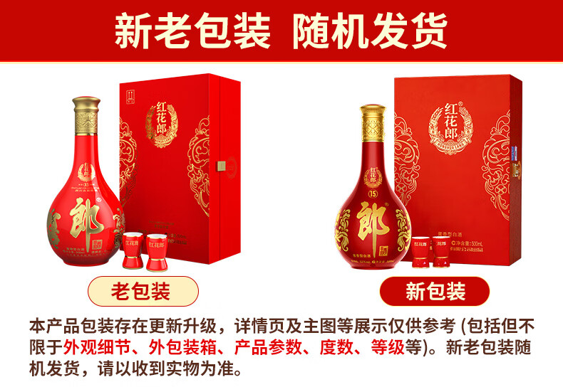 郎酒红花郎15 酱香型白酒 53度 500ml*1瓶*2盒 礼盒装 年货礼盒