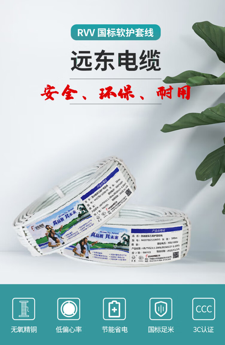 远东电缆 RVV6*0.5平方国标软护套线铜芯电源线 白色 100米【有货期】 白色 100米