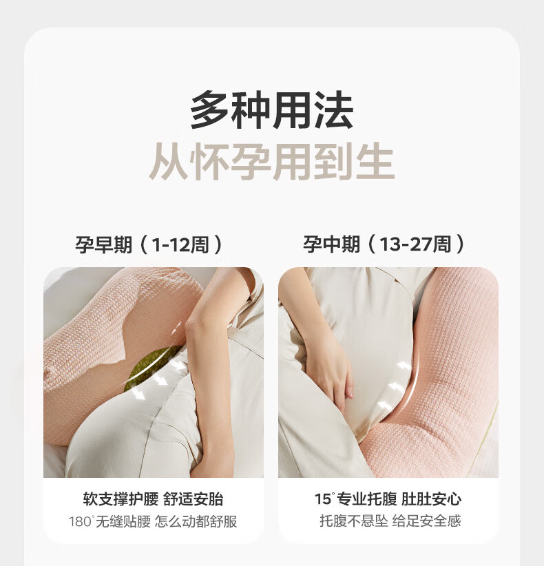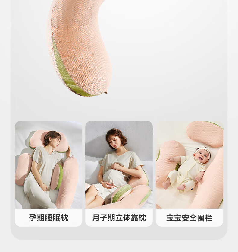 babycare孕妇枕护腰侧睡U型靠枕芯 多功能托腹抱枕 暖珊瑚