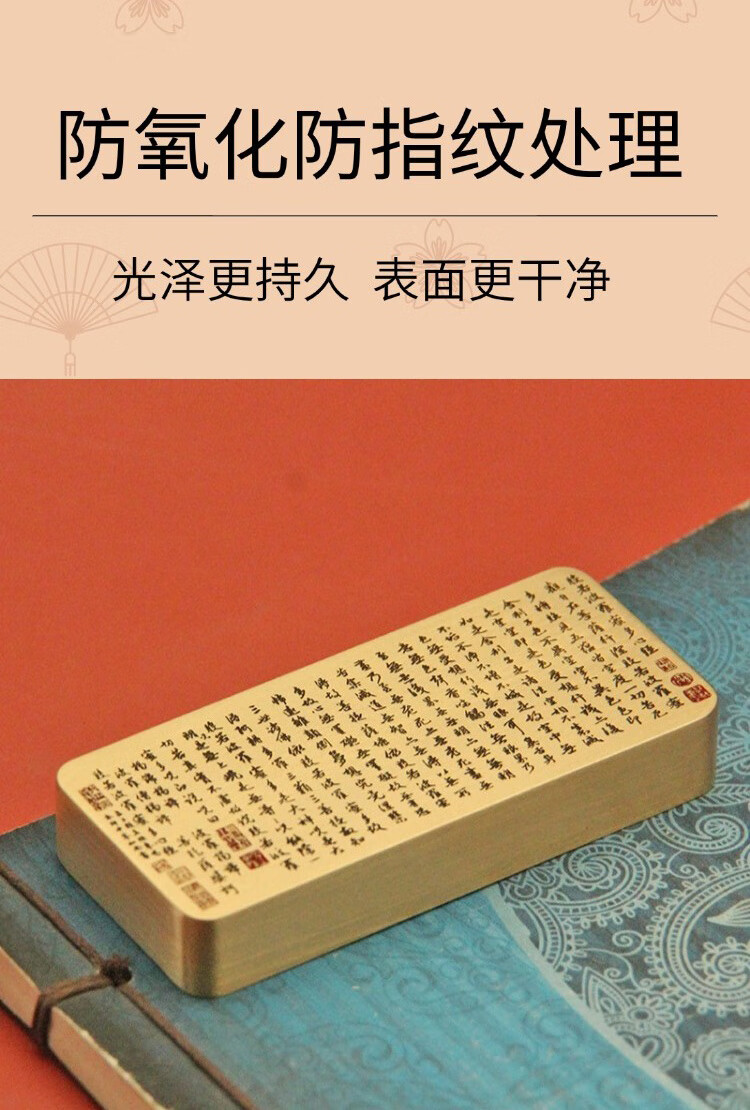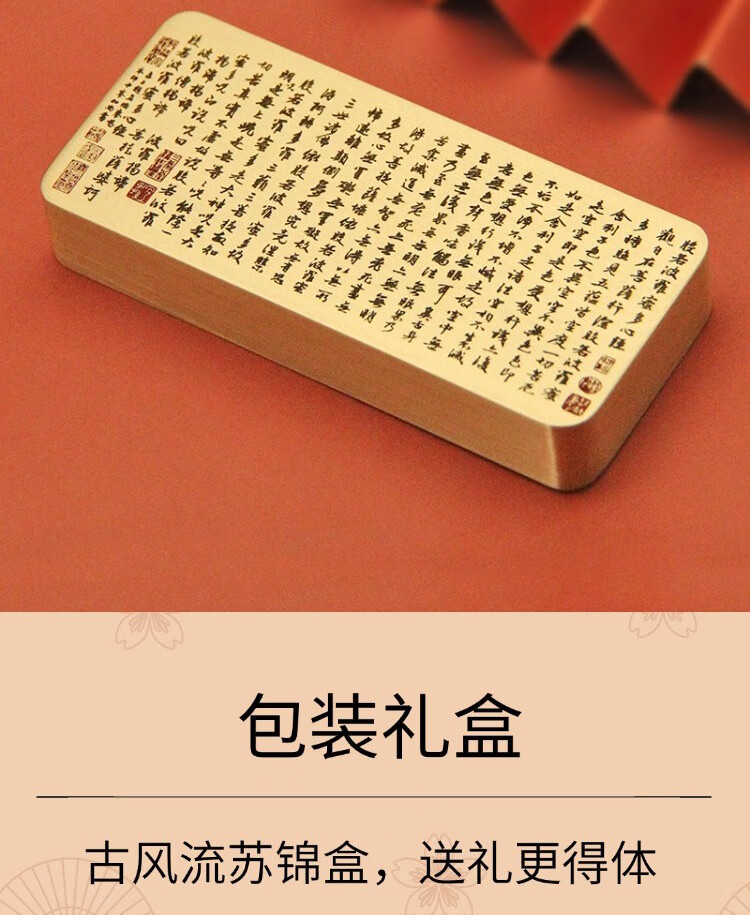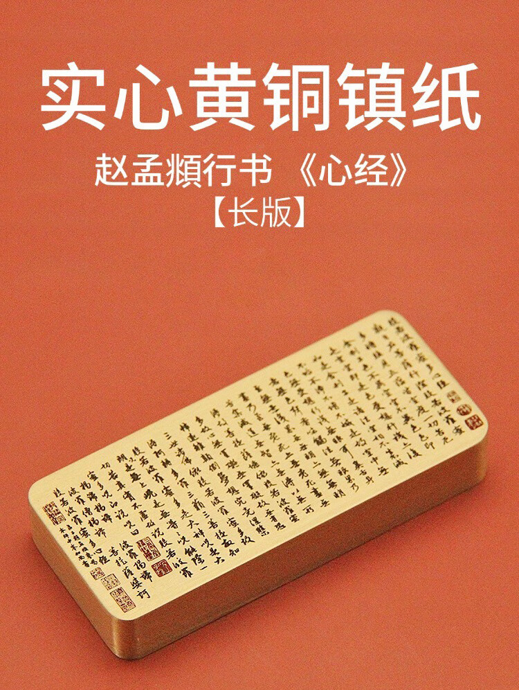 维班 赵孟頫行书心经黄铜镇纸书法国画压纸文房四宝实心金属镇尺 【长版】赵孟頫行书心经黄铜镇纸15X40X90mm