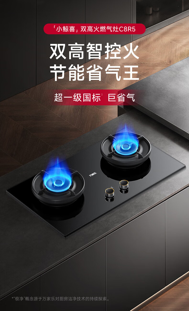 万家乐燃气灶【小鲸喜C8R5】台式嵌入式 5.2kw大火力72%高热效率灶具换新免扩孔嵌入式灶烟灶联动天然气