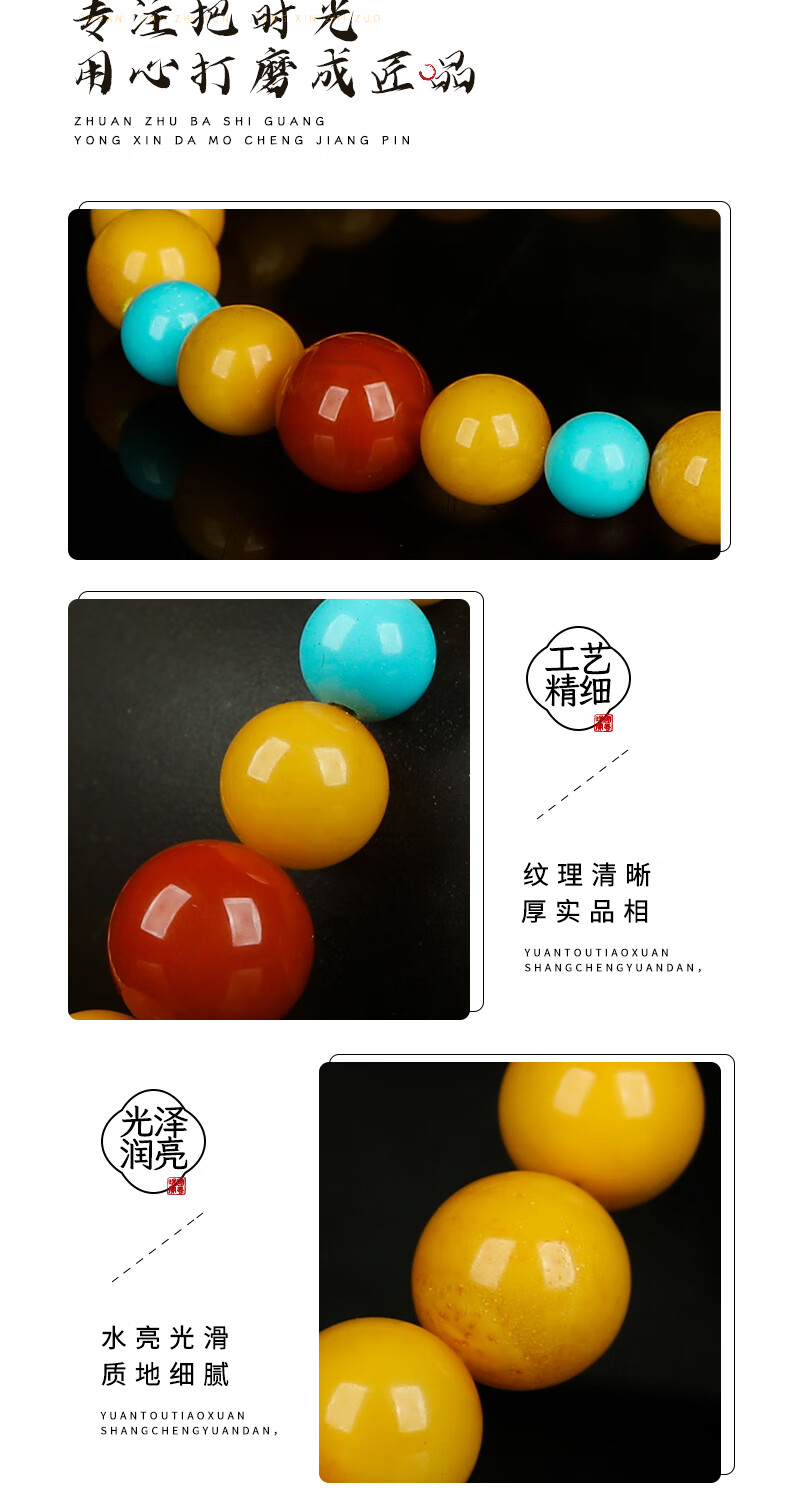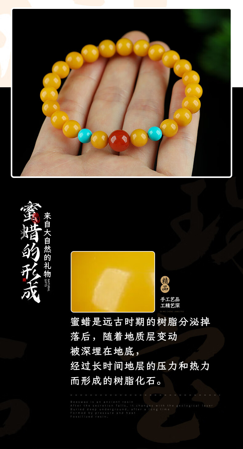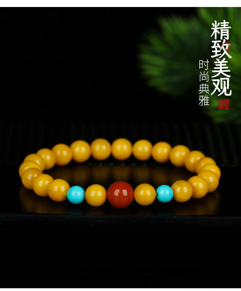 欧采妮(OUCERNY)蜜蜡手串天然琥珀原石满蜜鸡油黄老蜜蜡圆珠佛珠南红多宝diy手链 天然蜜蜡 一物一证