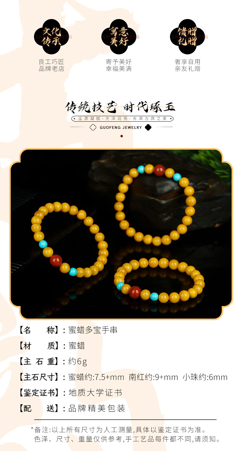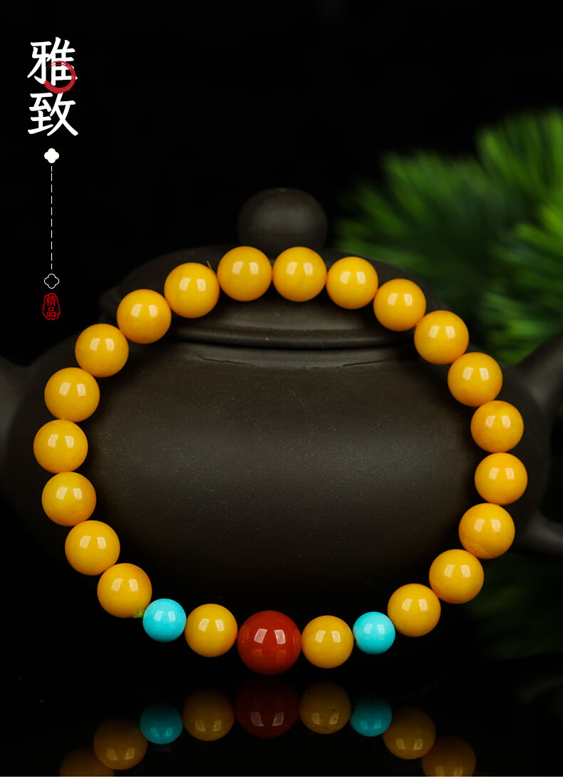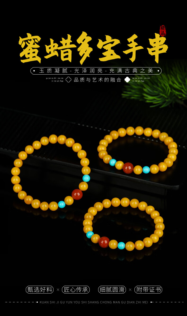 欧采妮(OUCERNY)蜜蜡手串天然琥珀原石满蜜鸡油黄老蜜蜡圆珠佛珠南红多宝diy手链 天然蜜蜡 一物一证