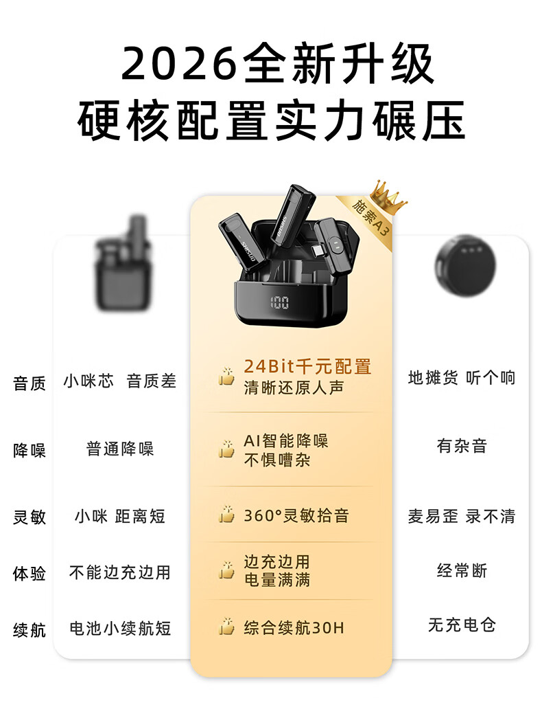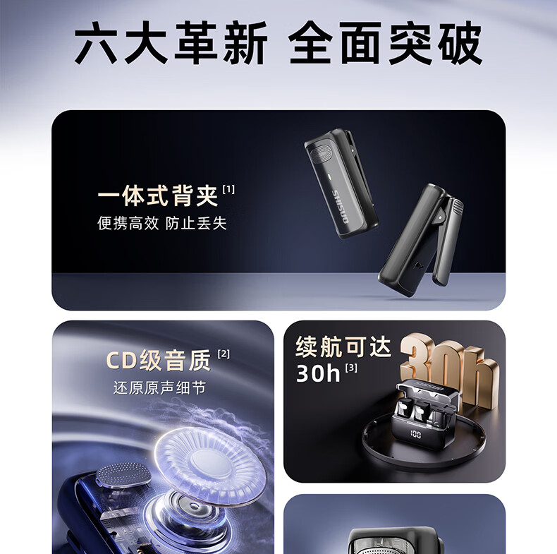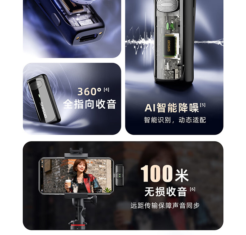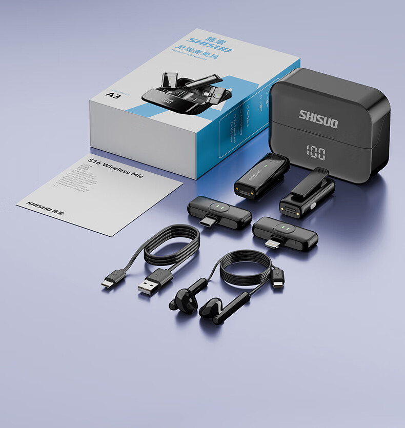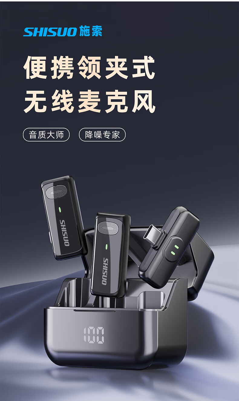 施索(SHISUO)领夹式麦克风手机直播拍视频volg户外抖音K歌无线降噪收音麦主播口播专用录音设备电脑通用一拖二 双麦+充电仓【苹果+安卓+电脑】通用款 【官方旗舰,正品保证】