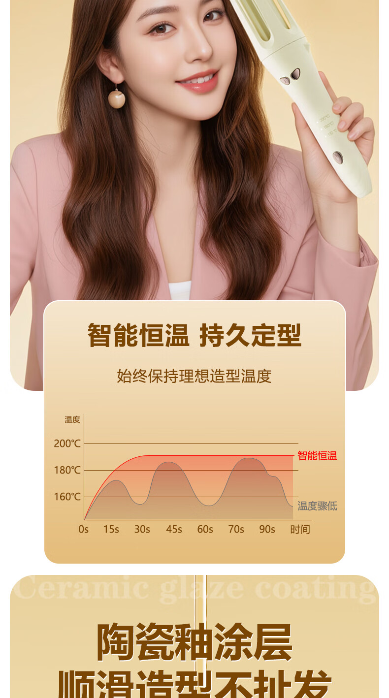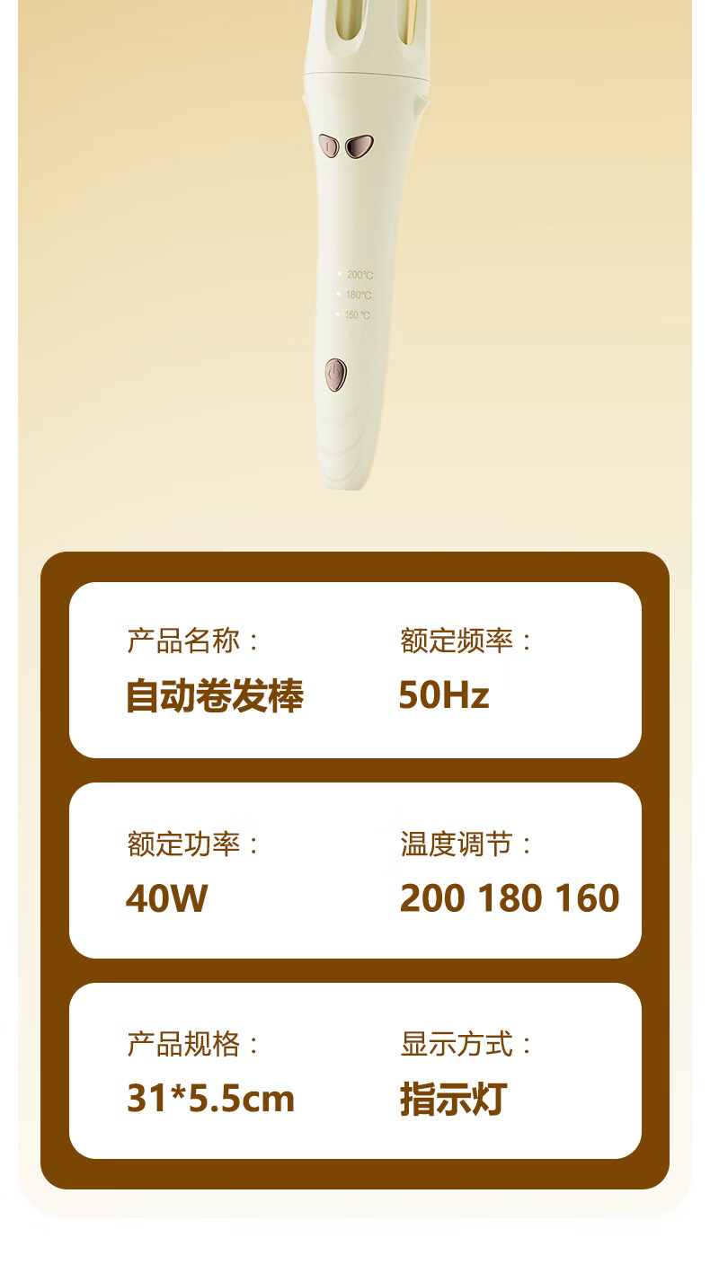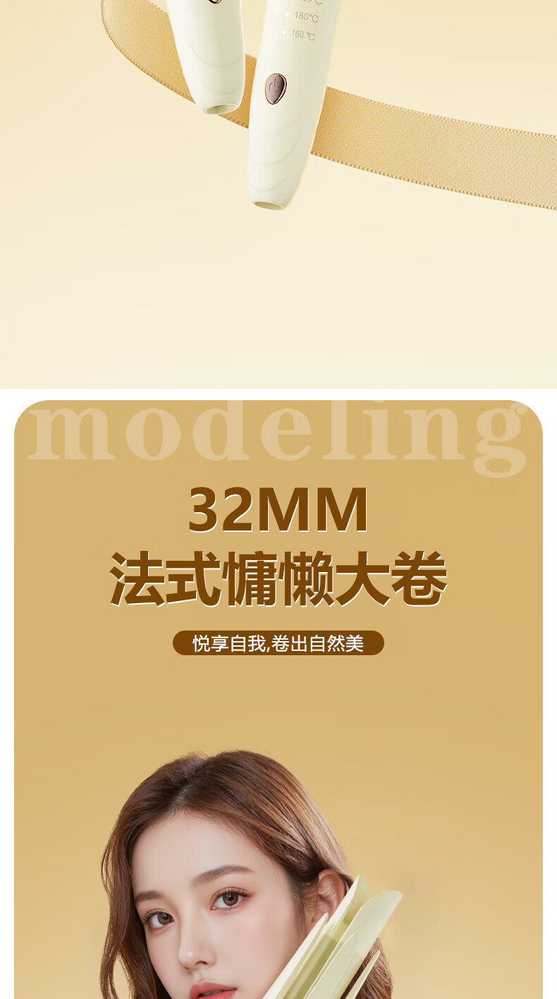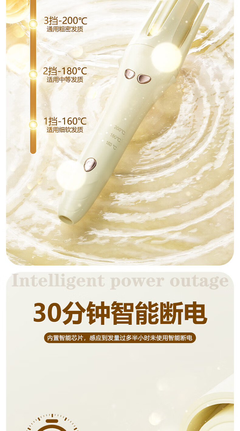 茉心卷发棒全自动卷32mm负离子持久定型造型神器懒人烫卷发棒大波浪定型不伤发美发棒 至尊款米色【负离子+防爆芯片+3档屏显+智能断电】