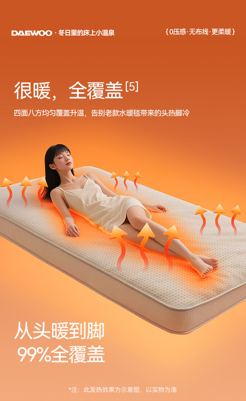 大宇(DAEWOO)水暖电热毯水暖毯水循环电褥子水热毯防水防漏电单双人全套不上火 2025款【1.8*2.0米床垫】