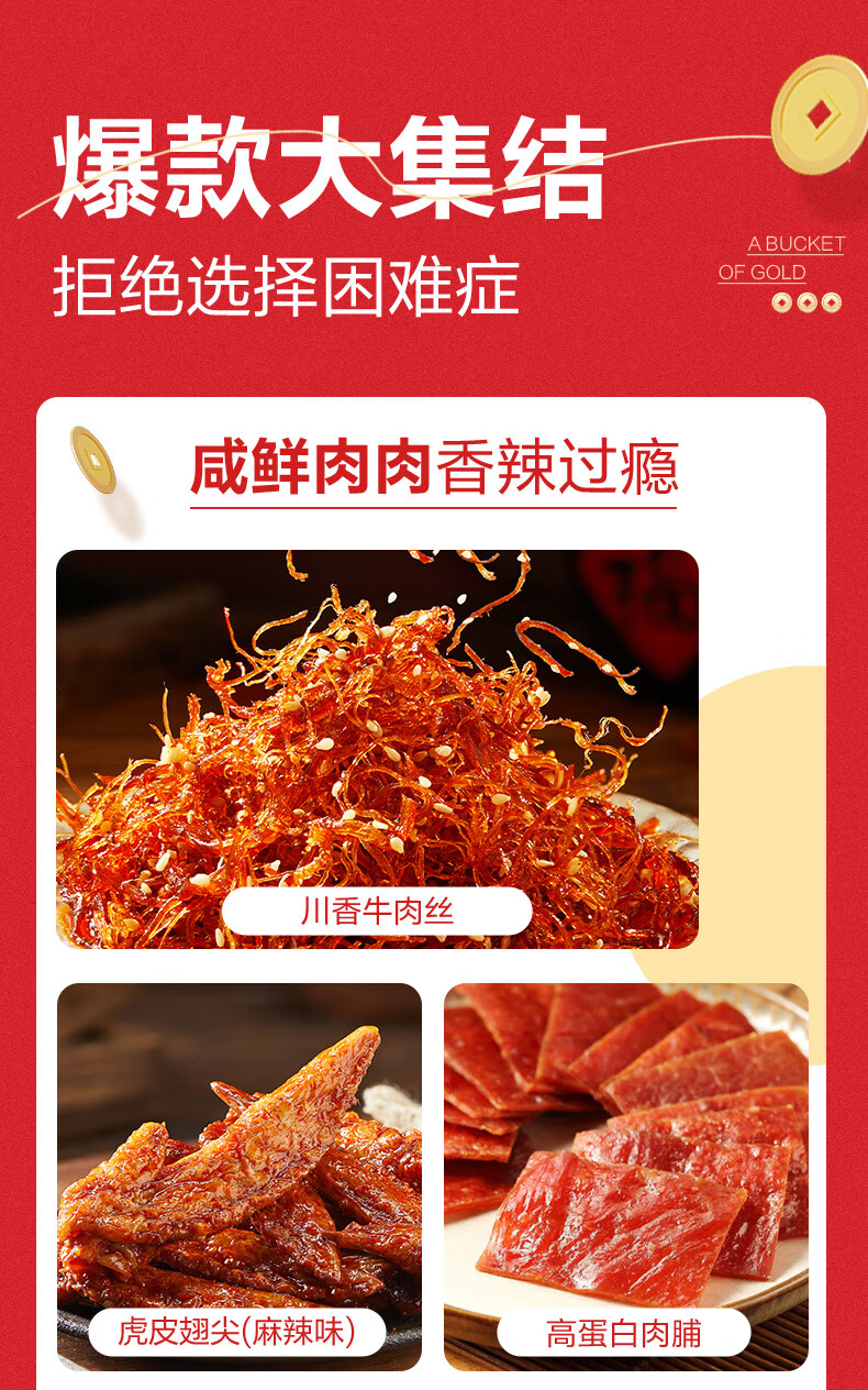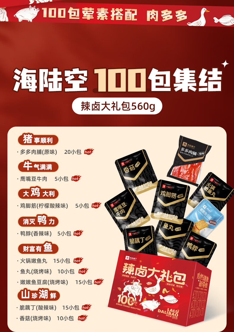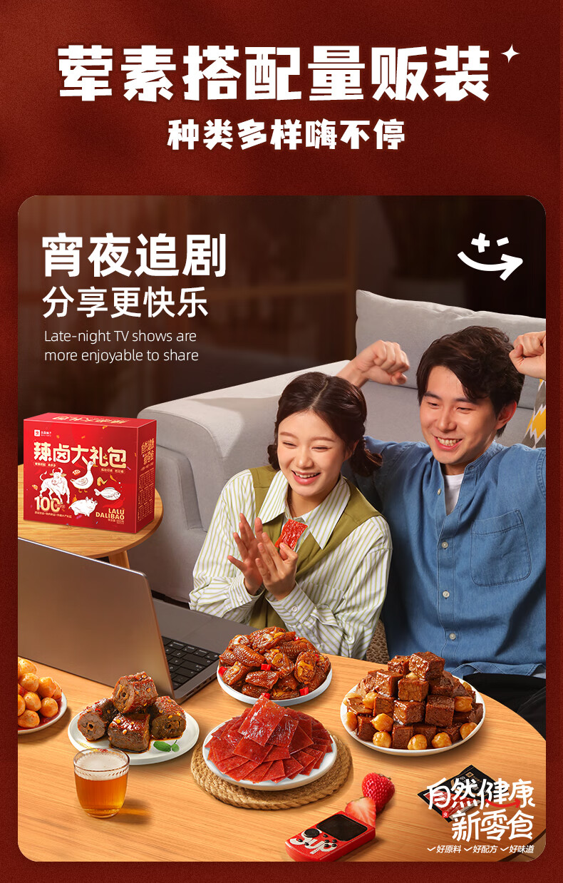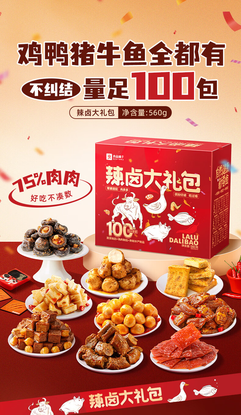 良品铺子零食大礼包送女友生日礼物休闲零食礼包整箱坚果肉干肉脯礼盒团购 【110包|爽吃过瘾】辣卤派对688g x1袋