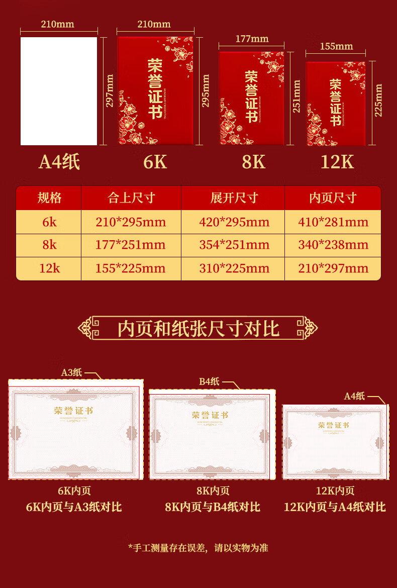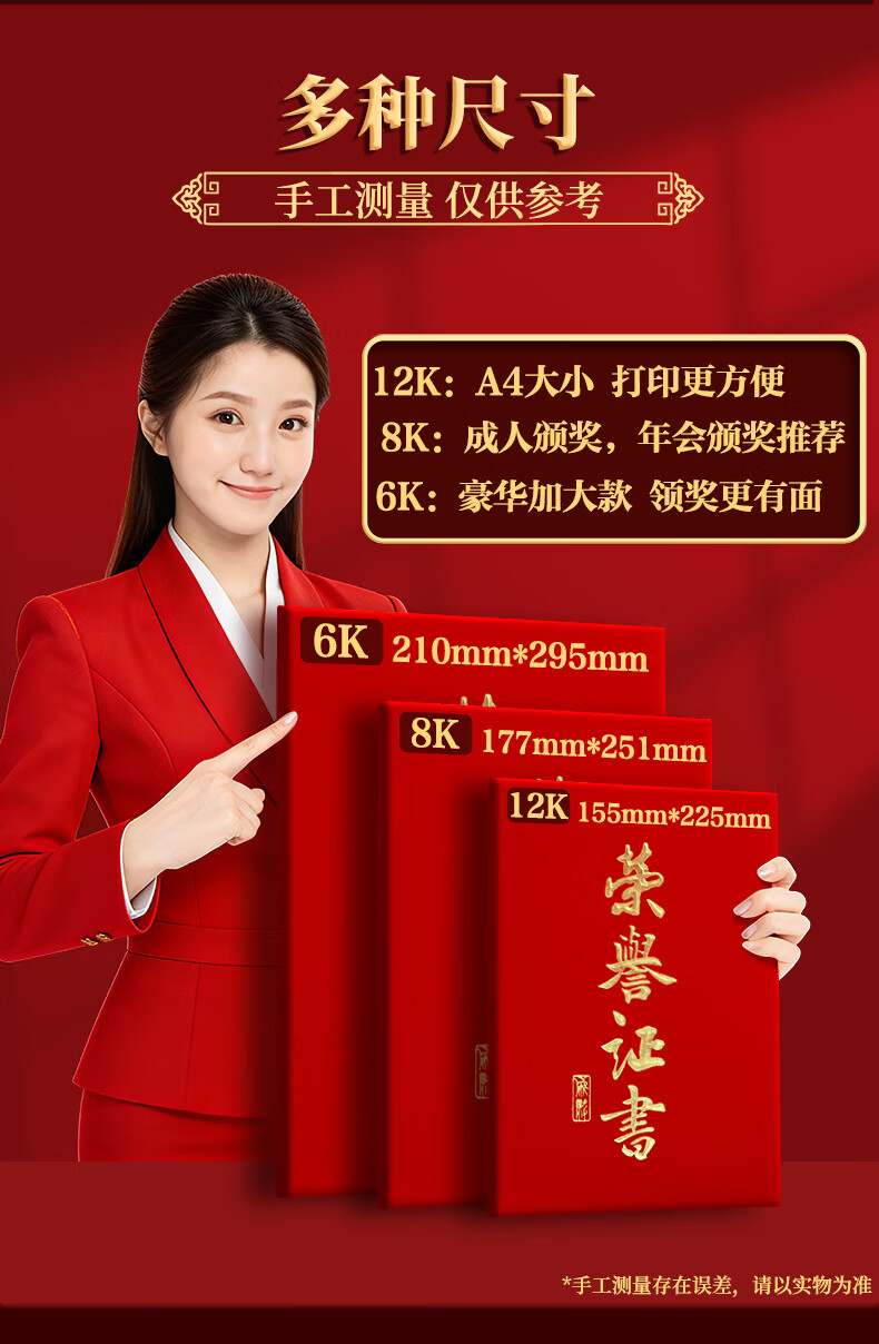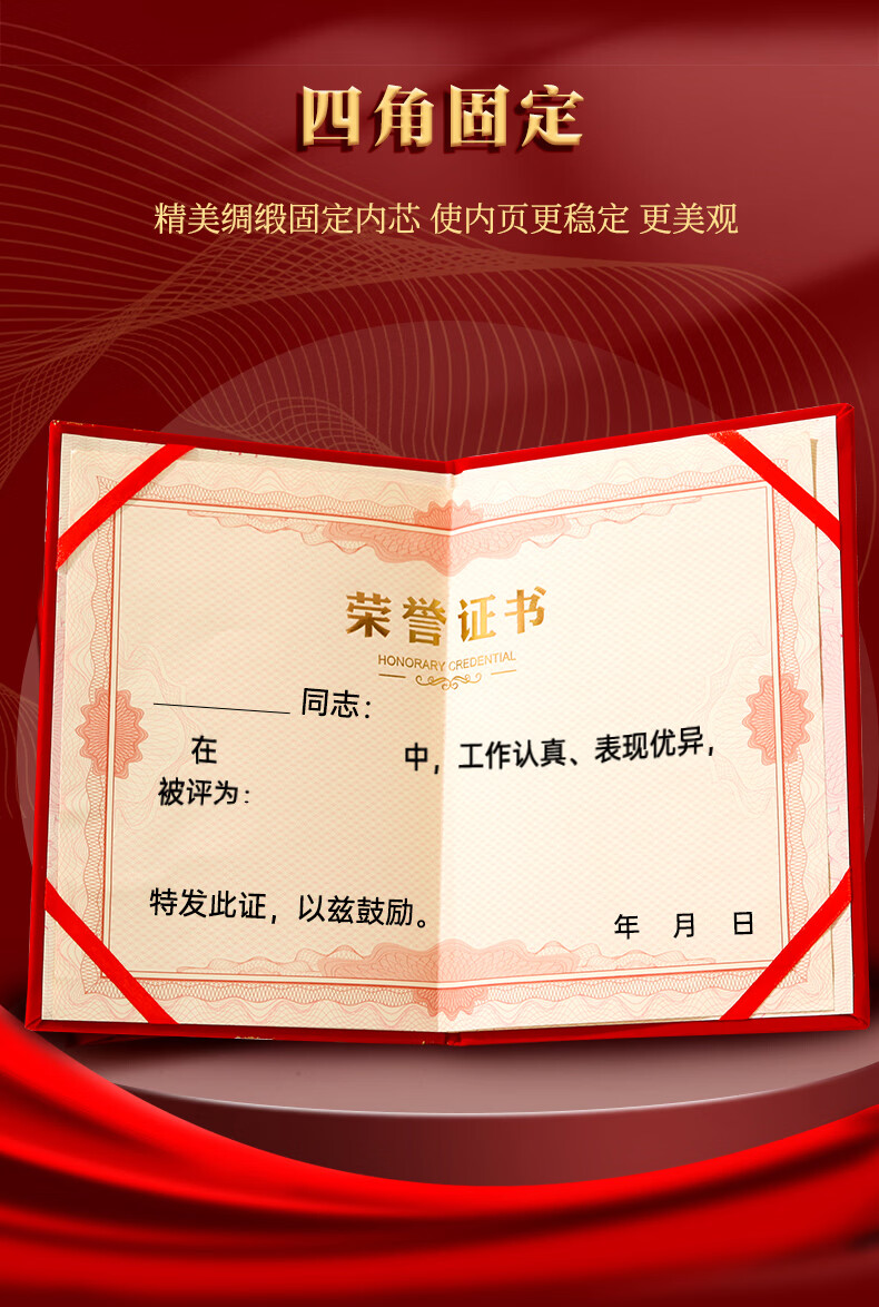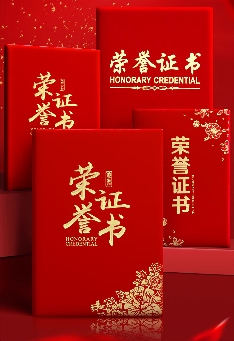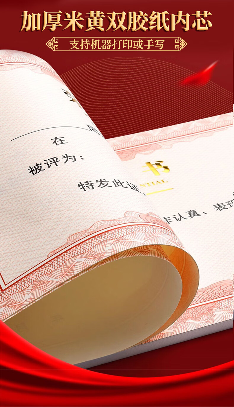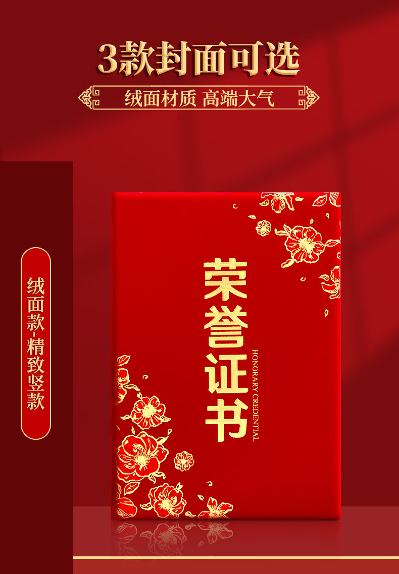少年伴荣誉证书高档外壳6k/8k/12k绒面烫金获奖保护套全空白奖状纸培训表彰可打印竖款5本赠12张内芯7203