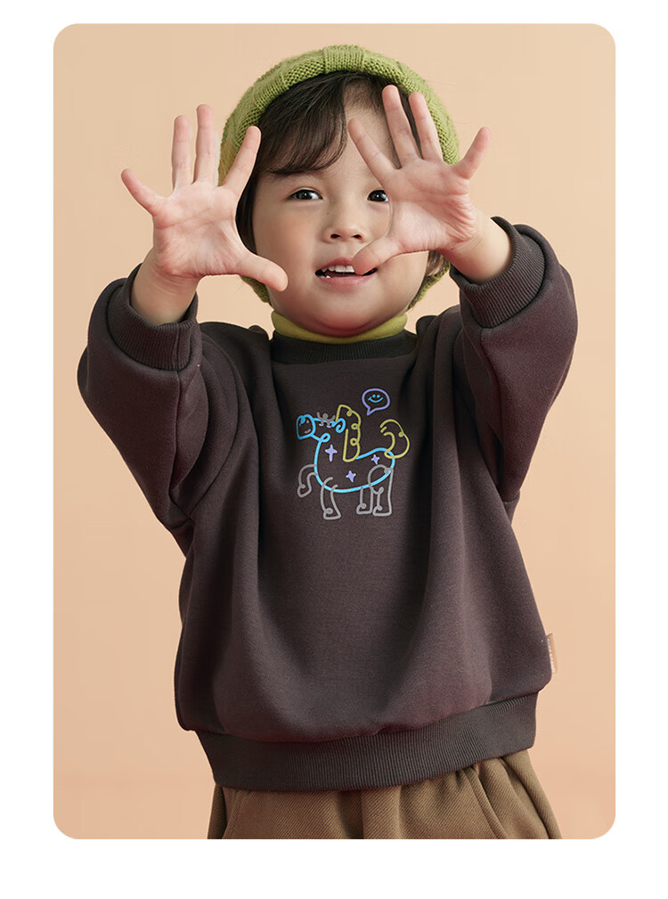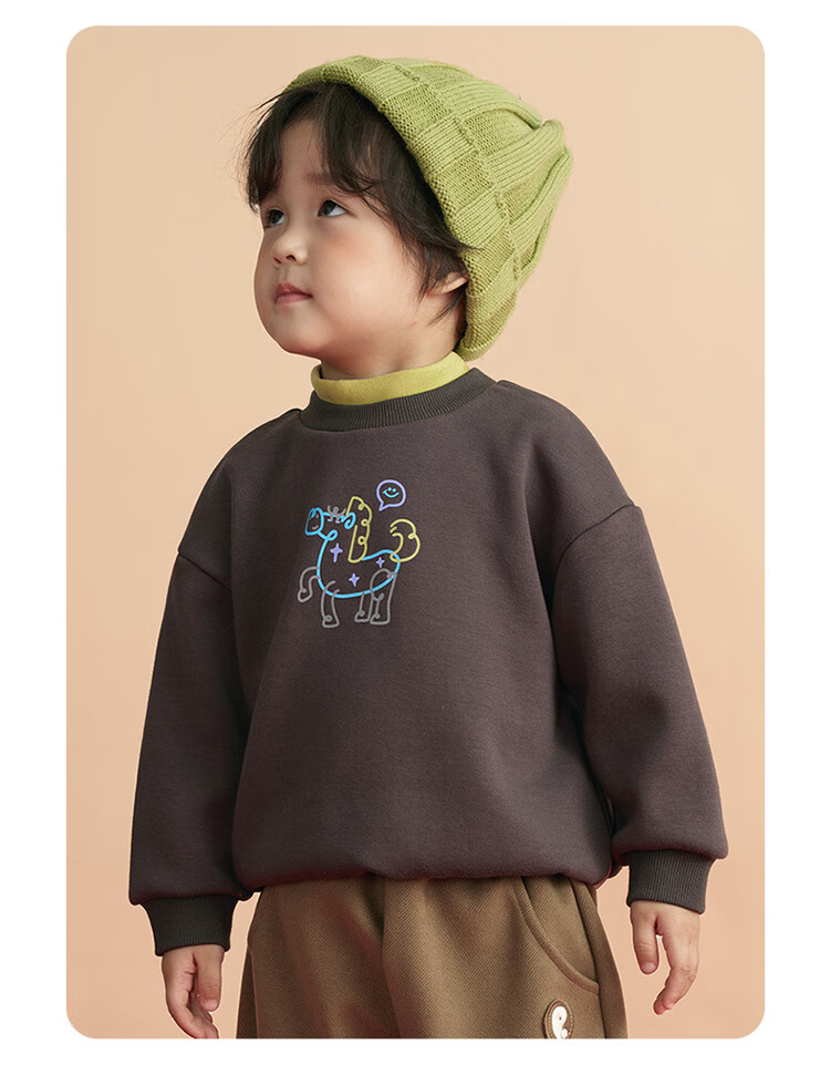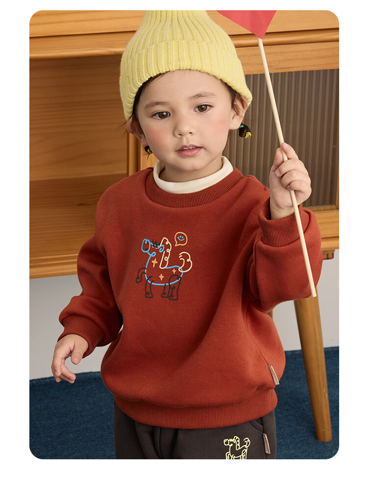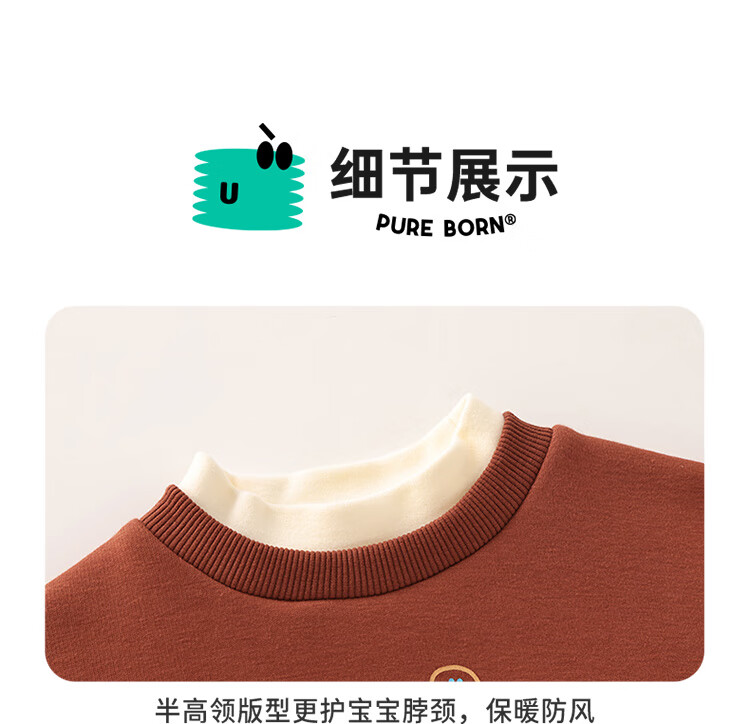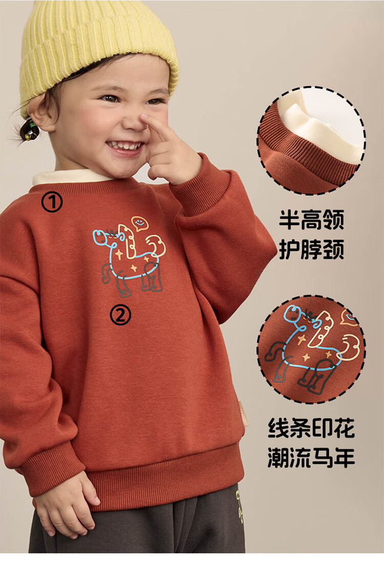 博睿恩【加绒】男女宝宝半高领卫衣2025秋冬款儿童保暖新年拜年上衣 山丘棕 120
