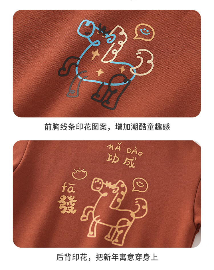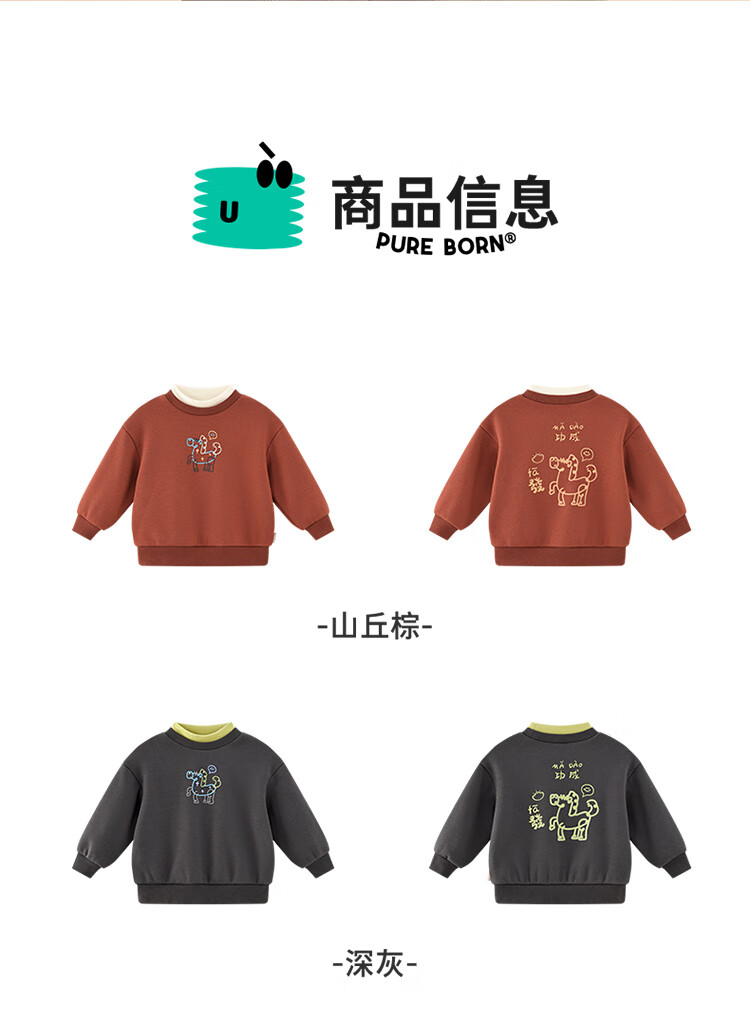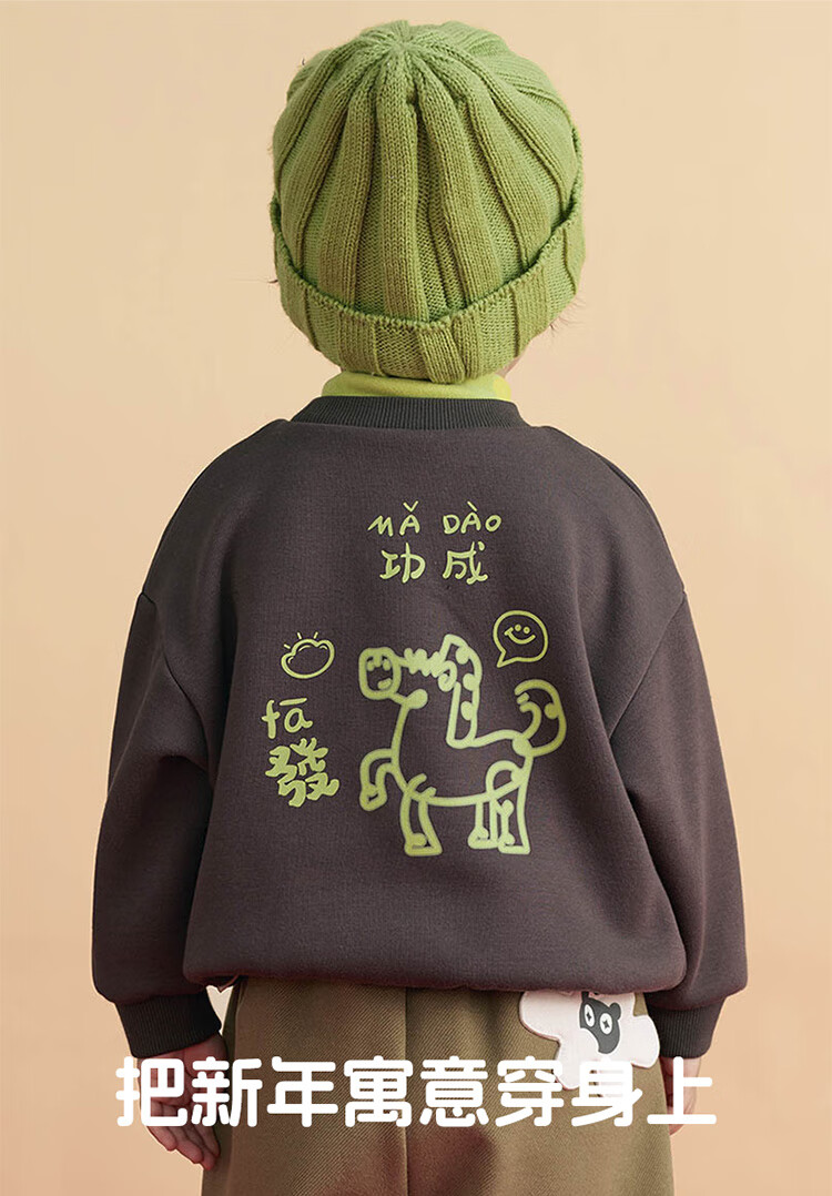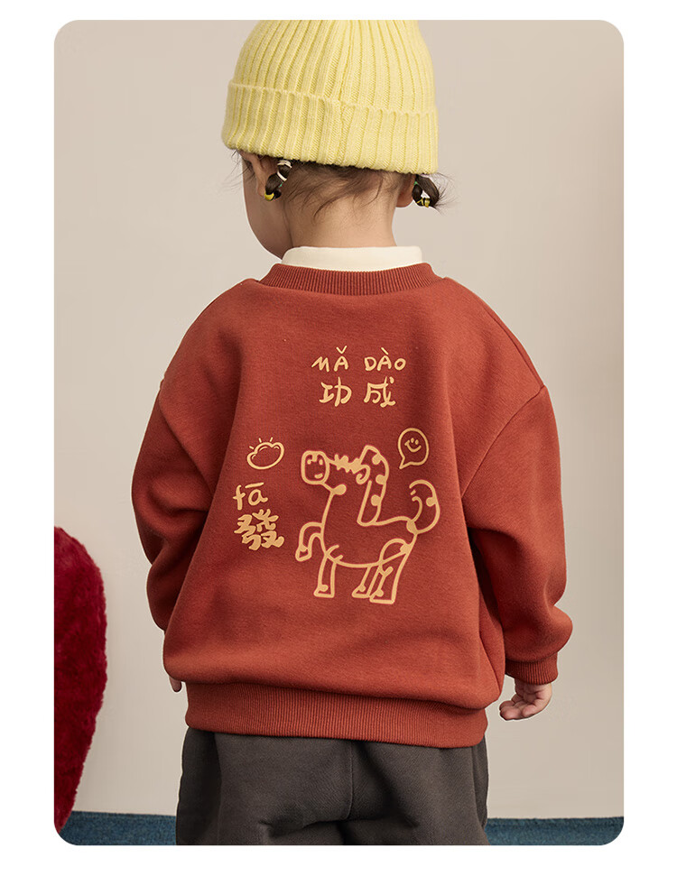 博睿恩【加绒】男女宝宝半高领卫衣2025秋冬款儿童保暖新年拜年上衣 山丘棕 120
