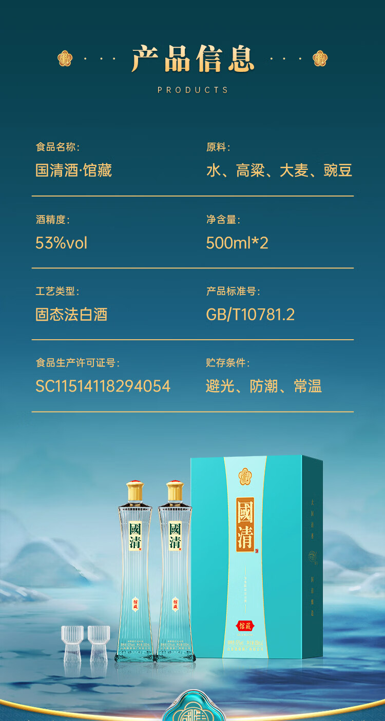 国清酒 53度国清馆藏礼盒装清香型白酒送礼 53度 500mL 1瓶 国清黑金版