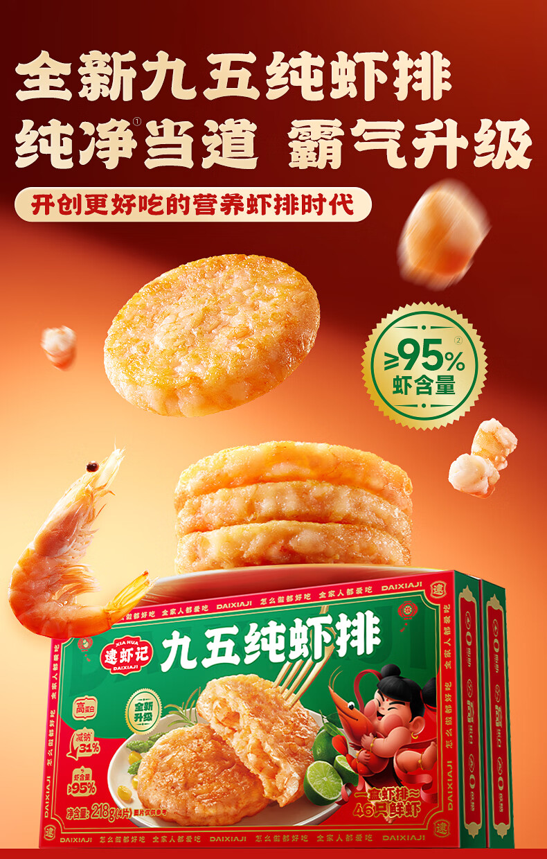 逮虾记【新升级】鲜虾饼218g虾含量95%儿童营养早餐半成品低脂虾排虾滑 【新升级】5盒赠1袋鱼排