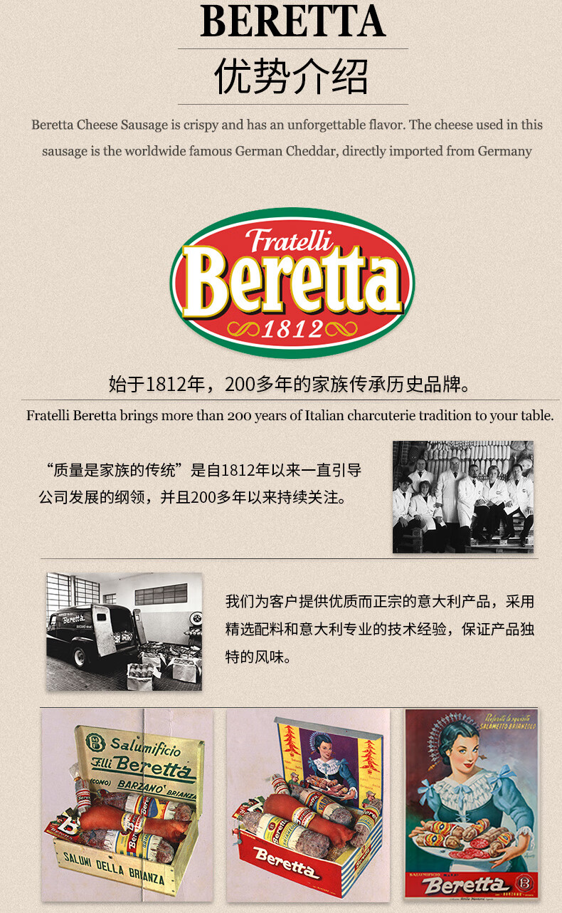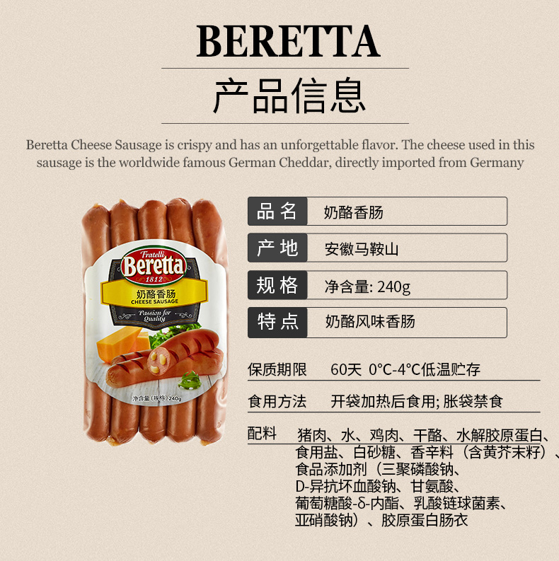 FRATELLI BERETTA奶酪香肠240g 香肠烤肠 德式风味 早餐肠芝士爆浆肉肠 烤肠煎煮 奶酪香肠240g*1袋