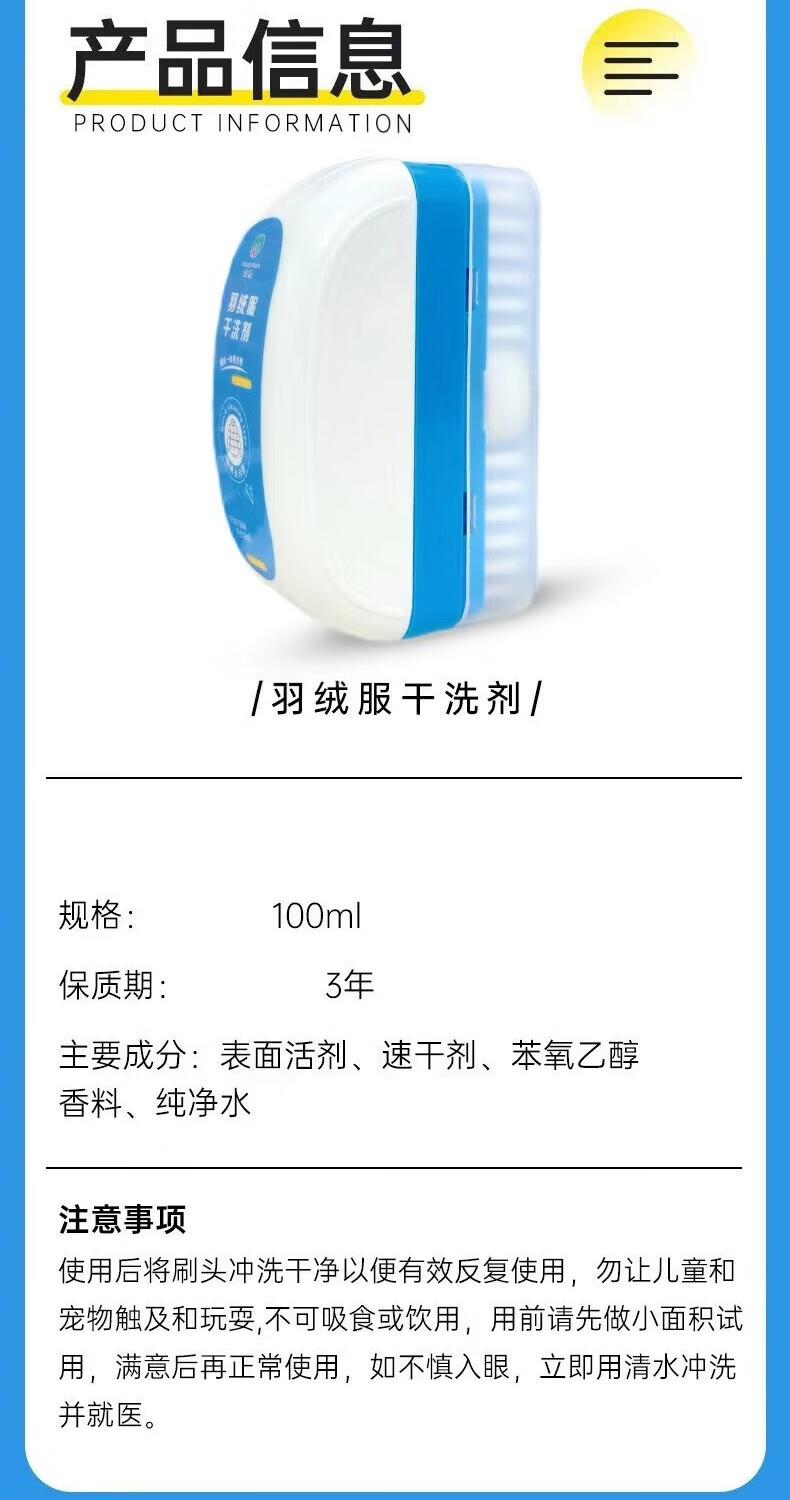山明羽绒服干洗剂自带刷头泡沫免水洗去污清洗剂棉服油渍速干衣服刷 100ml羽绒服干洗剂【2盒】家用