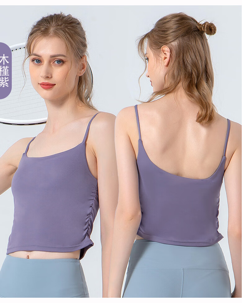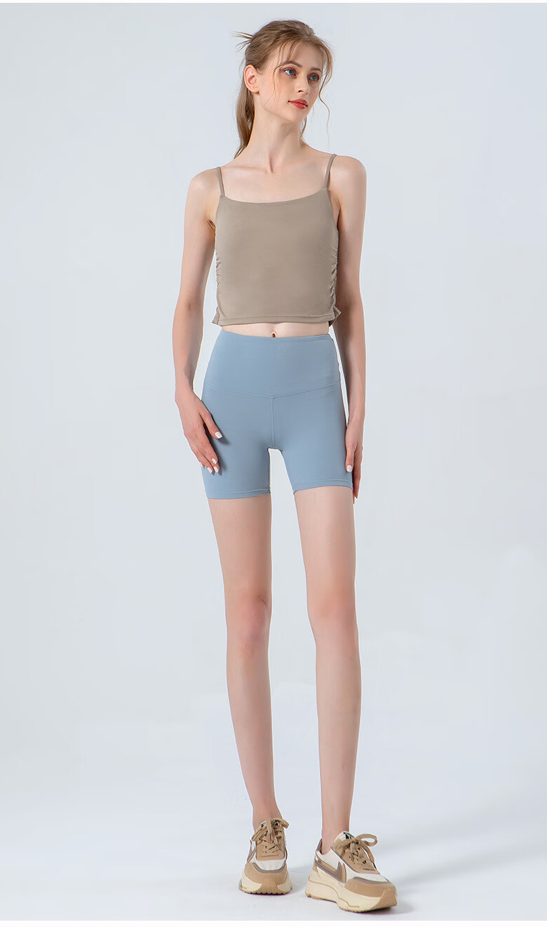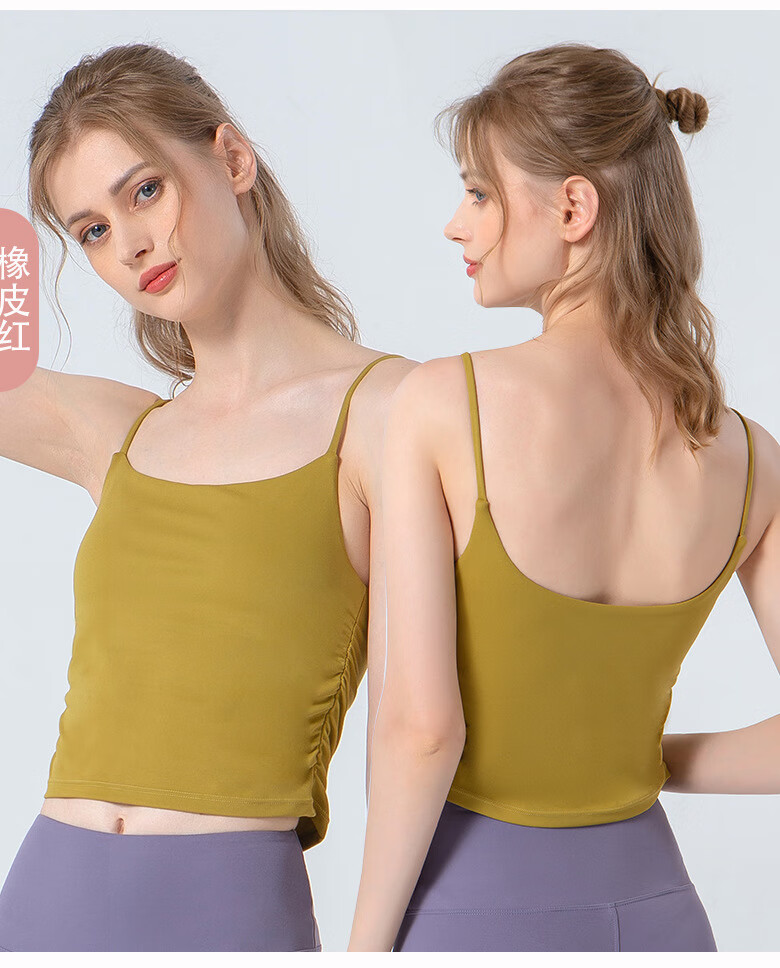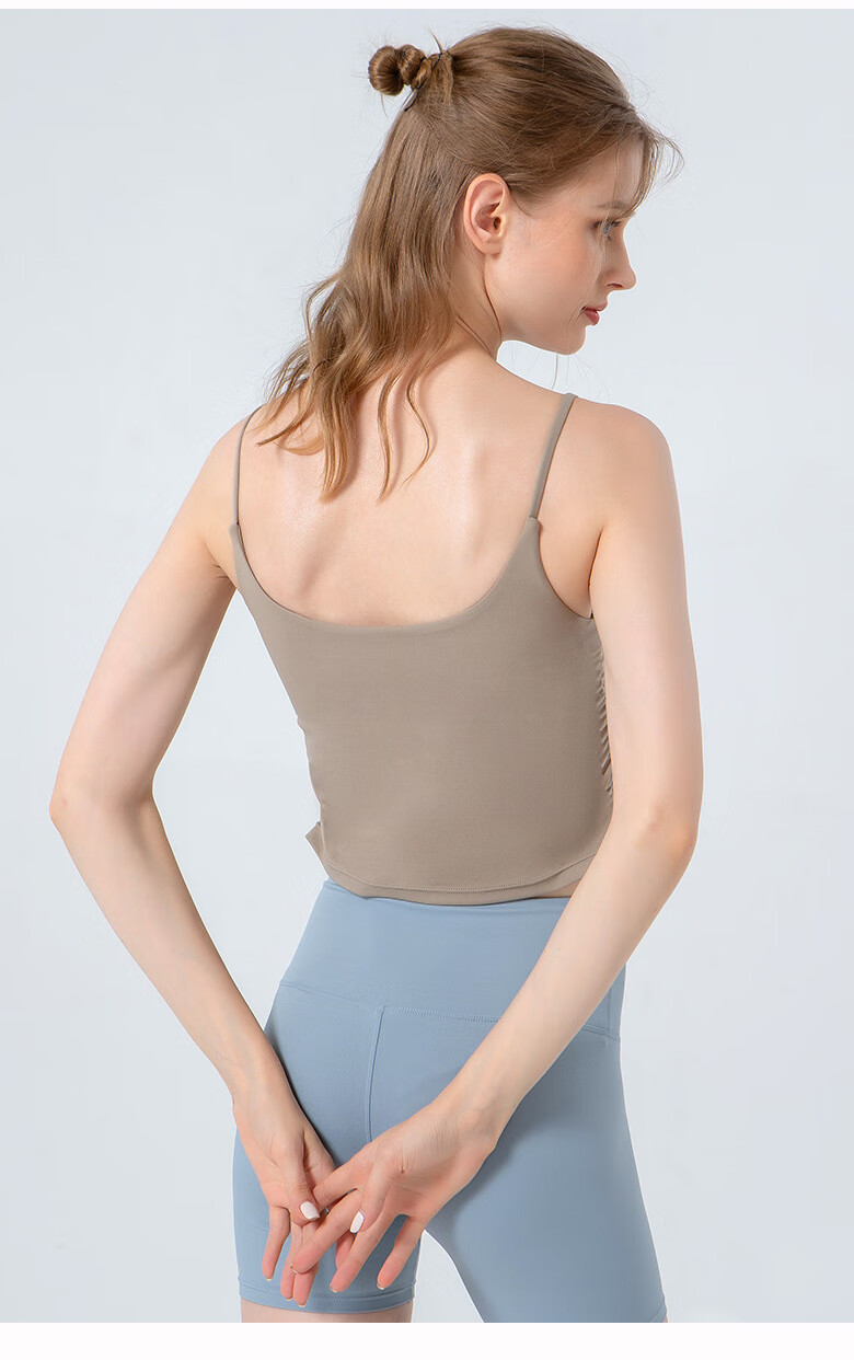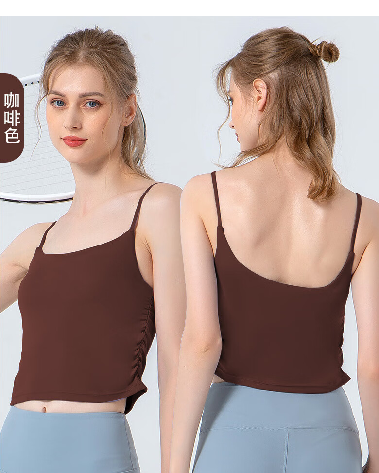 SHEA一体式瑜伽服女褶皱收腰健身服文胸性感吊带运动舞蹈服 咖啡色 XL