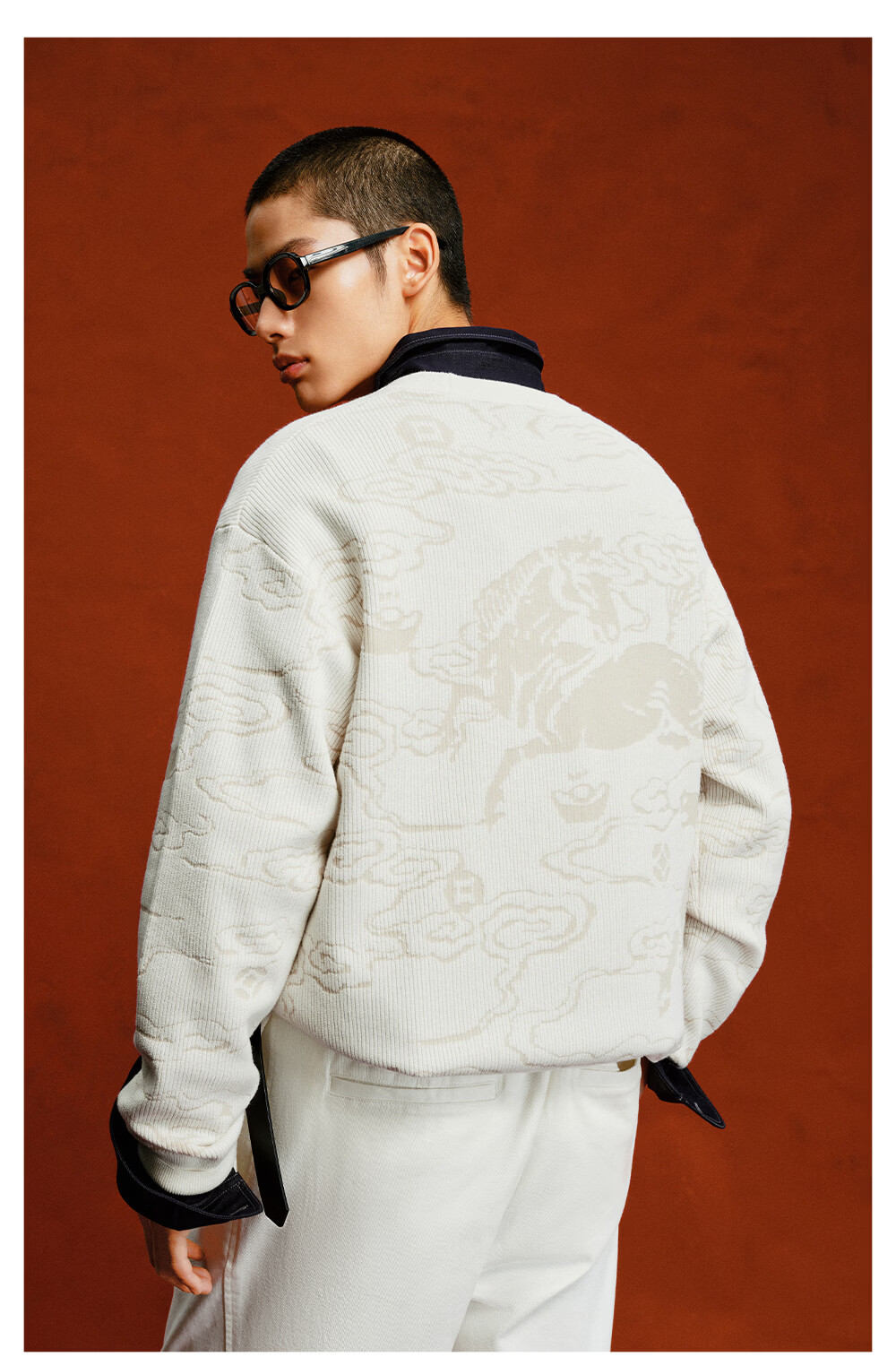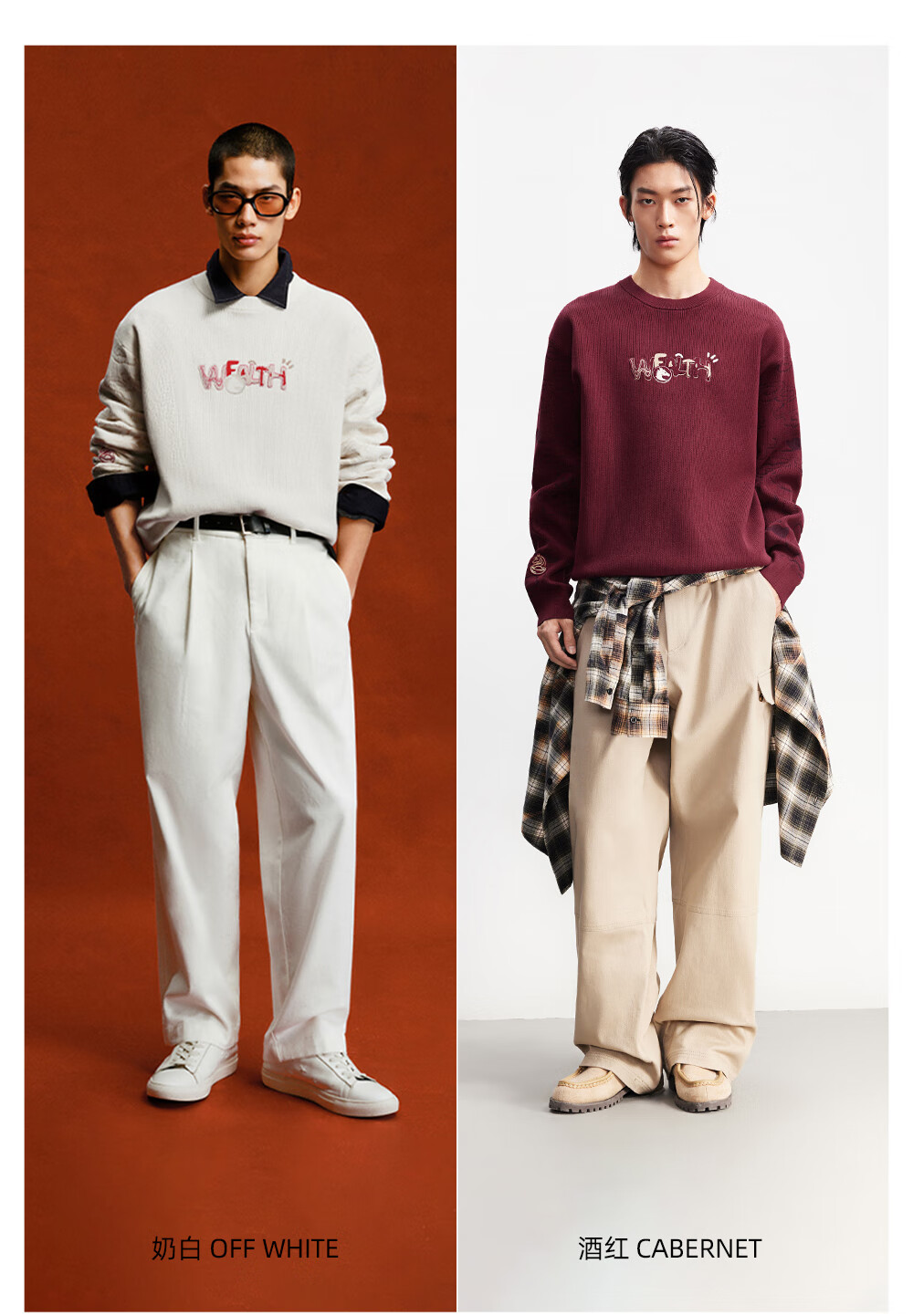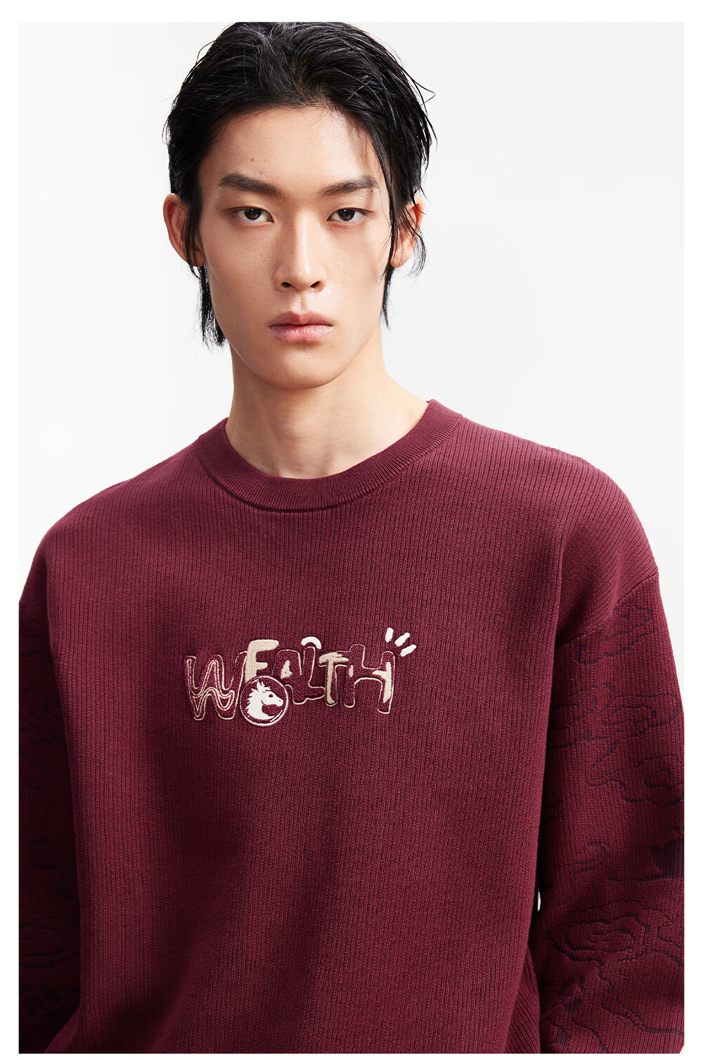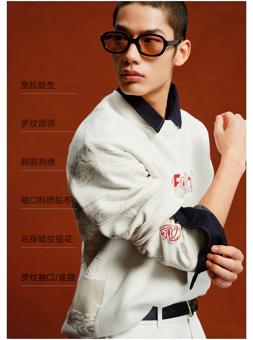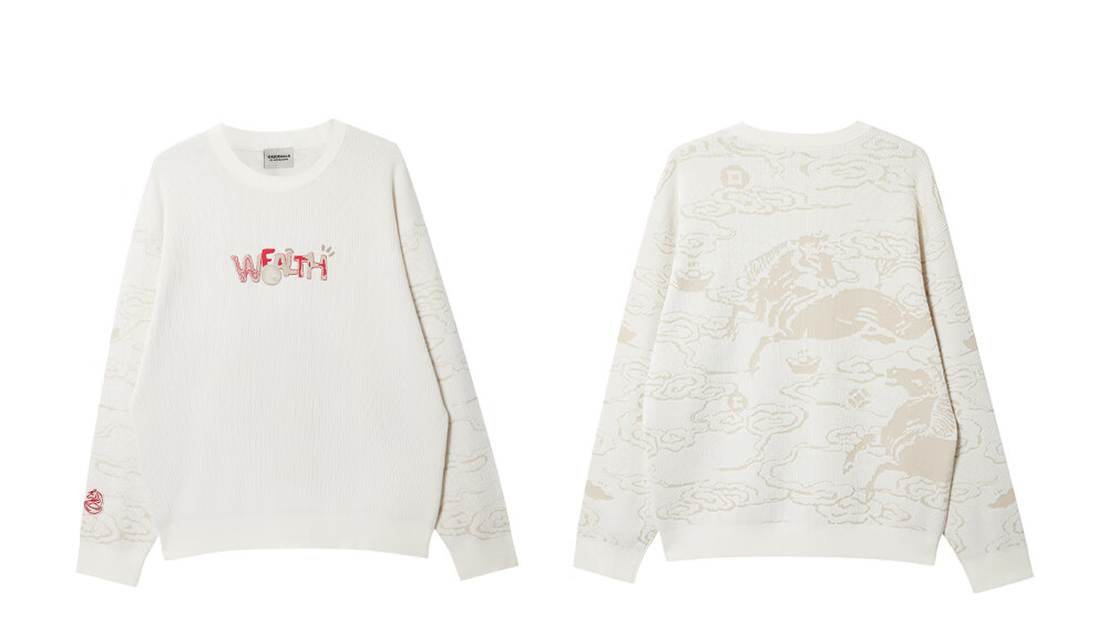 杰克·琼斯(JACK&JONES)【红运系列】骐骥红色毛衣男2026马年冬季新款宽松圆领长袖针织衫 A42奶白 常规 M (175)