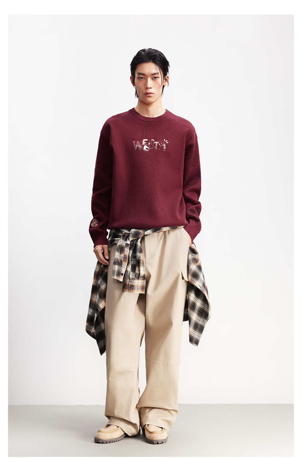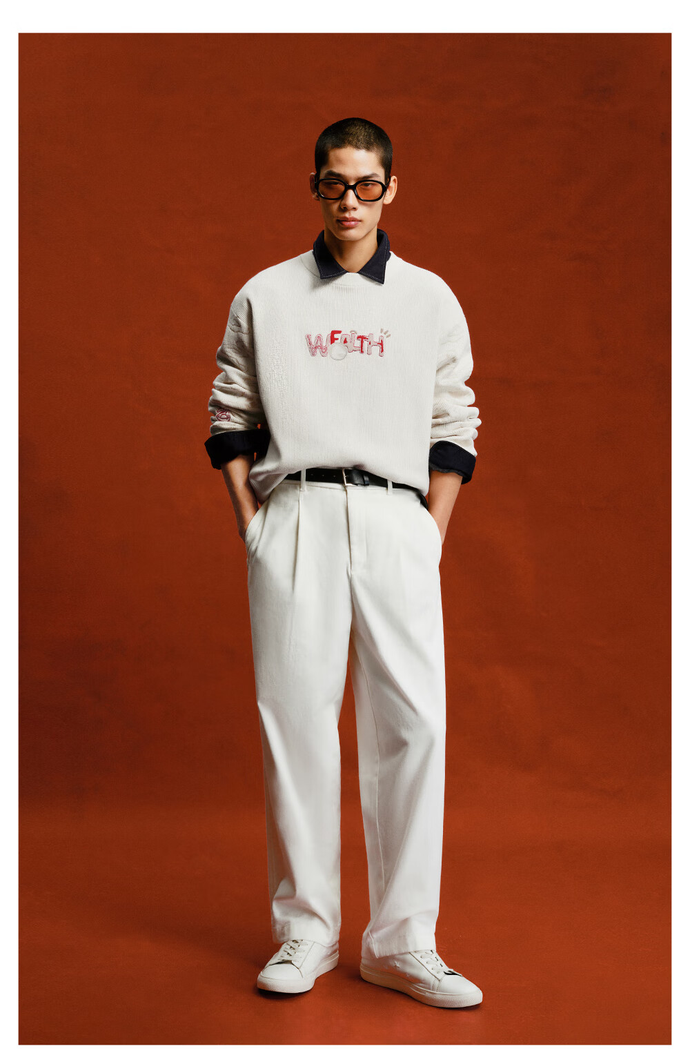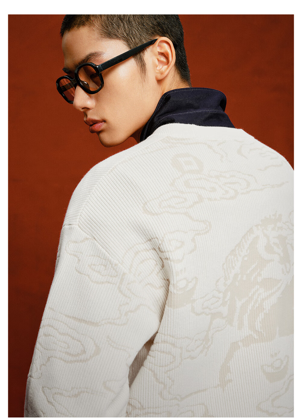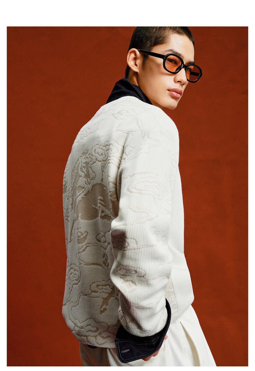 杰克·琼斯(JACK&JONES)【红运系列】骐骥红色毛衣男2026马年冬季新款宽松圆领长袖针织衫 A42奶白 常规 M (175)
